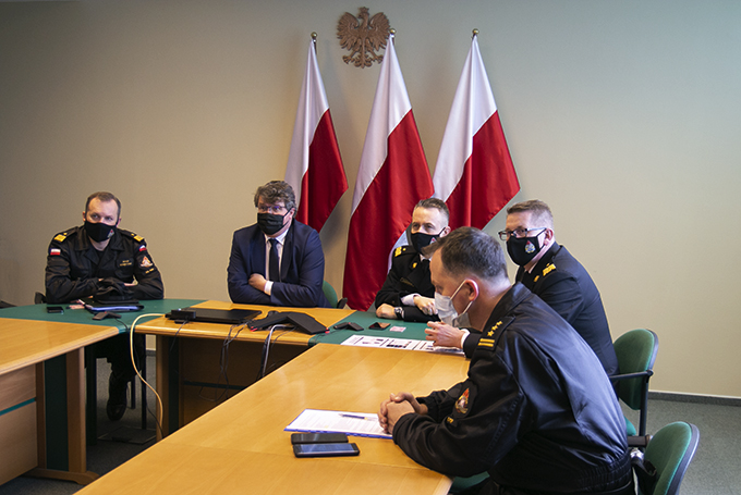 9 lutego 2021 r. w siedzibie KG PSP odbyła się wideokonferencja z udziałem: sekretarza stanu w Ministerstwie Spraw Wewnętrznych i Administracji Macieja Wąsika, dyrektora departamentu ochrony ludności i zarządzania kryzysowego MSWiA Dariusza Nowaka, komendanta głównego PSP nadbryg. Andrzeja Bartkowiaka, zastępców komendanta głównego PSP nadbryg. dr. inż. Adama Koniecznego i nadbryg. Krzysztofa Hejduka oraz dyrektora Krajowego Centrum Koordynacji Ratownictwa i Ochrony Ludności st. bryg. mgr. inż. Jacka Zalecha.