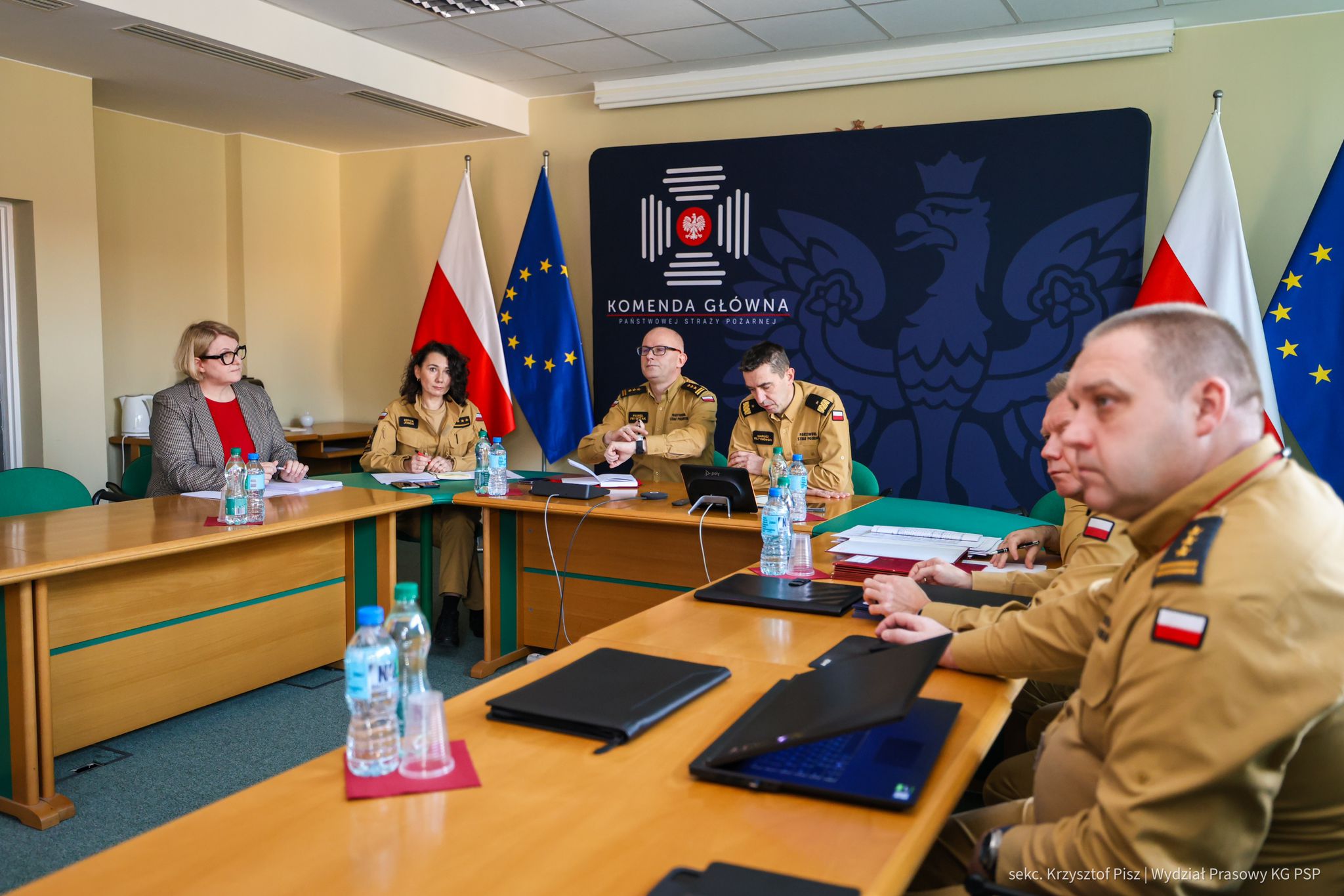 Podczas spotkania, któremu przewodniczył komendant główny PSP nadbryg. dr inż. Mariusz Feltynowski poruszono realizację zadań z zakresu spraw kadrowych, organizacyjnych, finansowych i logistycznych.