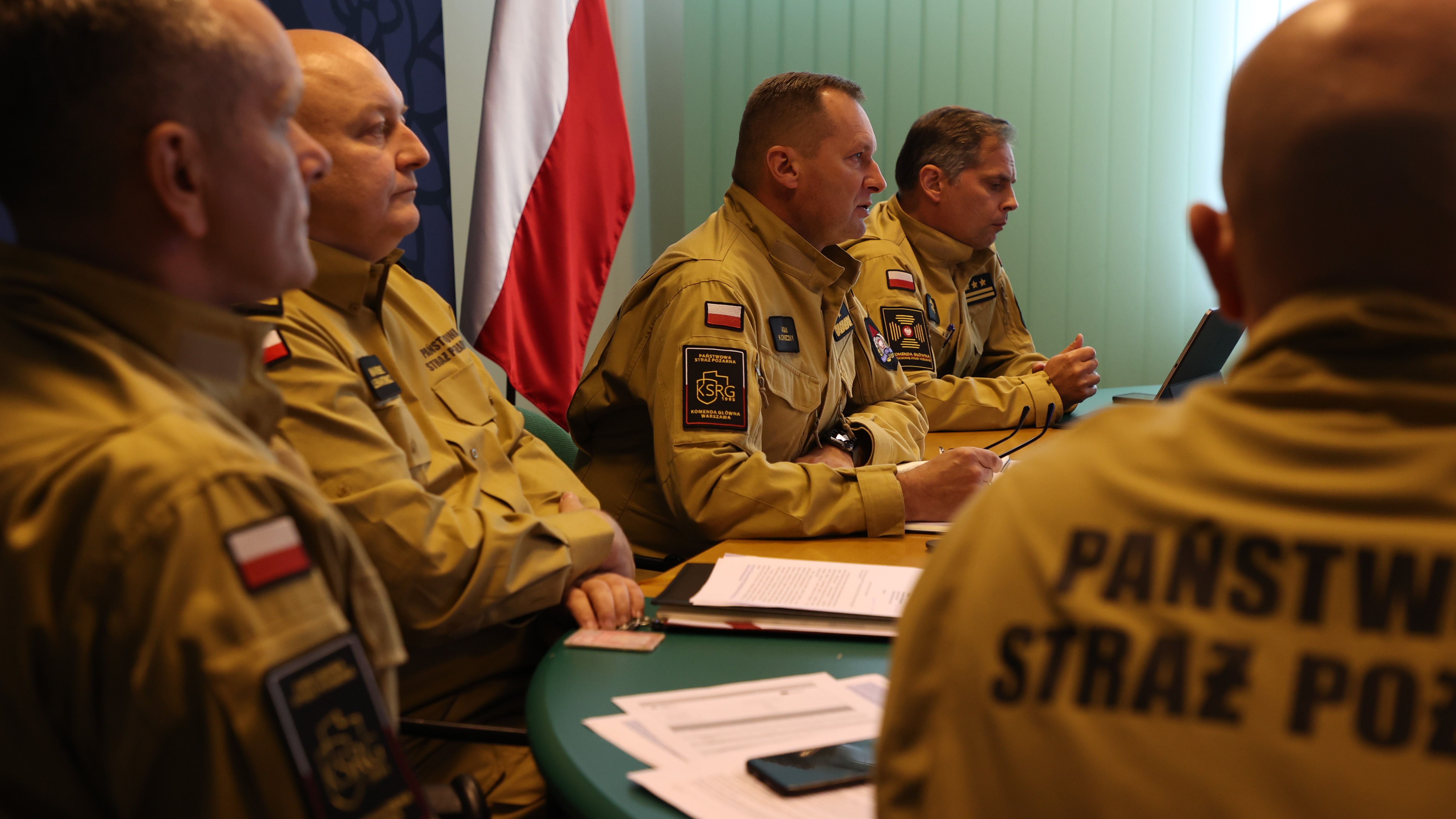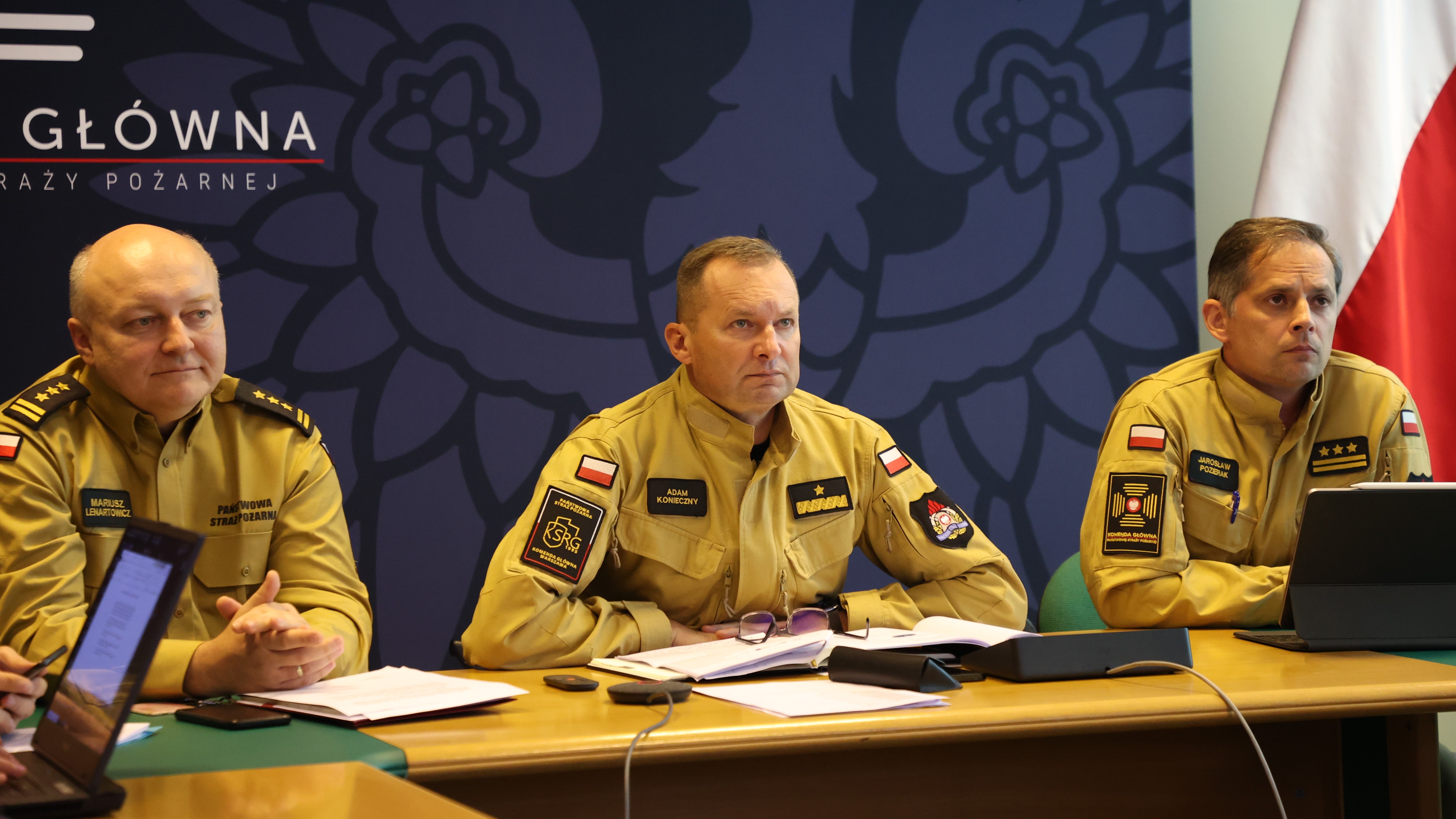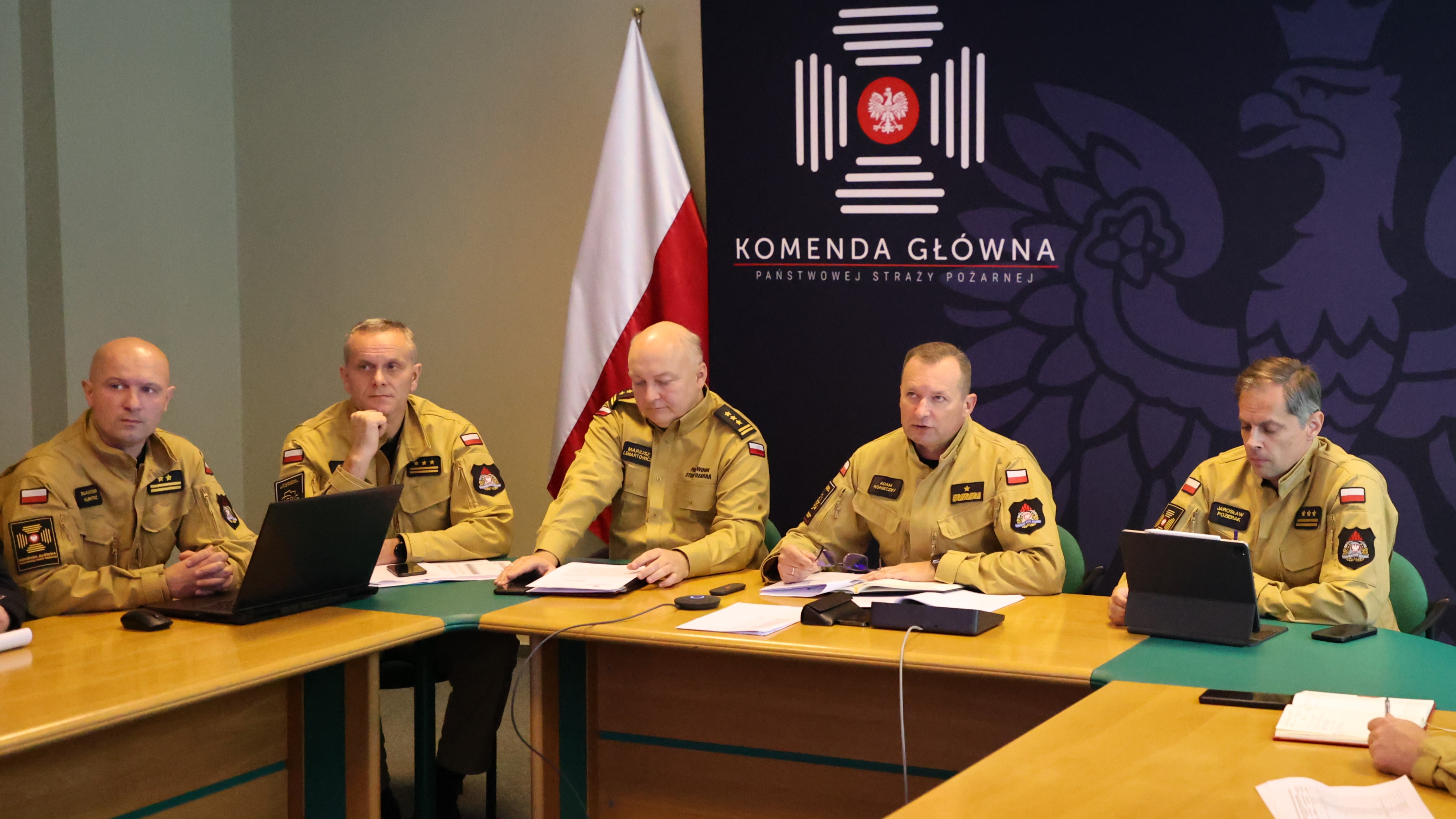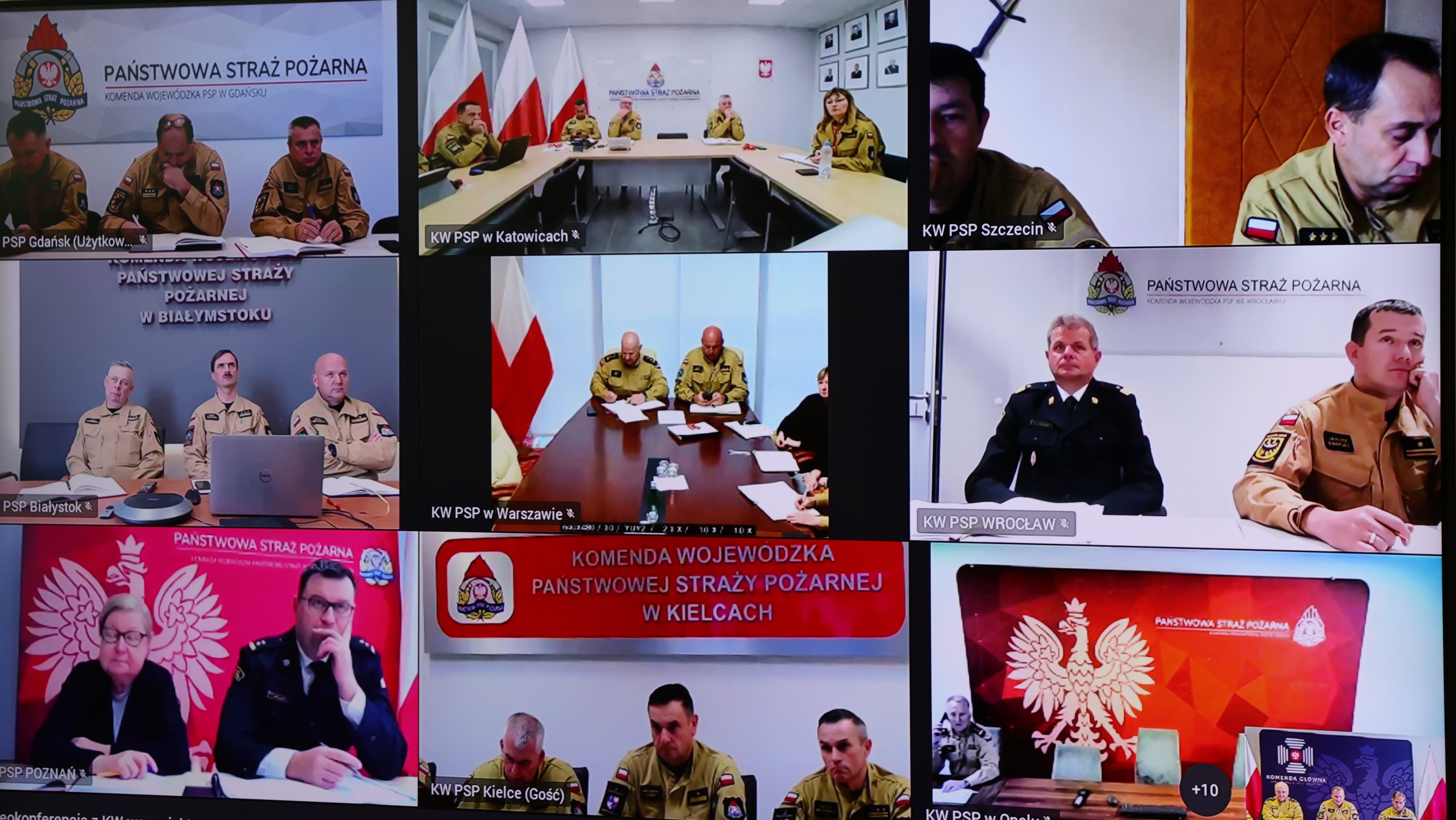Wideokonferencja kadry kierowniczej PSP w sprawie realizacji projektu "Rozbudowa systemu ostrzegania i alarmowania"