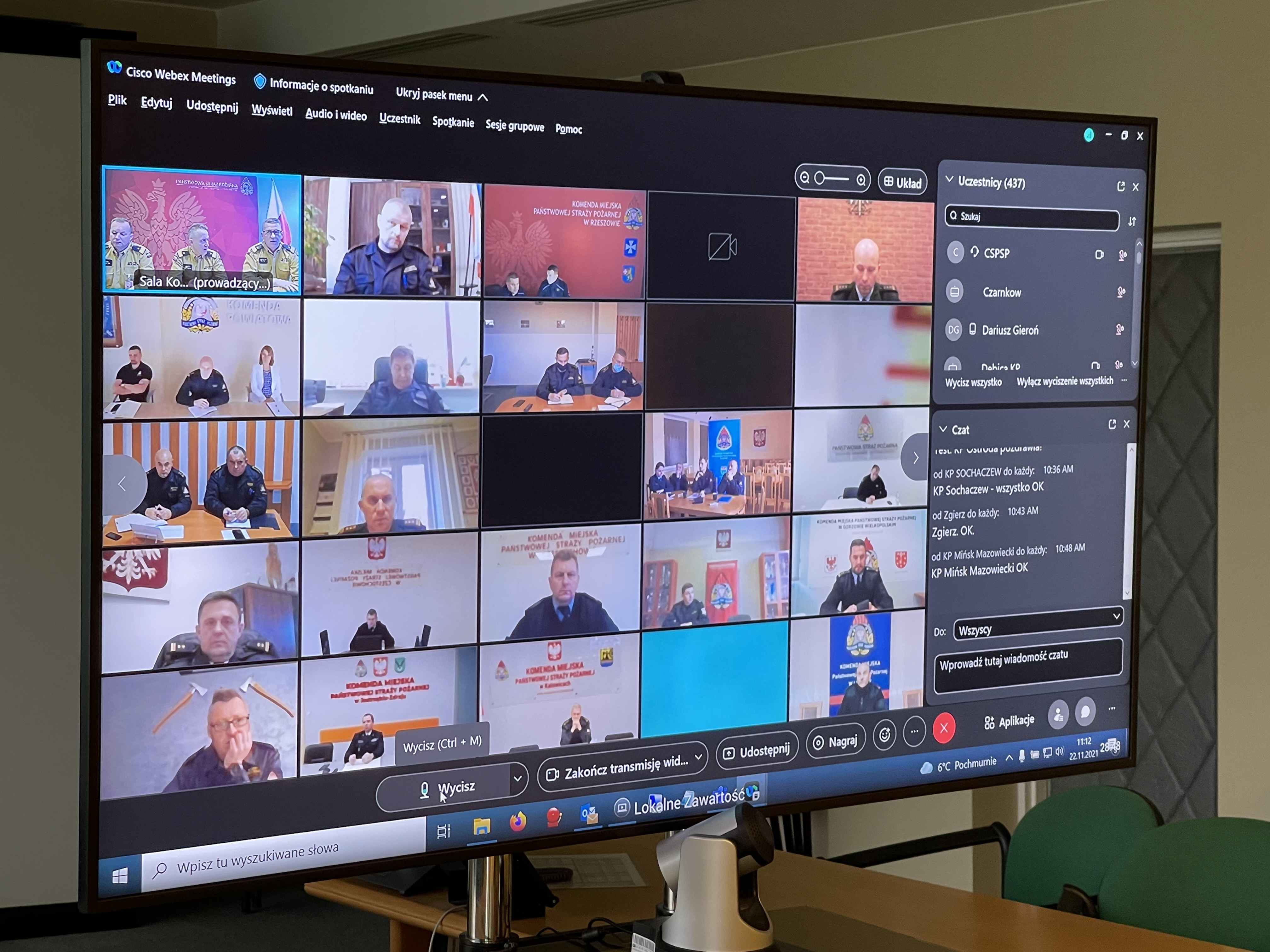 W poniedziałek 22 listopada 2021 r. w Komendzie Głównej Państwowej Straży Pożarnej odbyła się wideokonferencja z udziałem komendanta głównego Państwowej Straży Pożarnej, nadbryg. Andrzeja Bartkowiaka oraz jego zastępców, nadbryg. Krzysztofa Hejduka i nadbryg. Adama Koniecznego, dyrekcji Biura Finansów i Biura Logistyki KG PSP oraz przedstawicieli komend wojewódzkich i komend miejskich/powiatowych PSP.