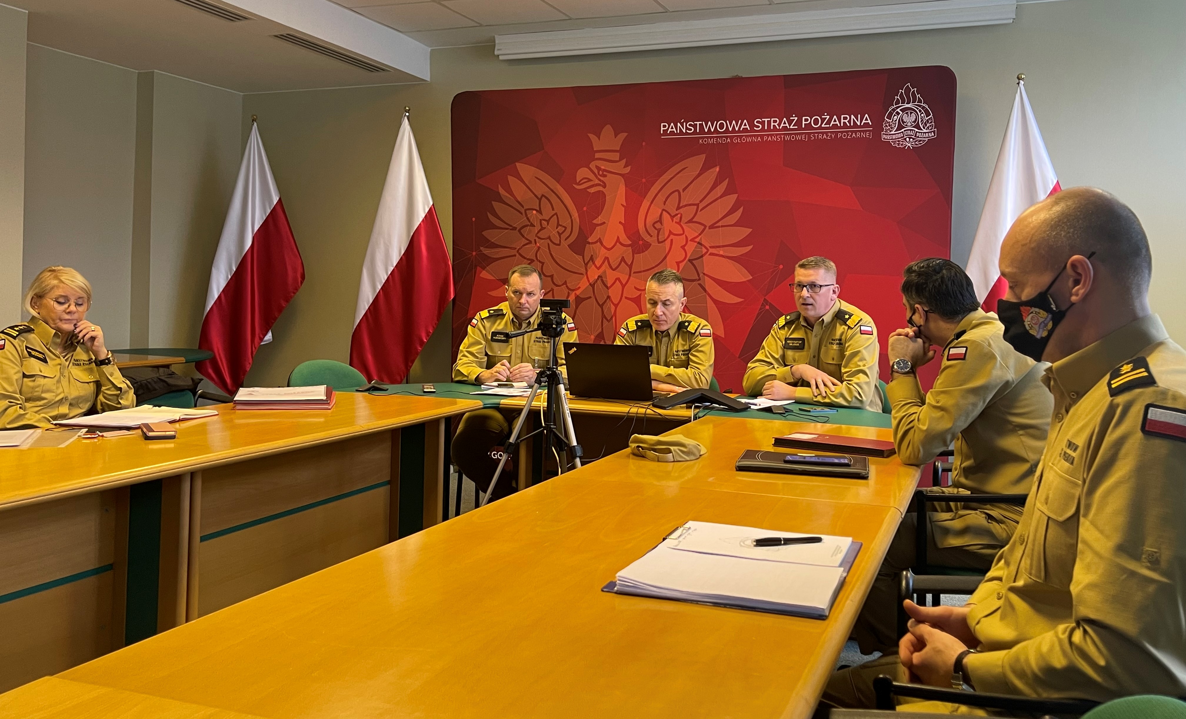 Wideokonferencja kierownictwa Komendy Głównej PSP z przedstawicielami komend wojewódzkich, miejskich i powiatowych PSP