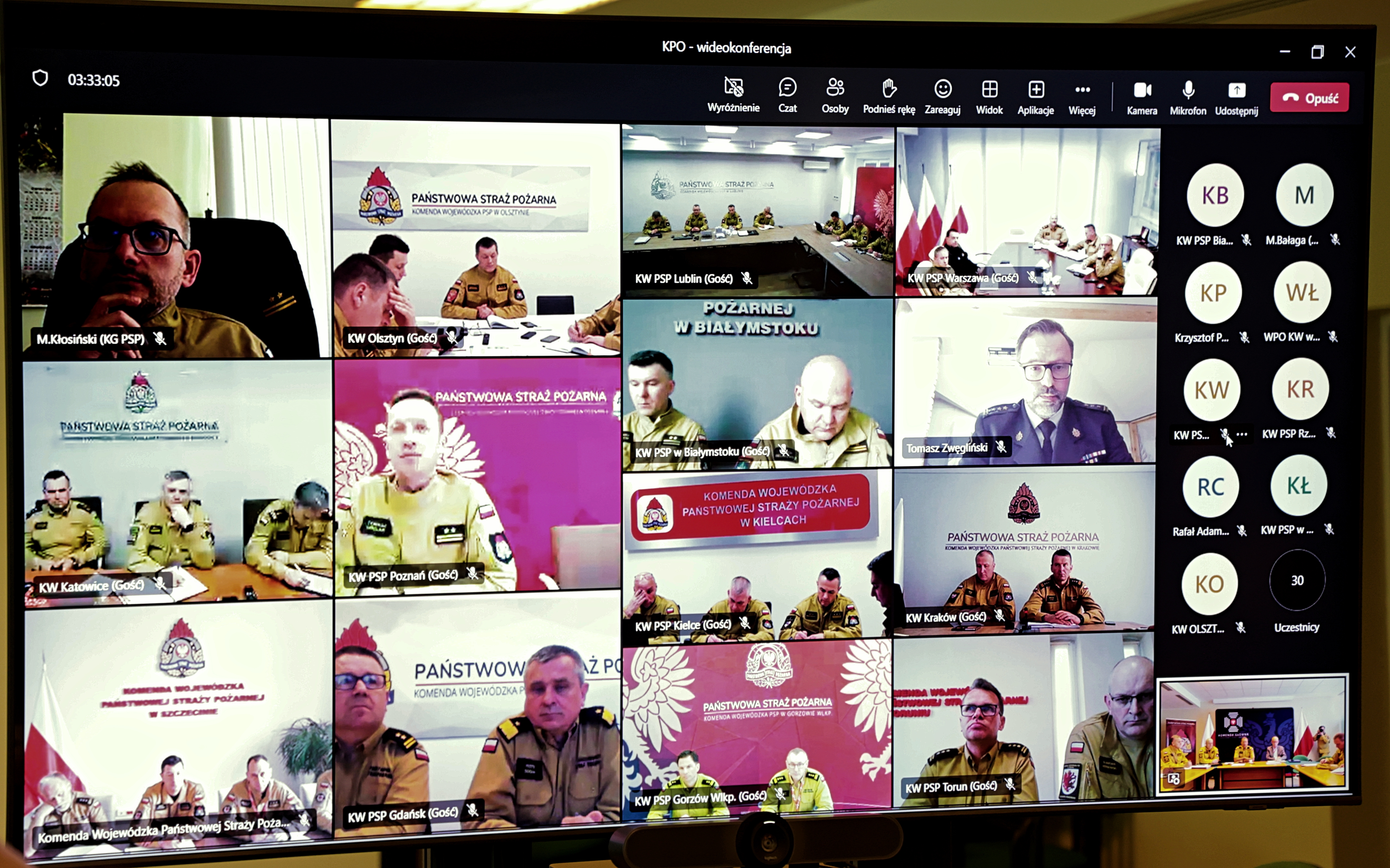 W dniu 24 kwietnia 2023 r. w Komendzie Głównej Państwowej Straży Pożarnej odbyła się wideokonferencja, dotycząca przeprowadzenia inwentaryzacji zasobów radiokomunikacyjnych i systemów alarmowania w komendach powiatowych, miejskich PSP oraz jednostkach OSP.
