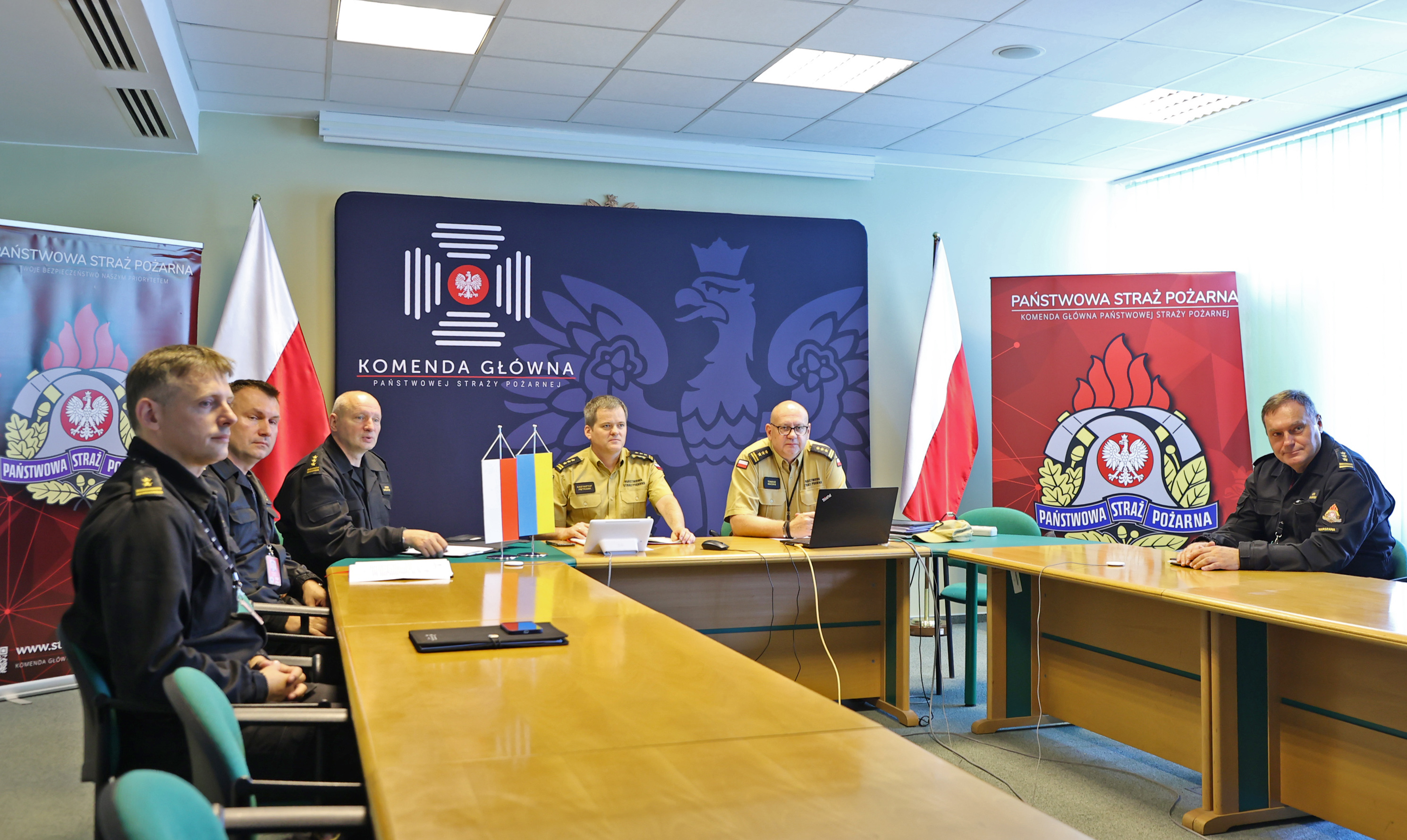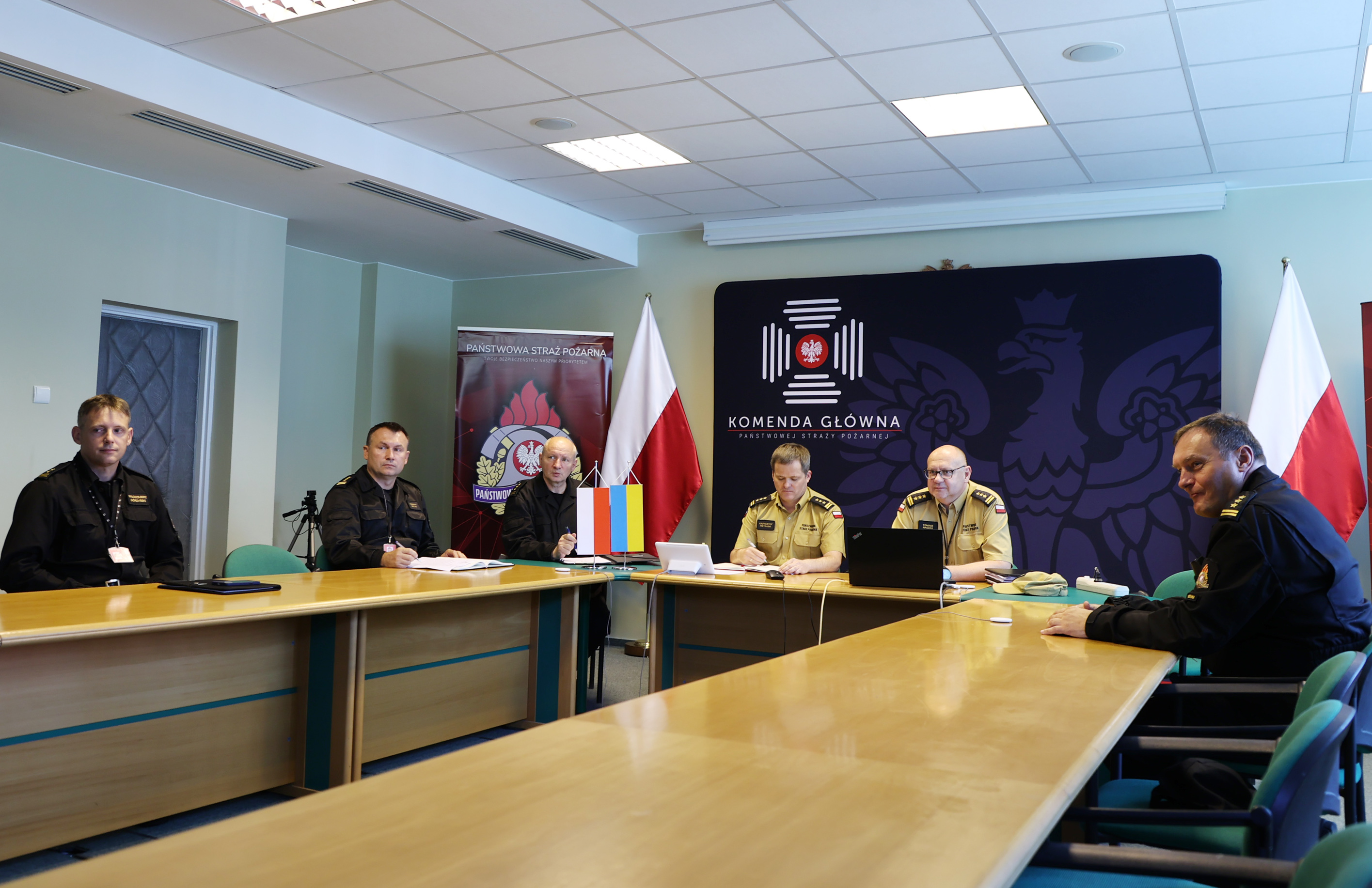 17 sierpnia 2022 r. w siedzibie Komendy Głównej Państwowej Straży Pożarnej odbyła się wideokonferencja z przedstawicielami Państwowej Służby Ukrainy ds. Sytuacji Nadzwyczajnych.