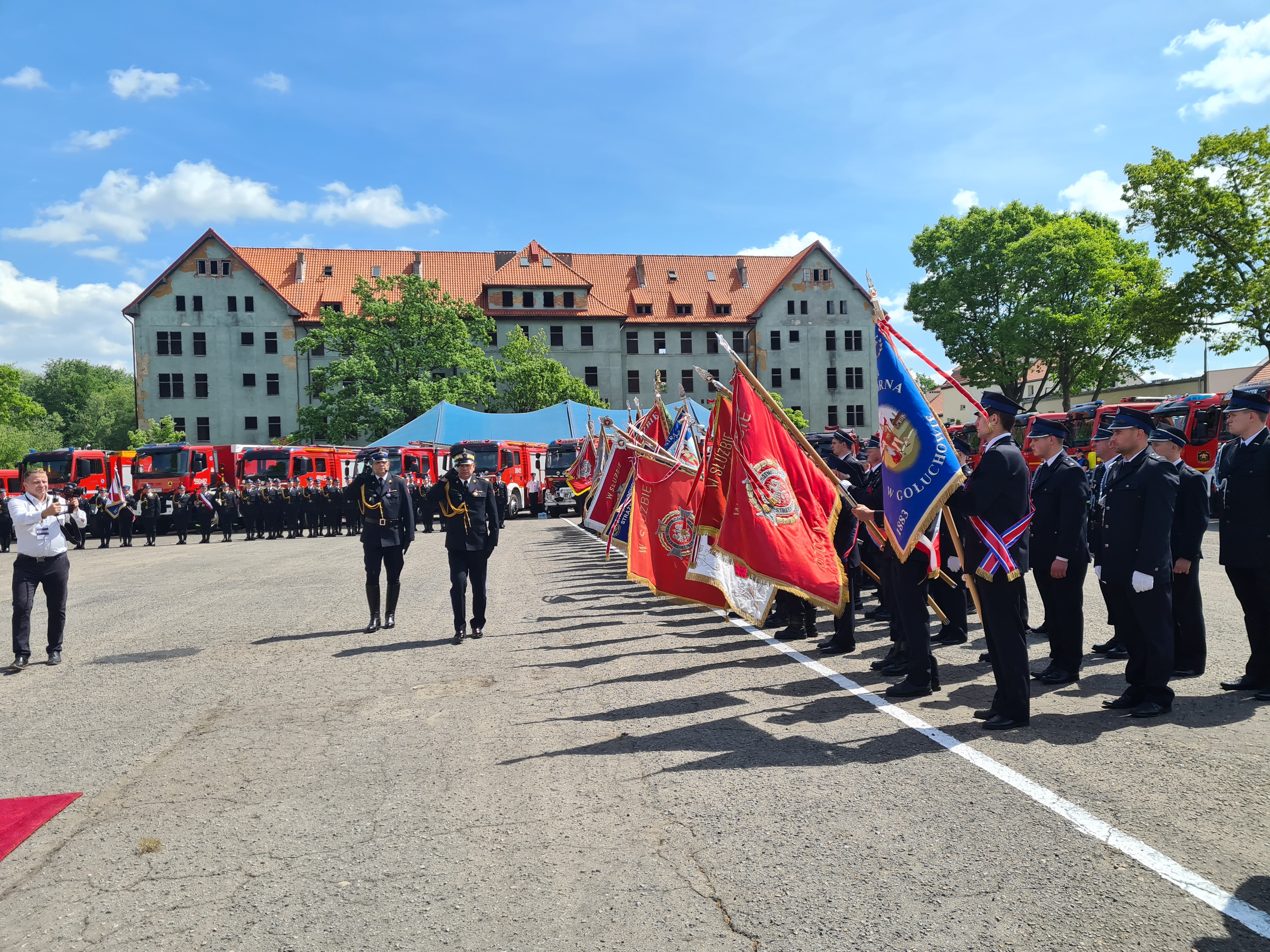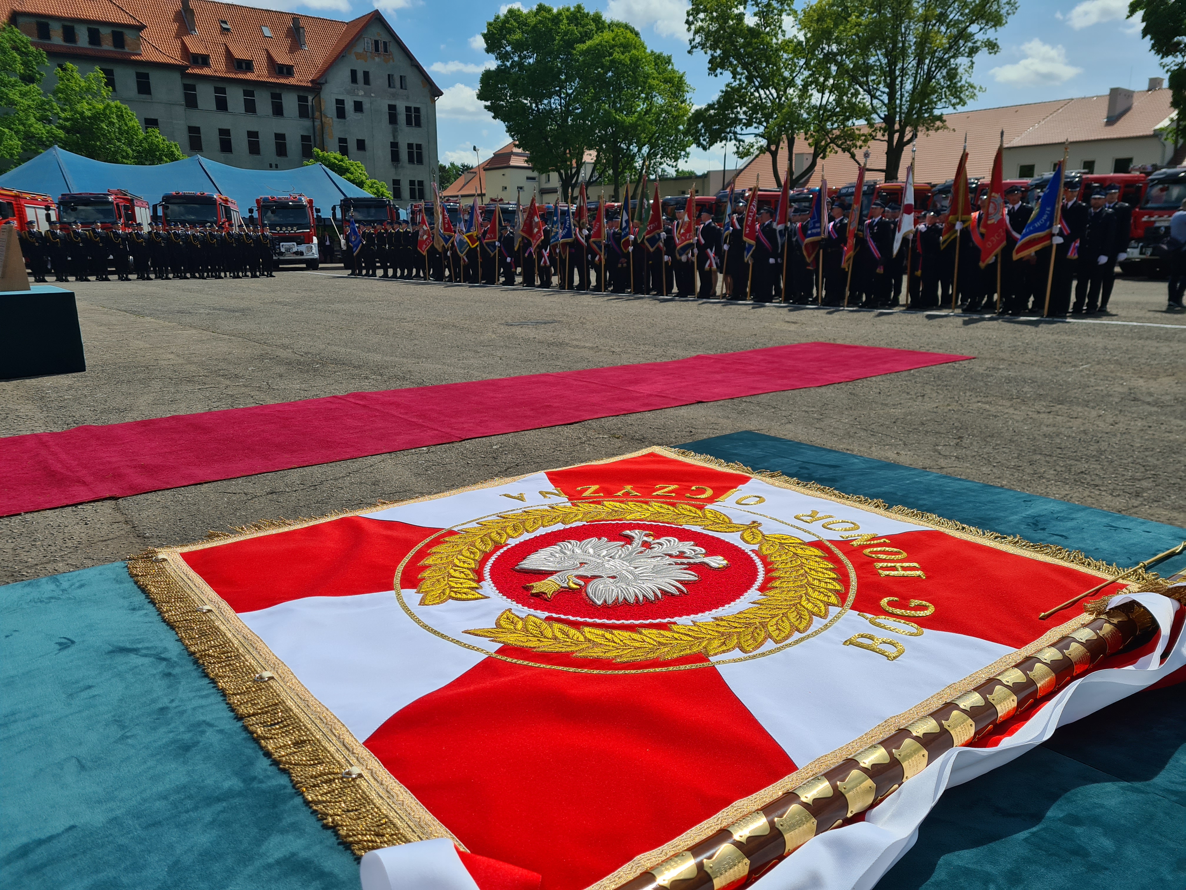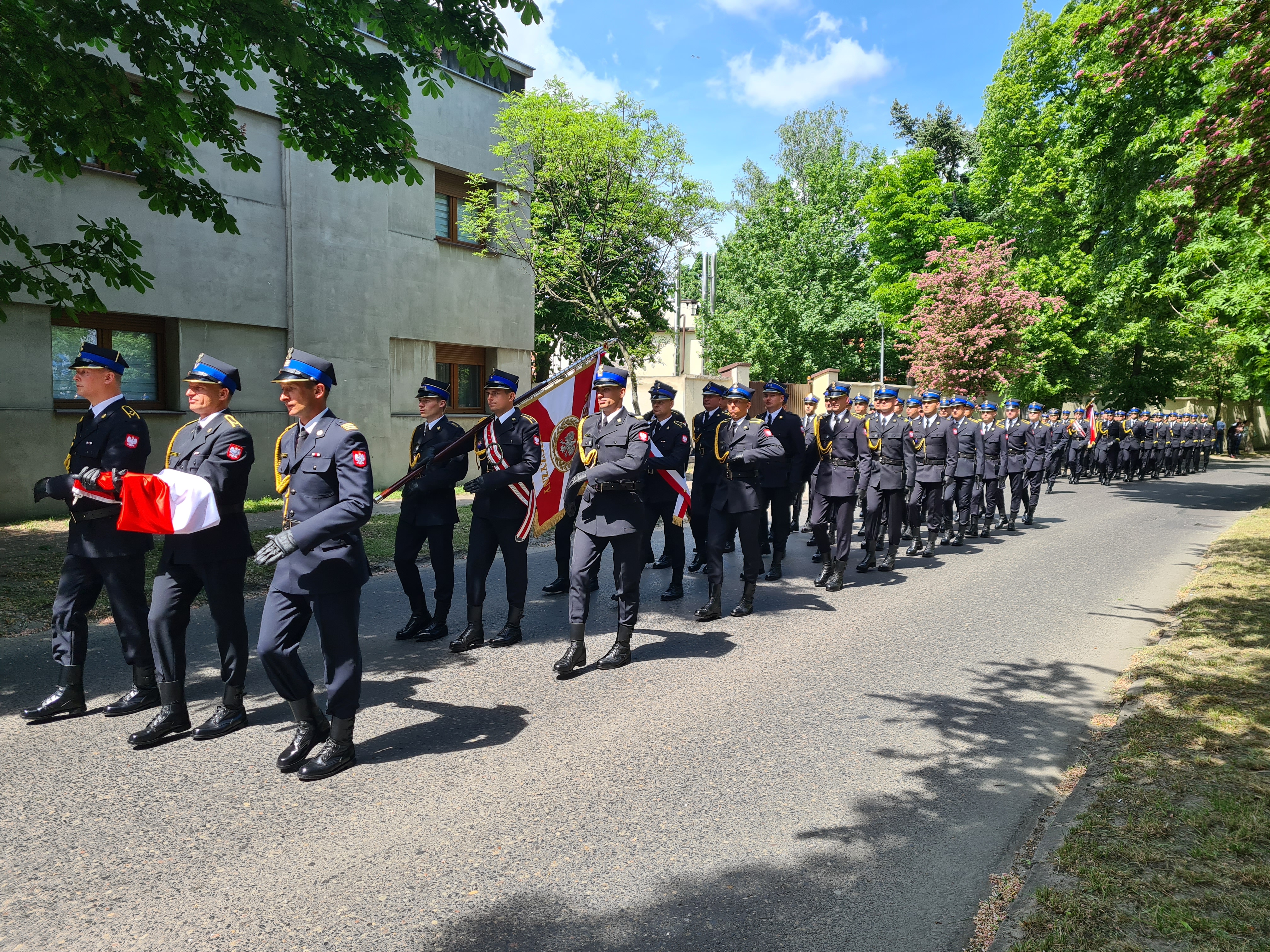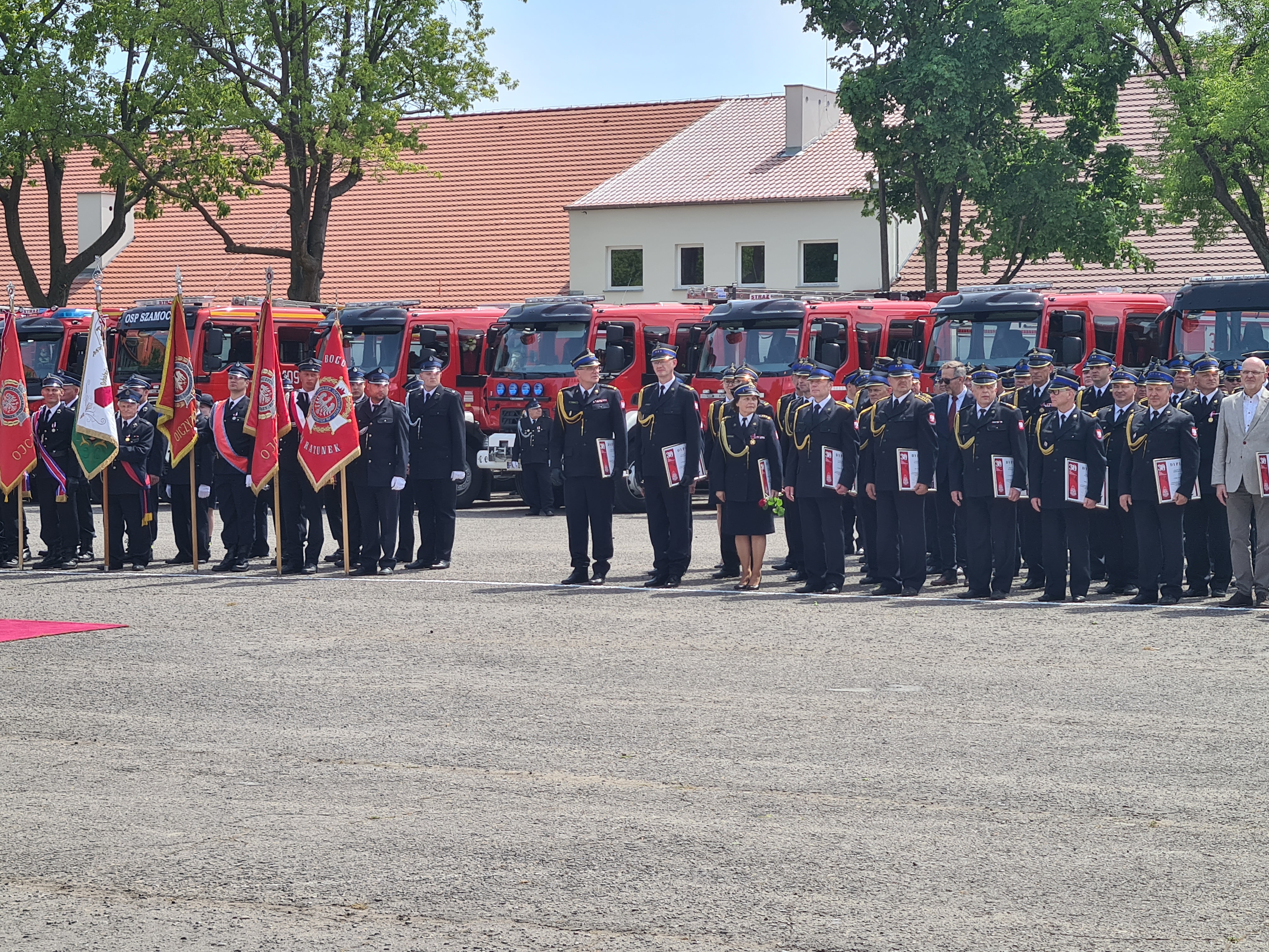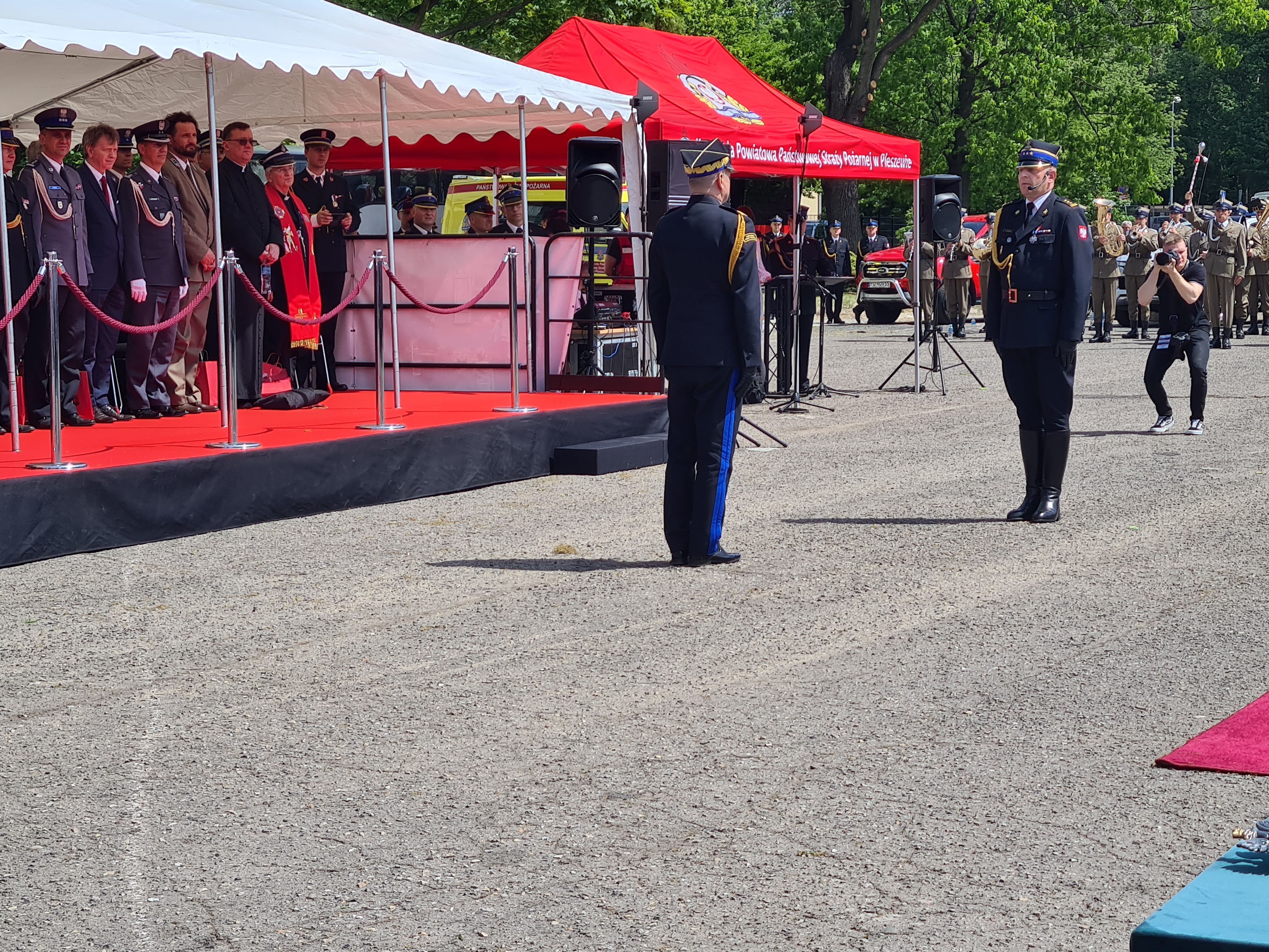 Po nabożeństwie pododdziały straży pożarnych, w tym poczty sztandarowe, Kompania Reprezentacyjna Komendy Wojewódzkiej PSP w Poznaniu, oraz Kompania Reprezentacyjna Szkoły Aspirantów PSP w Poznaniu, przemaszerowały na plac Centrum Kształcenia i Wychowania OHP w Pleszewie.