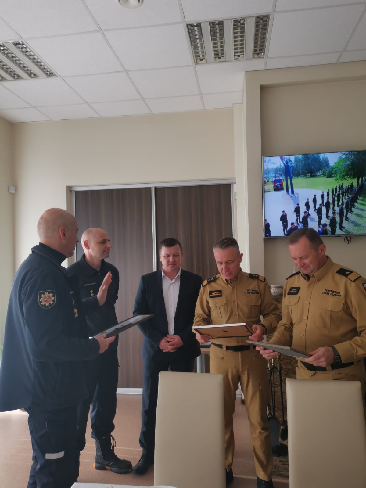 Kolejnym punktem wizyty było spotkanie komendanta głównego PSP oraz zastępcy nadbryg. Adama Koniecznego z Szefem Szkoły Pożarniczej Kęstutis Agintas i zwiedzanie Centrum Naukowo Badawczego Litwy. Komendantom w czasie spotkań stale towarzyszył Szef Służb Ratowniczych Litwy gen. Saulius Greicius. Ten dzień stał się niesamowitą okazją do rozmów ze strażakami z Litwy, a także zapoznania się ze strukturą i specyfiką organizacji instytucji.