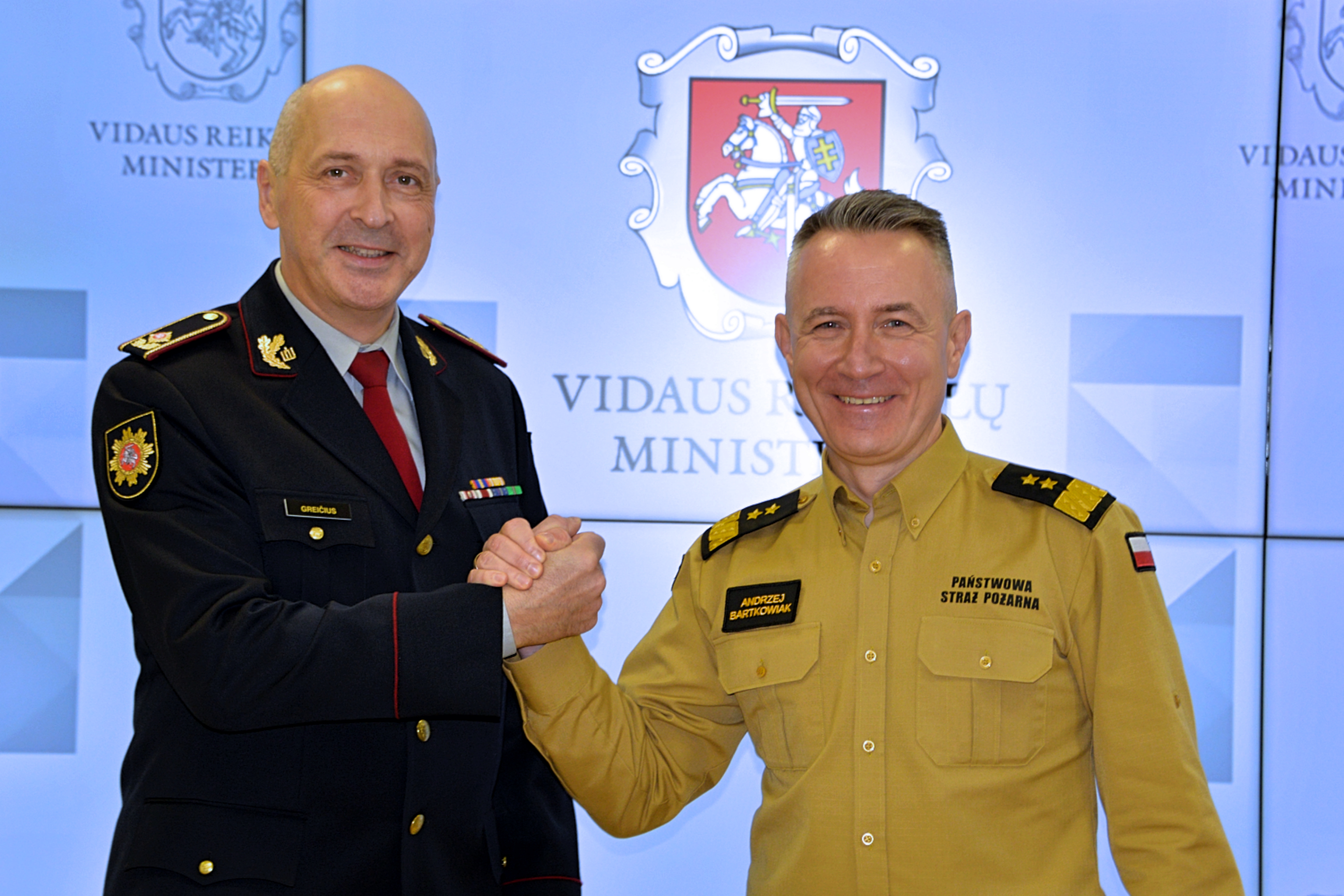26 października 2022 r. rozpoczęła się wizyta komendanta głównego PSP gen. brygadiera Andrzeja Bartkowiaka oraz zastępcy nadbryg. Adama Koniecznego w Wilnie. Pierwszym kluczowym elementem było spotkanie z Panem Vitalijem Dmitrijev, Wiceministrem Spraw Wewnętrznych Litwy oraz Szefami Służb Ratowniczych Litwy w tym gen. Sauliusa Greiciusa. Zaprezentowano także strukturę i funkcjonowanie Departamentu ds. ratownictwa i ochrony przeciwpożarowej, podległego Ministrowi Spraw Wewnętrznych Republiki Litewskiej.