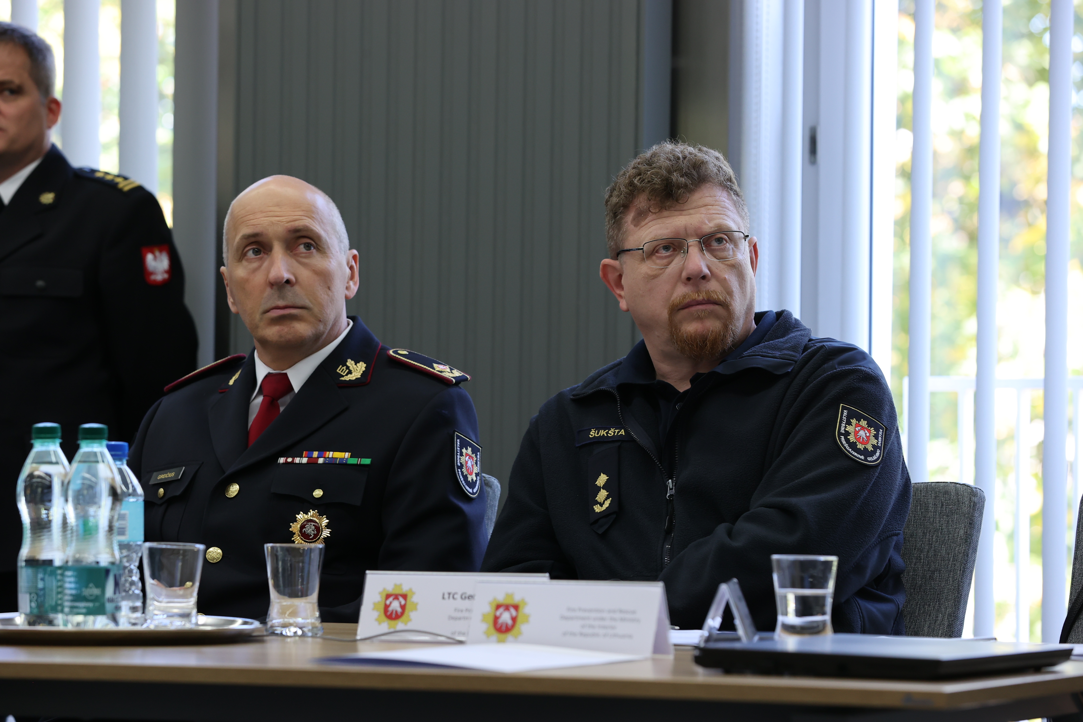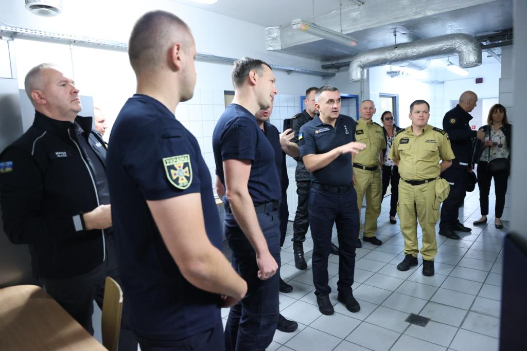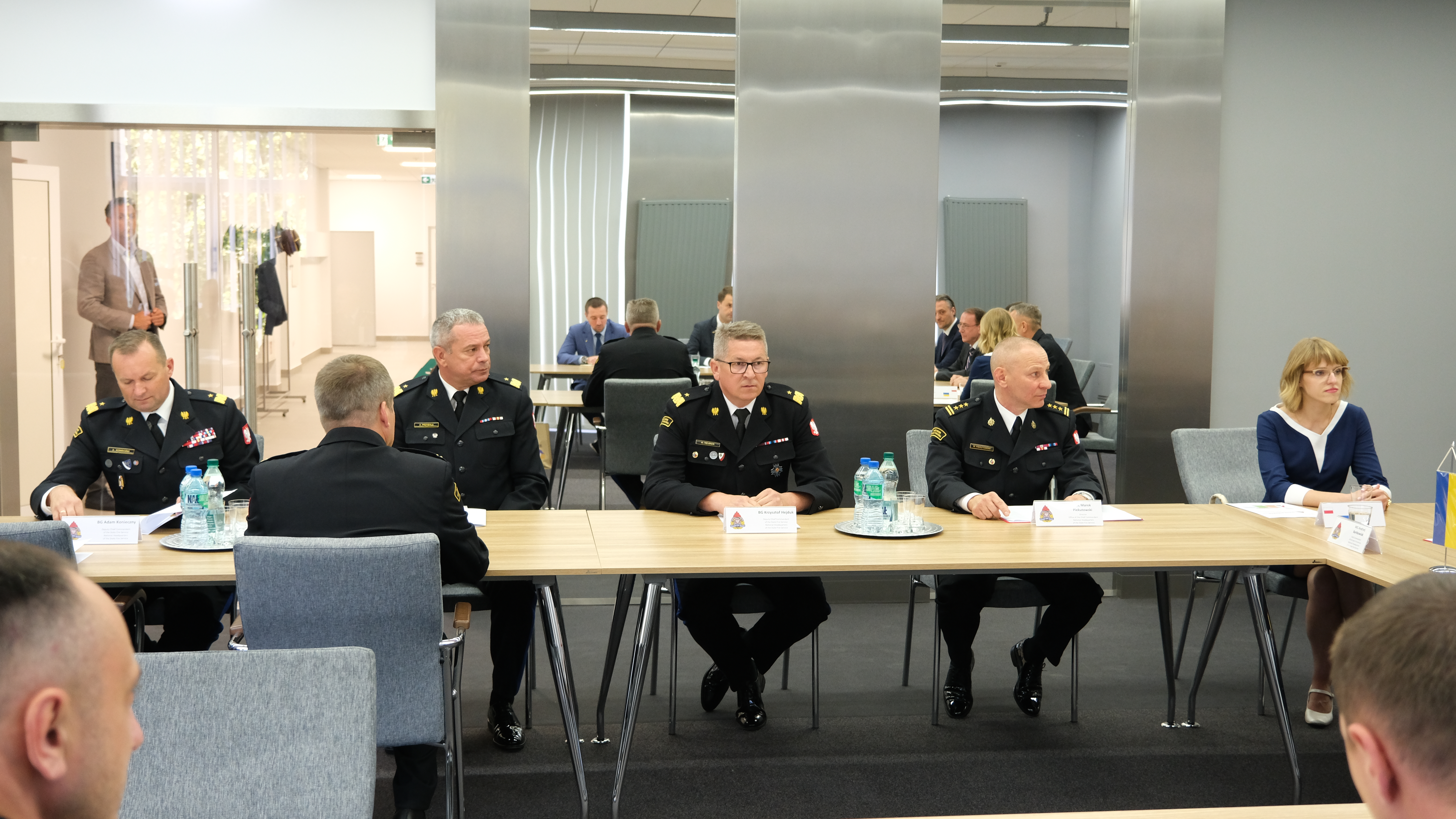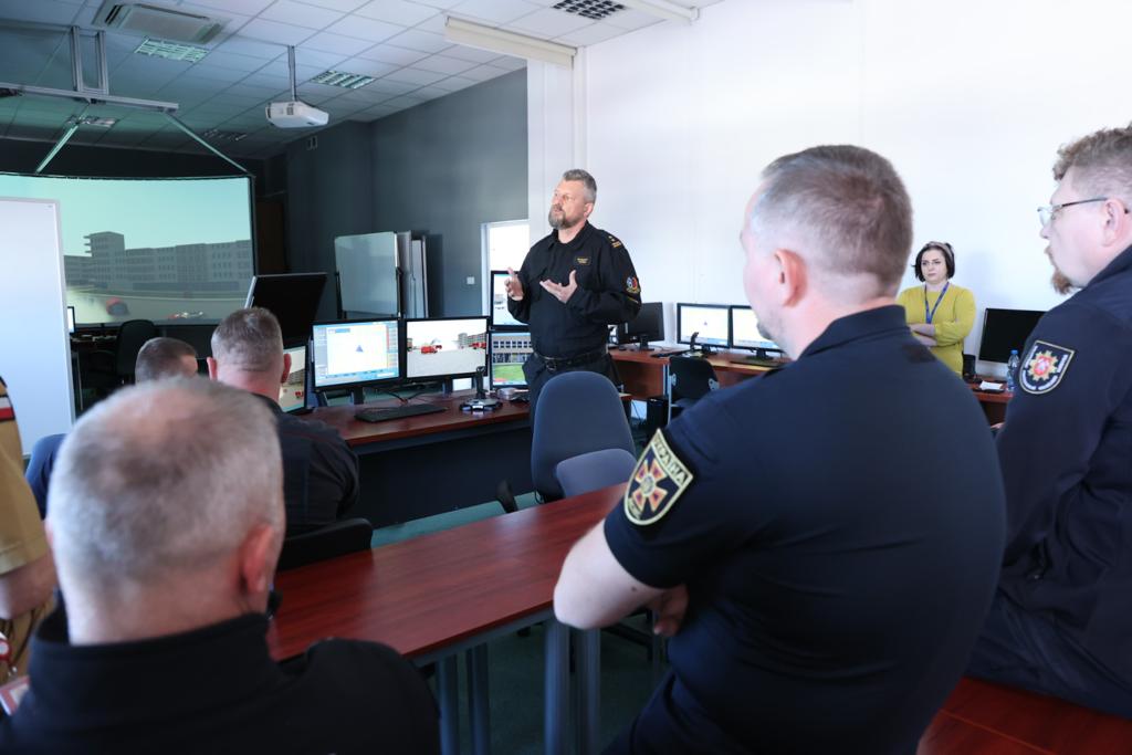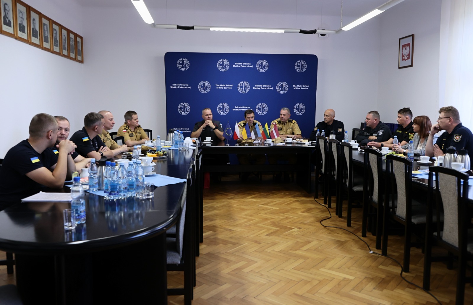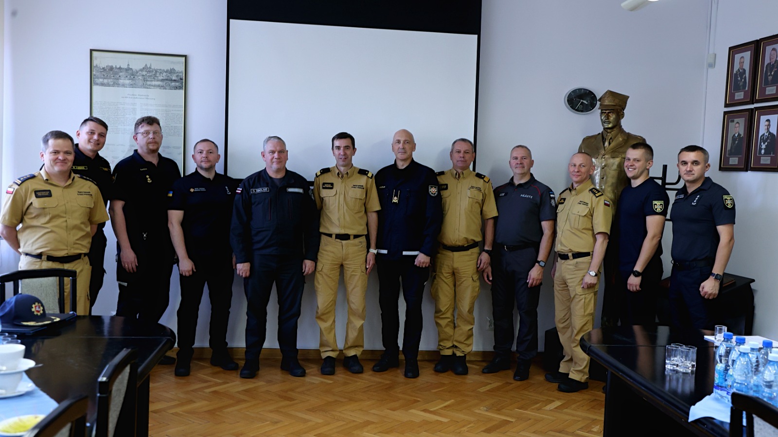 Wiceminister SW Ukrainy Pan Yevhenii Yenin wraz Sergiejem Krukiem Szefem Państwowej Służby Ukrainy ds. sytuacji nadzwyczajnych, Szef Południowego Centrum Ratowniczego Pan Margo Klaos, Szef Państwowej i Ratowniczej Republiki Łotwy gen. Oskars Abolins oraz Dyrektor Departamentu Straży Pożarnej i Ratownictwa w MSW Republiki Litewskiej gen. Saulius Greicius w towarzystwie zastępcy komendanta głównego PSP nadbryg. Arkadiusza Przybyły i dyrektorów Biura Komendanta Głównego rozpoczęli kolejny dzień pobytu delegacji w Polsce.