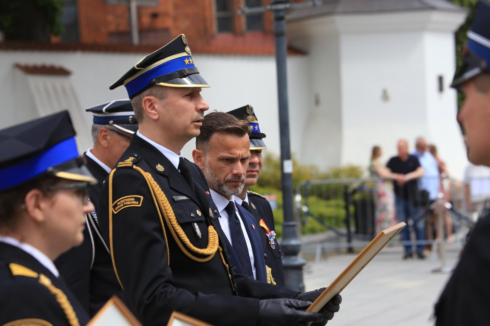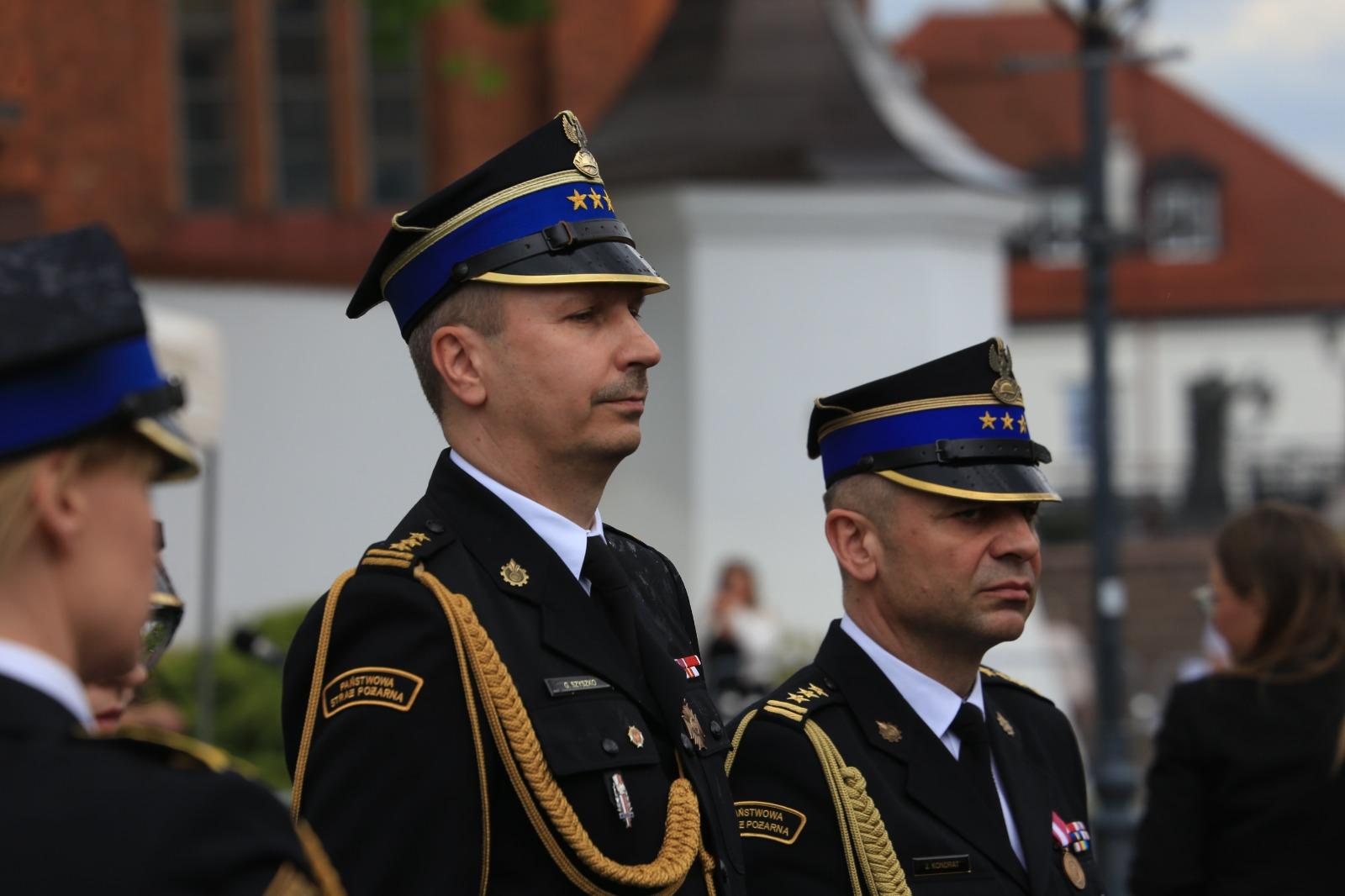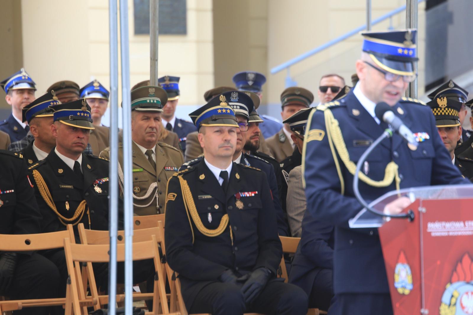 Wspólnie ze strażakami i pracownikami cywilnymi Państwowej Straży Pożarnej oraz druhami Ochotniczych Straży Pożarnych udział w uroczystości wziął zastępca komendanta głównego Państwowej Straży Pożarnej st. bryg. dr inż. Grzegorz Szyszko.