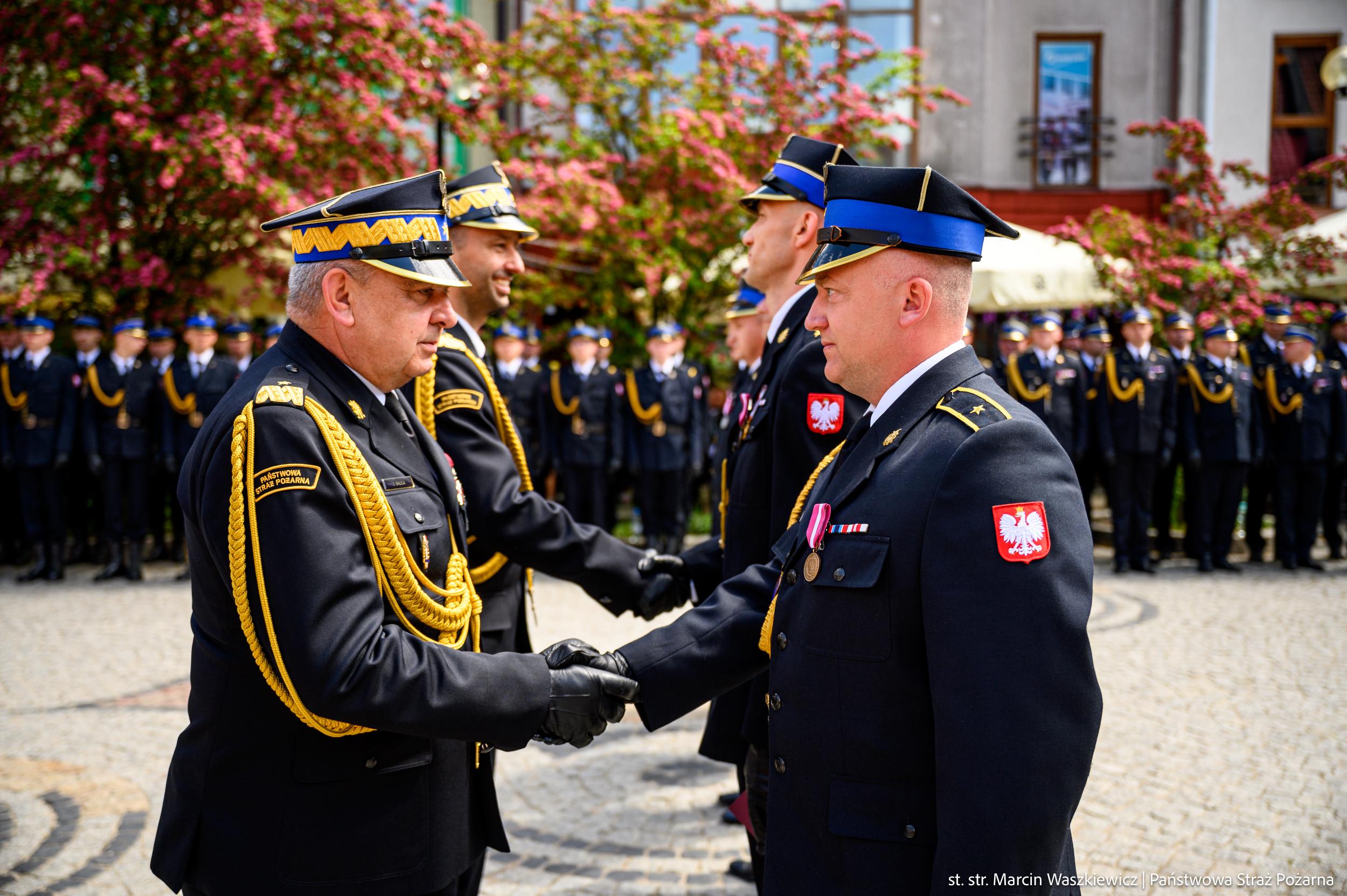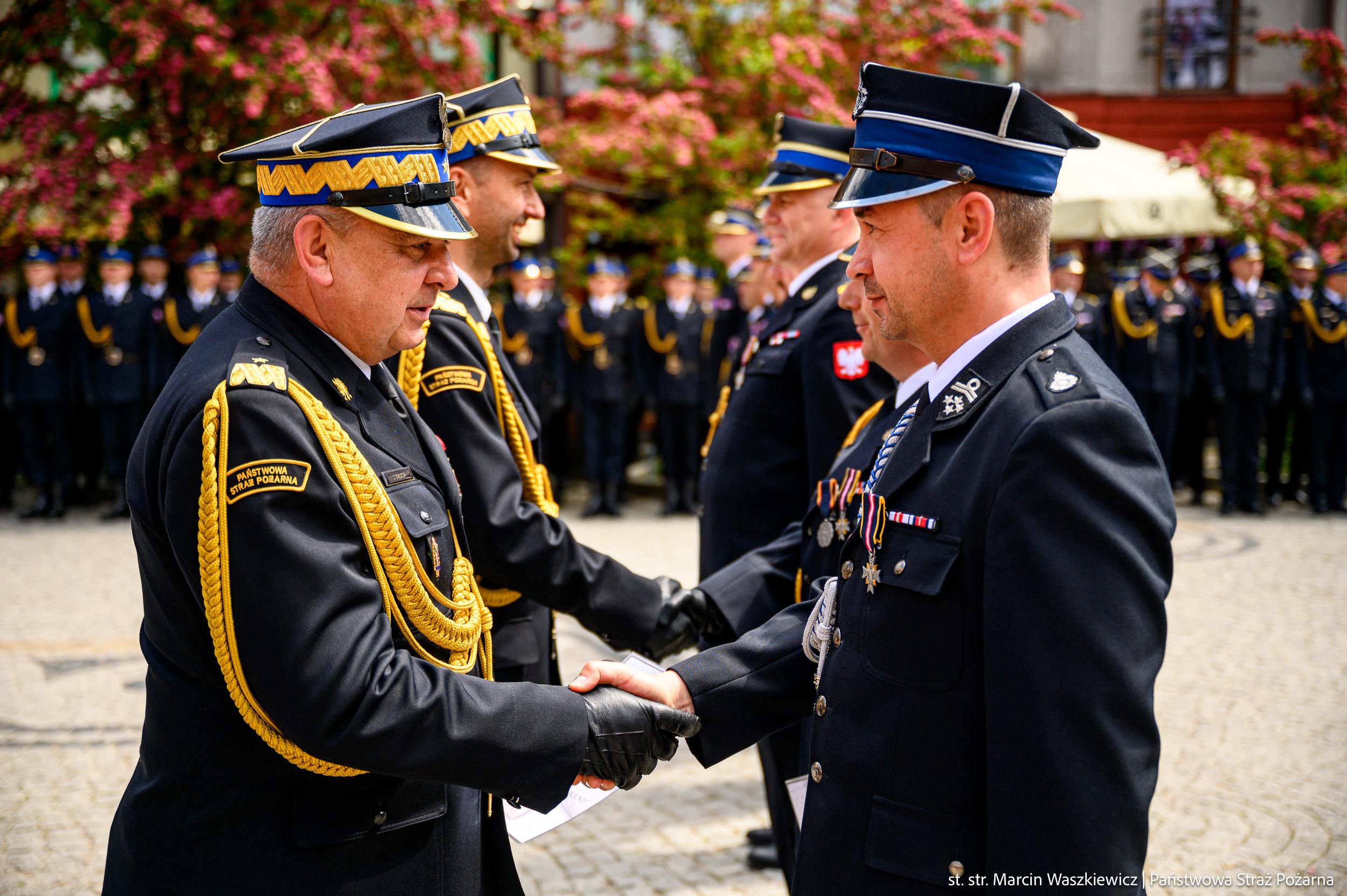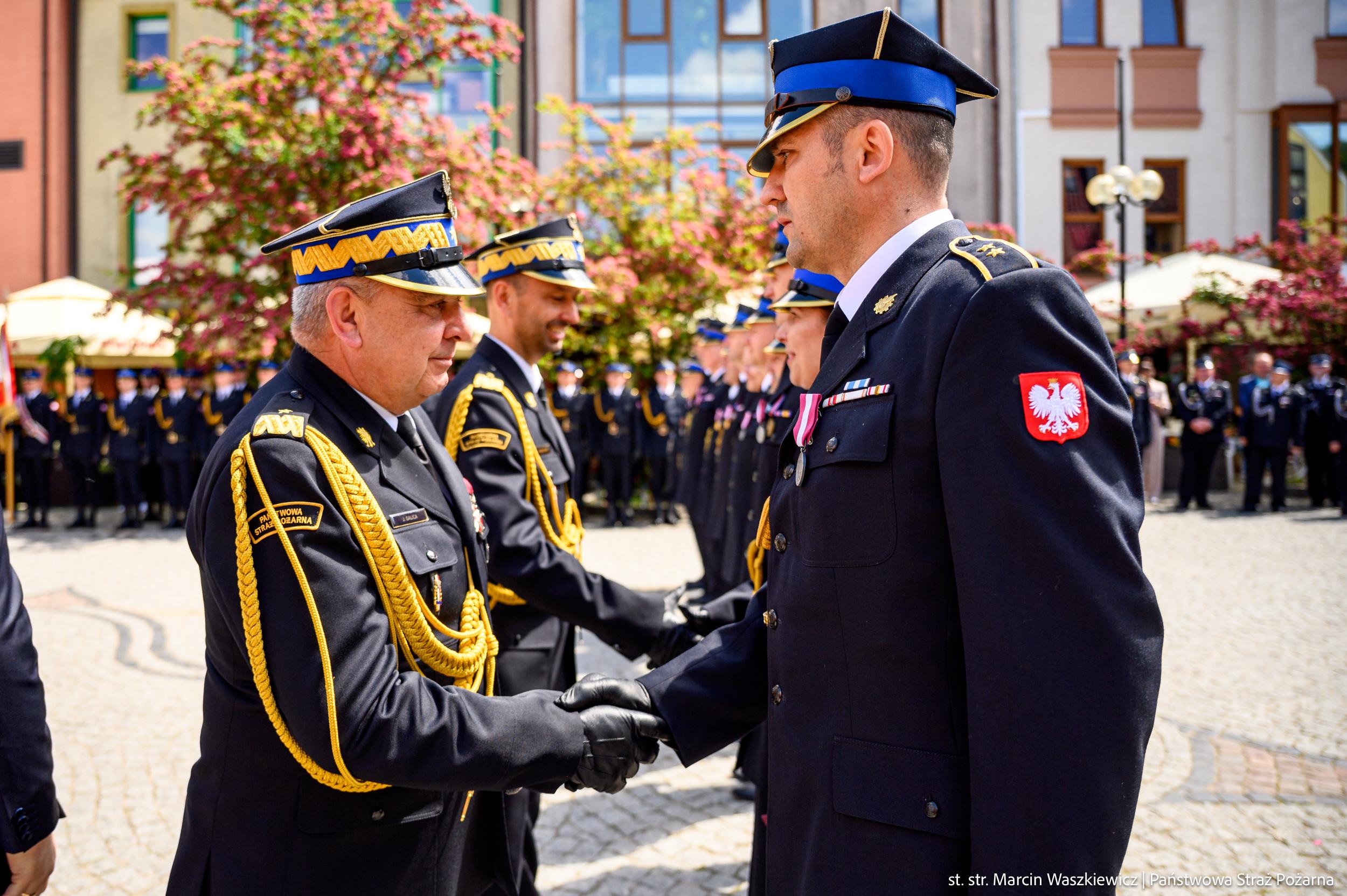 W dalszej części uroczystości wręczono odznaczenia państwowe i związkowe, wyróżnienia przyznane przez Ministra Spraw Wewnętrznych i Administracji oraz Komendanta Głównego PSP, a także akty nadania wyższych stopni służbowych funkcjonariuszom PSP. Ponadto Zastępca Komendanta Głównego PSP uroczyście wręczył akty włączenia do Krajowego Systemu Ratowniczo-Gaśniczego jednostkom: