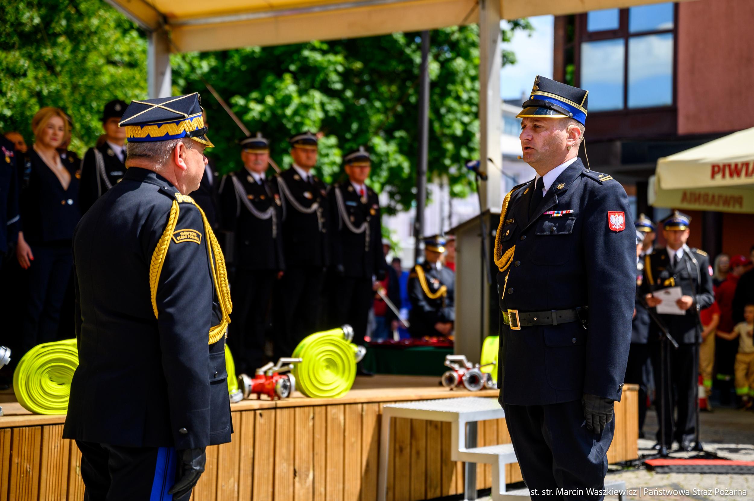 Po złożeniu meldunku o gotowości do rozpoczęcia uroczystości przez dowódcę apelu nadbryg. Józef Galica dokonał przeglądu pododdziałów. Oficjalnego powitania dokonał nadbryg. Michał Kamieniecki – Warmińsko-Mazurski Komendant Wojewódzki PSP.