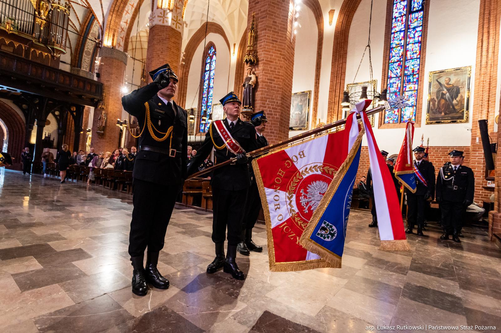 Uroczystości rozpoczęły się Mszą Świętą w intencji strażaków, odprawioną w Bazylice Konkatedralnej Św. Jakuba Apostoła. Następnie uczestnicy wydarzenia, w towarzystwie strażackiej orkiestry dętej z Zielonki Pasłęckiej, Kompanii Honorowej Komendy Wojewódzkiej PSP w Olsztynie oraz pocztów sztandarowych, przemaszerowali ulicami Starego Miasta na Targ Rybny, gdzie odbył się uroczysty apel.