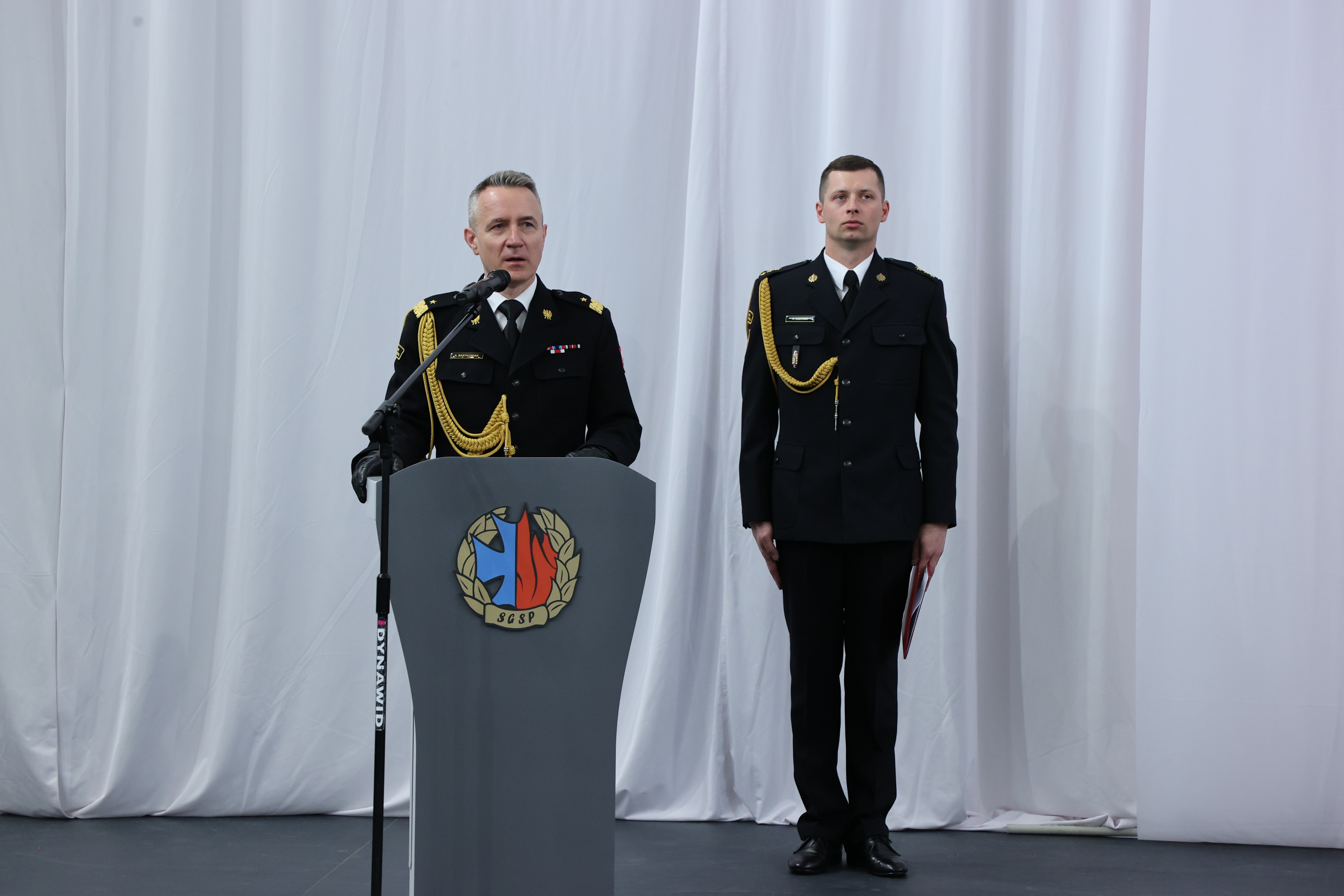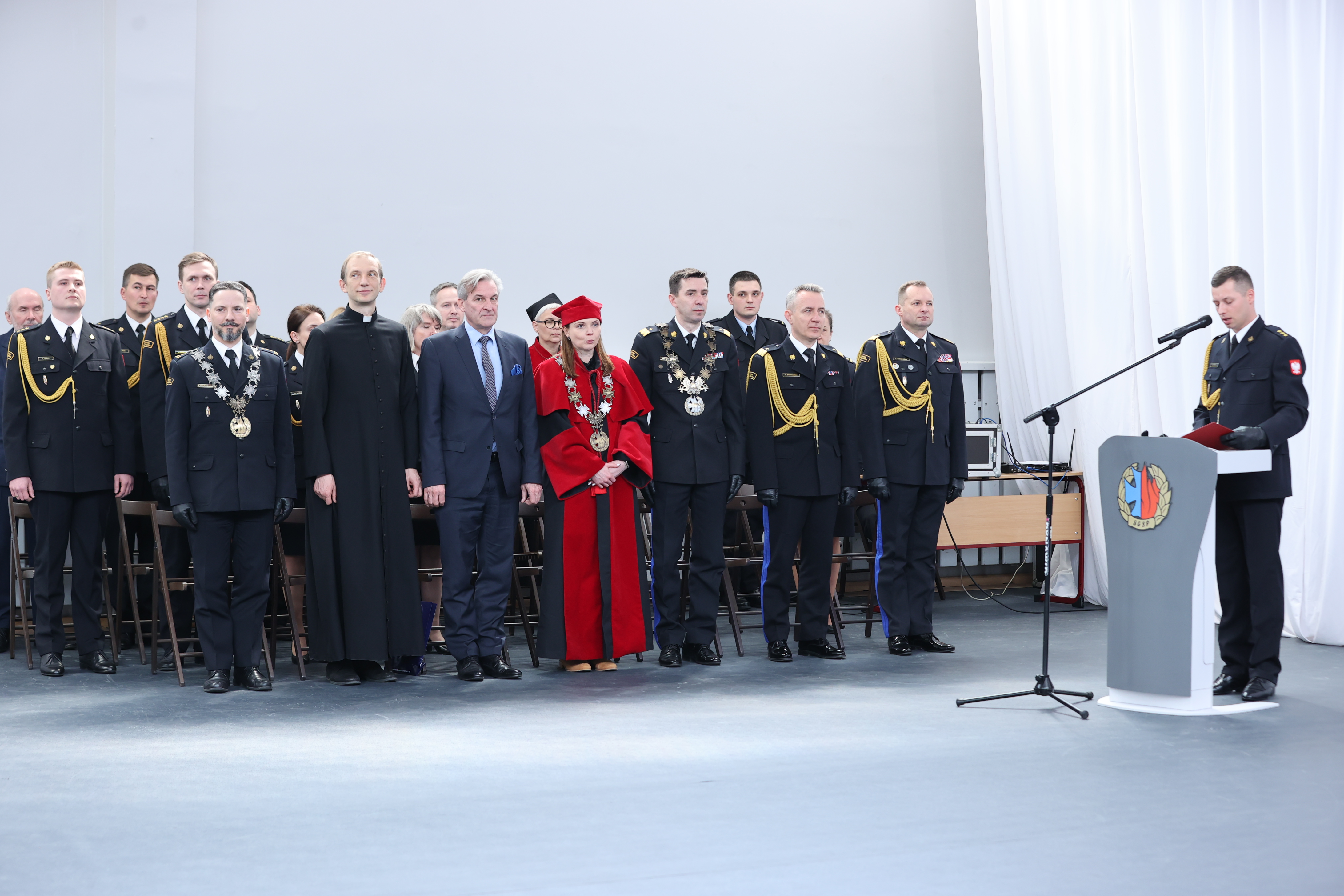 Komendant Główny PSP nadbryg. Andrzej Bartkowiak podziękował wykładowcom, kadrze i studentom SGSP za wysiłek i pracę włożone w proces kształcenia. Zaznaczył, że absolwenci mundurowi, również jako oficerowie PSP, pełnią wyjątkową służbę w szczególnych okolicznościach.