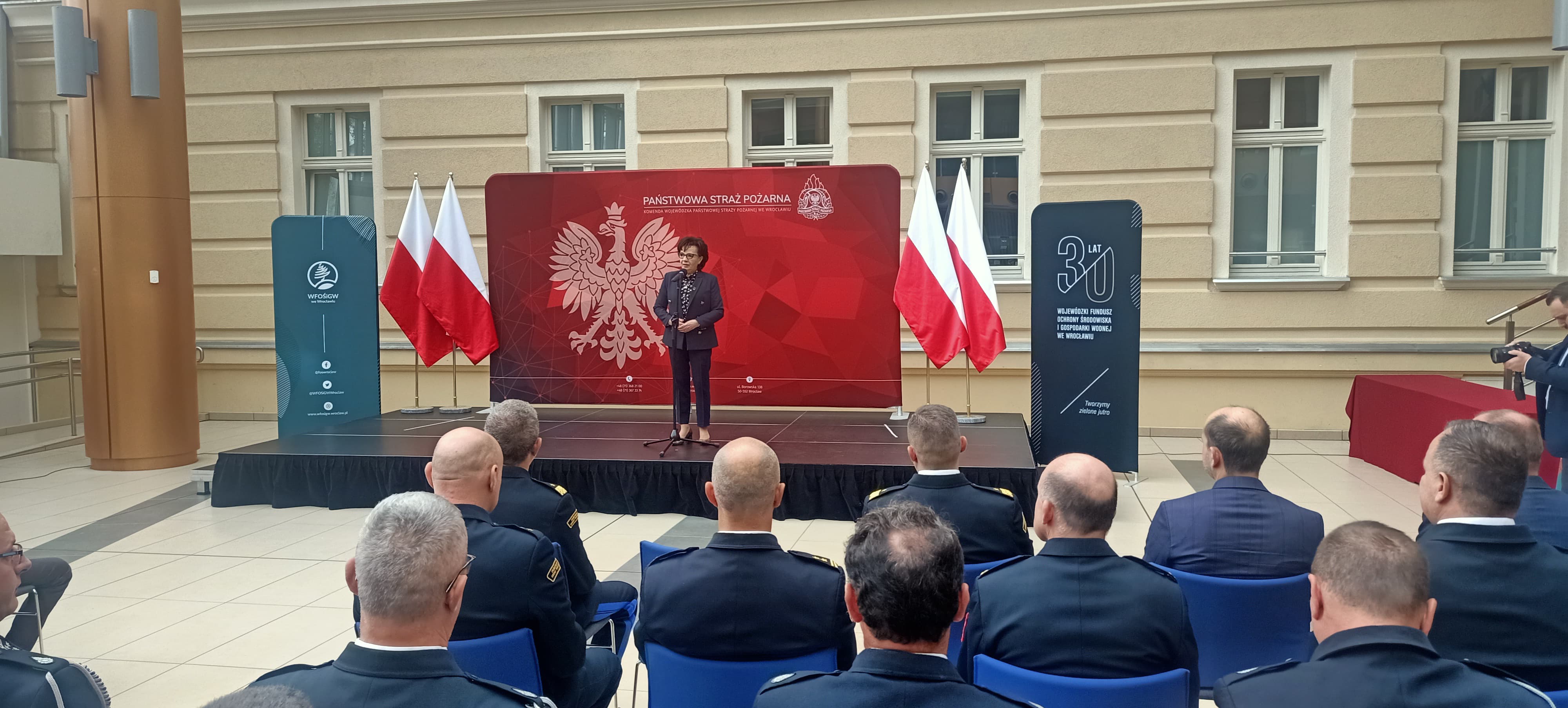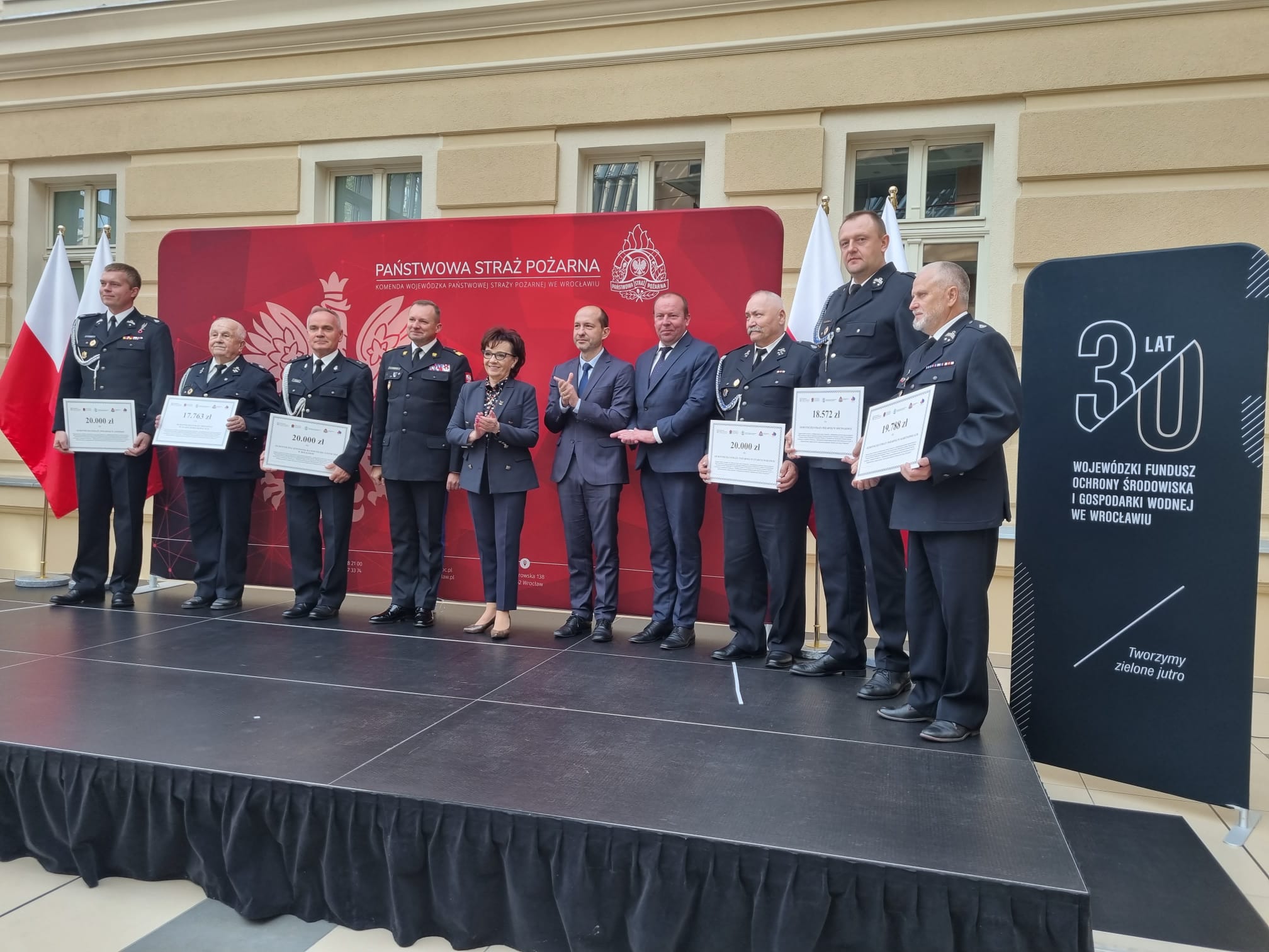 Promesy druhom osobiście wręczył zastępca komendanta głównego PSP nadbryg. dr inż. Adam Konieczny, a towarzyszyli mu Pani Elżbieta Witek – Marszałek Sejmu RP, Pan Łukasz Kasztelowicz – prezes Zarządu WFOŚiGW we Wrocławiu oraz Pan Bartłomiej Wiązowski – zastępca prezesa Zarządu WFOŚiGW we Wrocławiu.