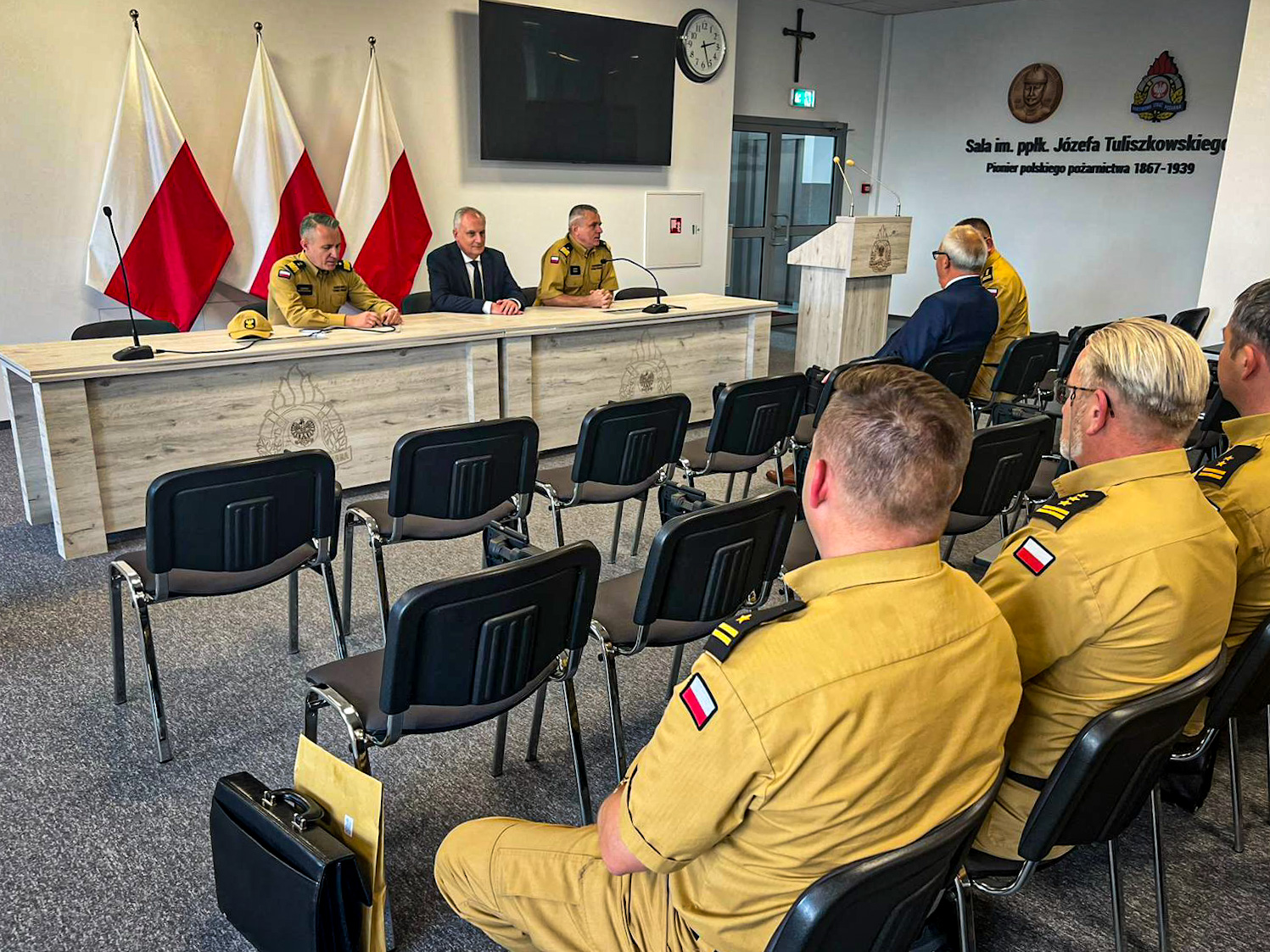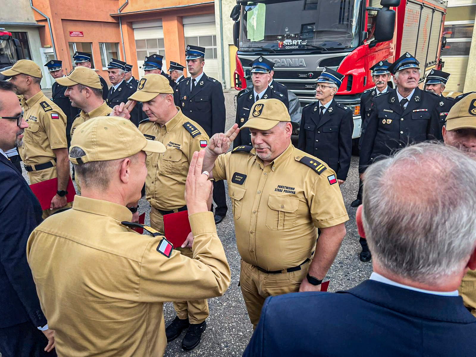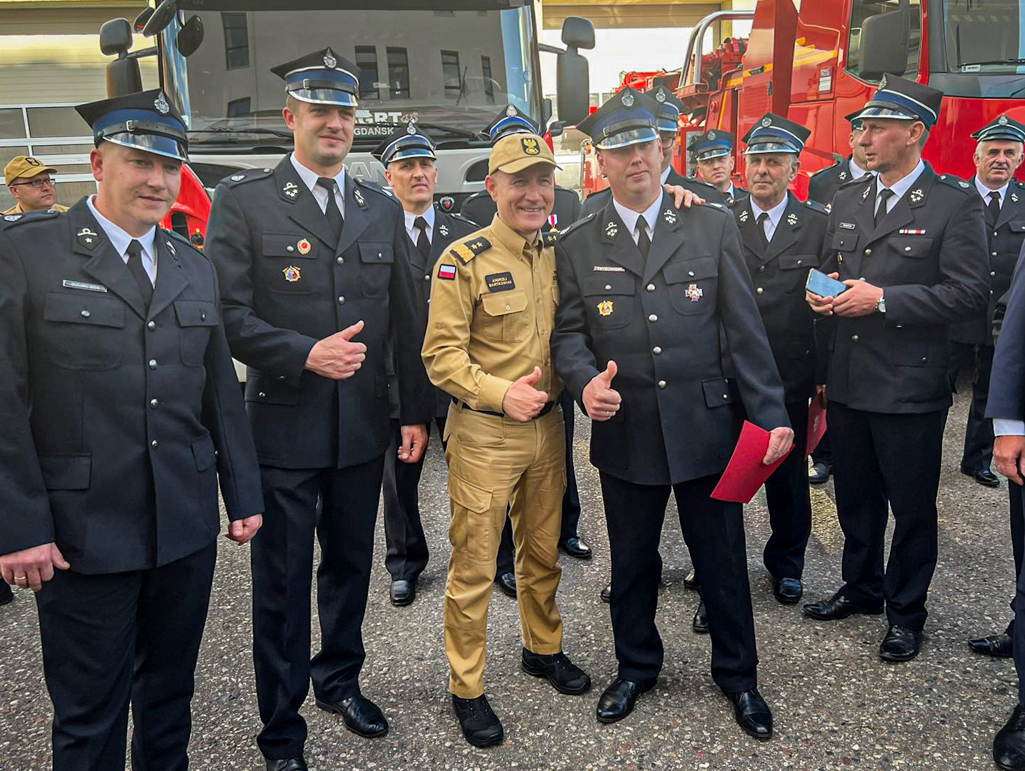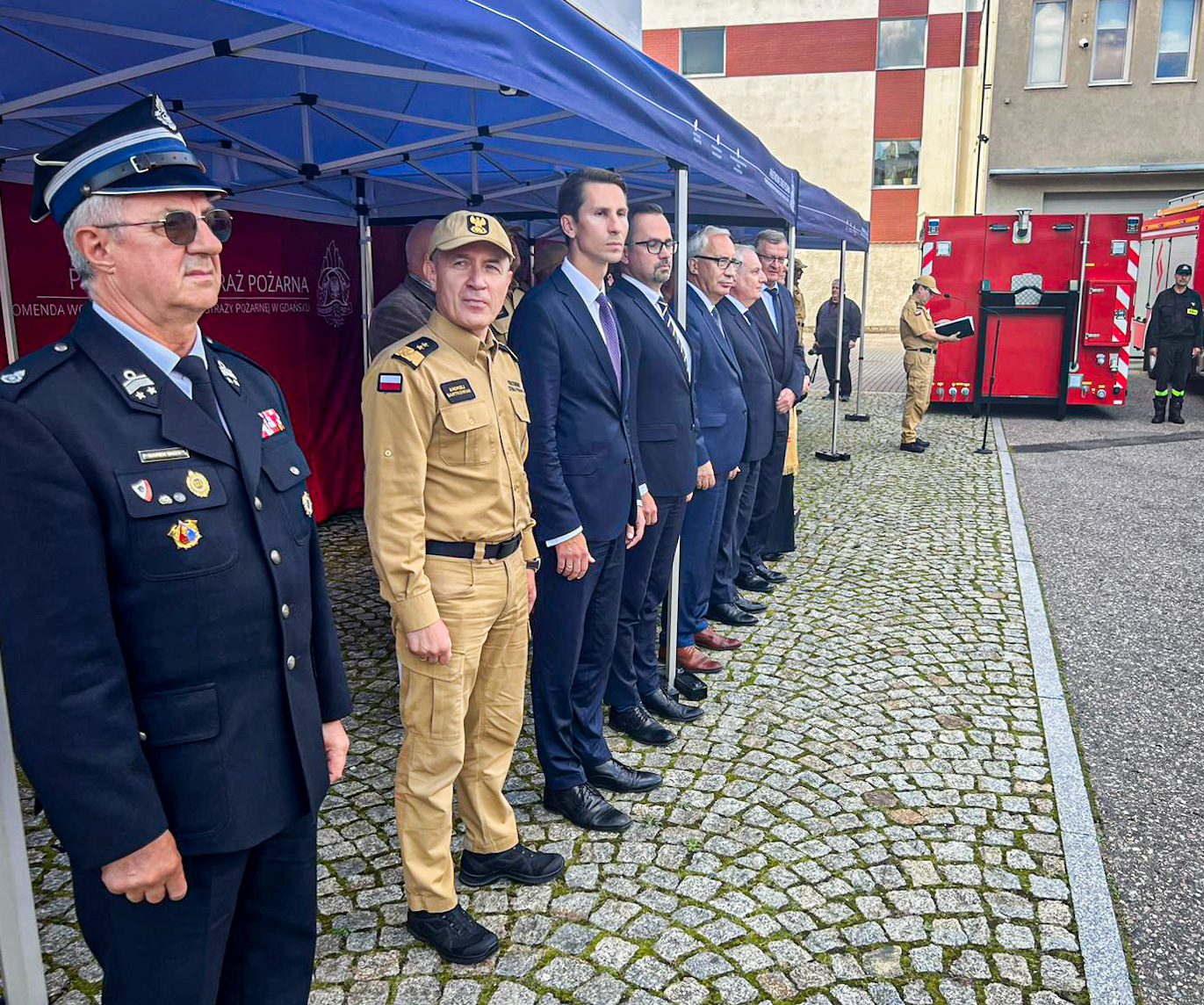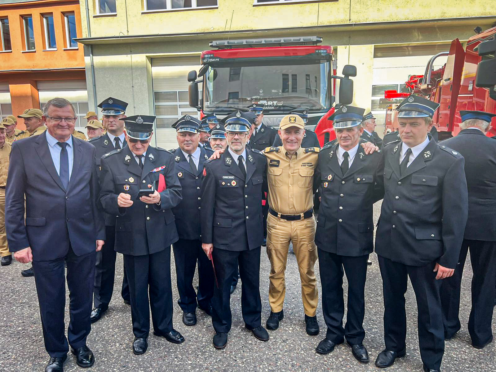 W spotkaniu udział wzięli również: sekretarz stanu w Ministerstwie Funduszy i Polityki Regionalnej, pełnomocnik rządu ds. Centralnego Portu Komunikacyjnego Pan Marcin Horała, Posłowie na Sejm RP: Pan Tadeusz Cymański, Pan Kazimierz Smoliński, Pan Kacper Płażyński, Prezes Zarządu Oddziału Wojewódzkiego Związku Ochotniczych Straży Pożarnej RP druh Marek Buza, kadra kierownicza KW PSP w Gdańsku oraz KP/KM PSP województwa pomorskiego na czele z pomorskim komendantem wojewódzkim PSP nadbryg. Piotrem Sochą.