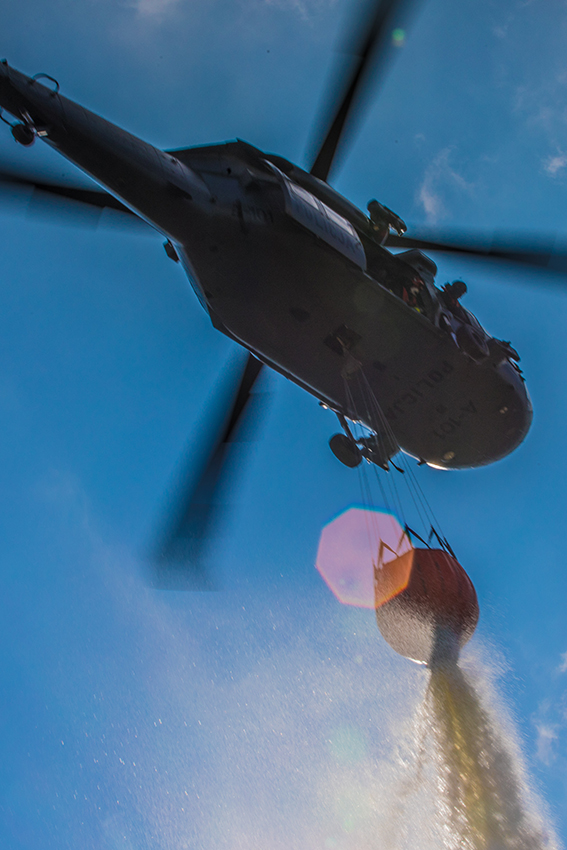 W pamięci nadal mamy groźny pożar torfowisk na terenie Biebrzańskiego Parku Narodowego, do którego doszło wiosną ubiegłego roku. Akcja gaśnicza była wówczas niezmiernie trudna, trwała kilkanaście dni. Niestety doświadczenia służb wskazują, że i w tym roku wraz z nastaniem wiosny należy brać pod uwagę zagrożenie pożarowe, np. związane z wypalaniem traw. Aby przygotować się do szybkiego i skutecznego gaszenia pożarów, policyjni piloci i strażacy z Komendy Miejskiej PSP m.st. Warszawy przez dwa dni realizowali wspólne ćwiczenia na terenie Bazy Szkolenia Poligonowego i Innowacji Ratownictwa SGSP w Nowym Dworze Mazowieckim, z wykorzystaniem podwieszanego pod śmigłowiec zbiornika z wodą, tzw. Bambi Bucket.