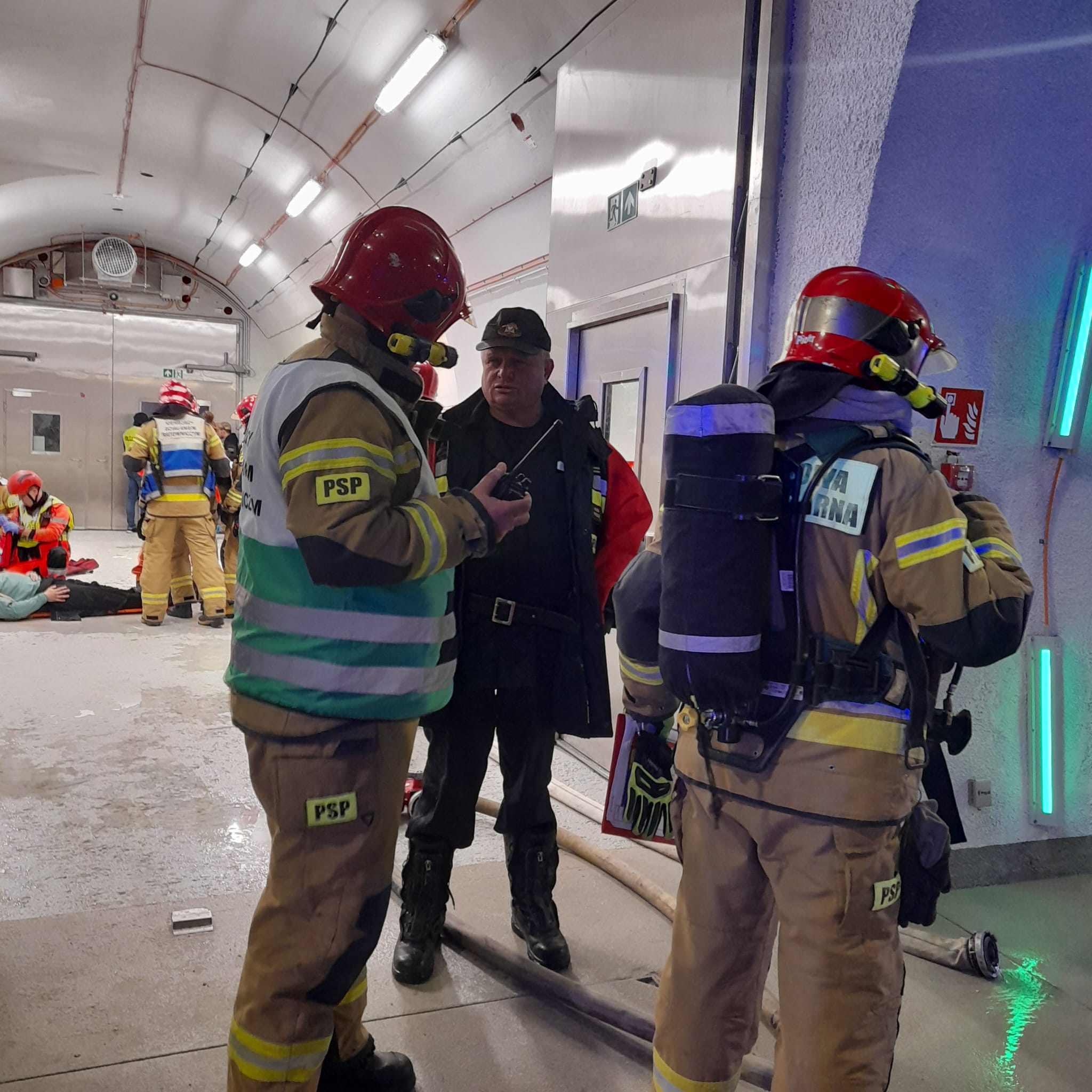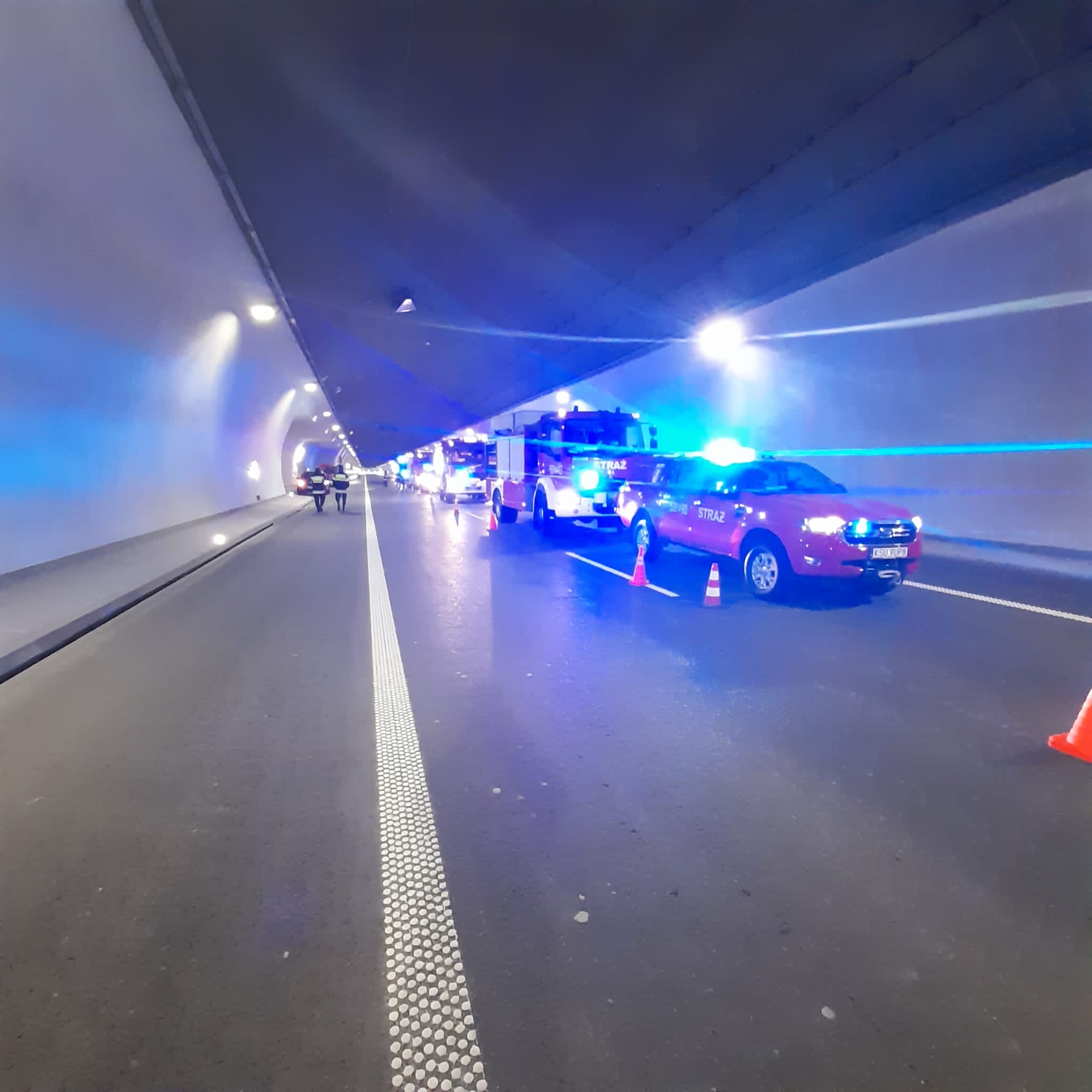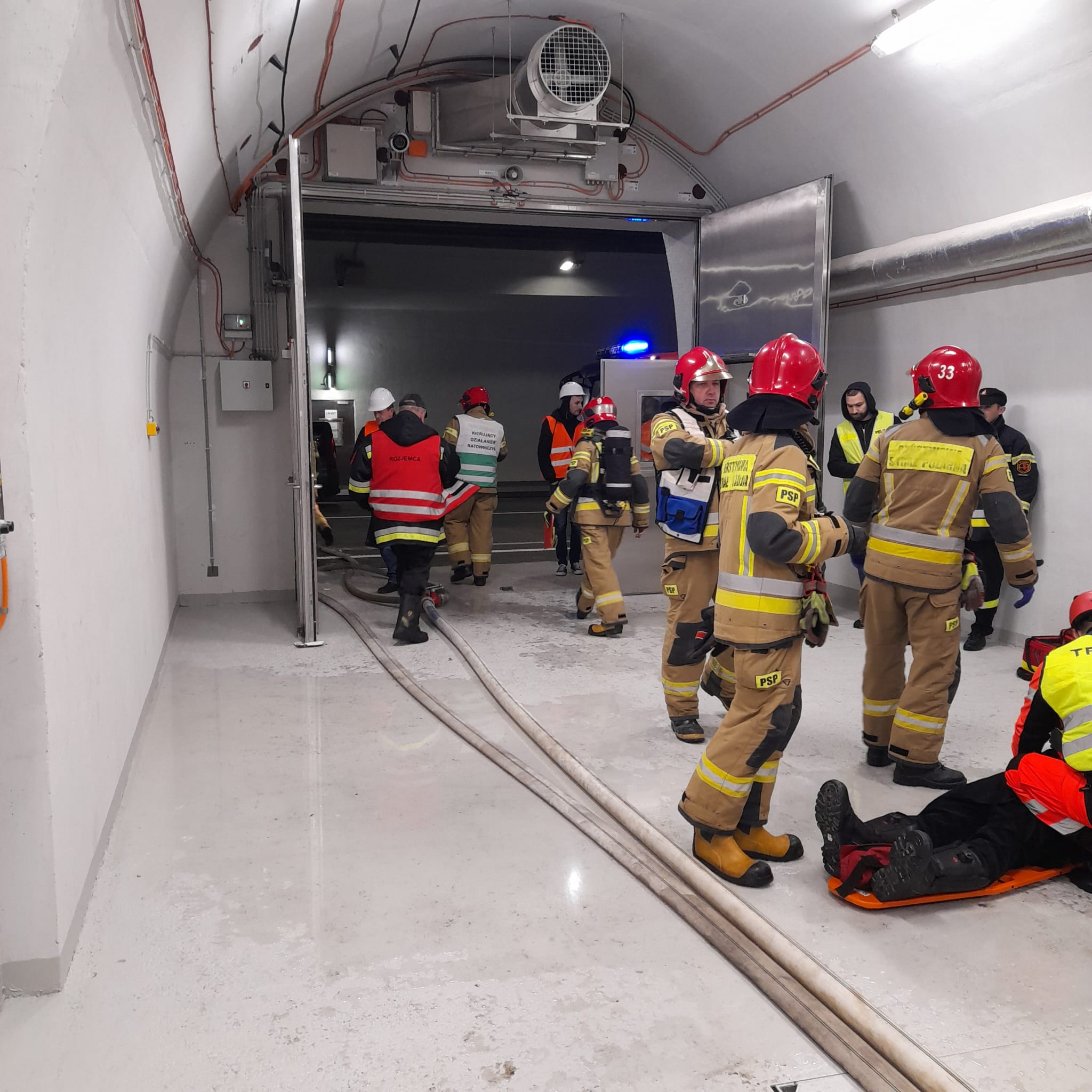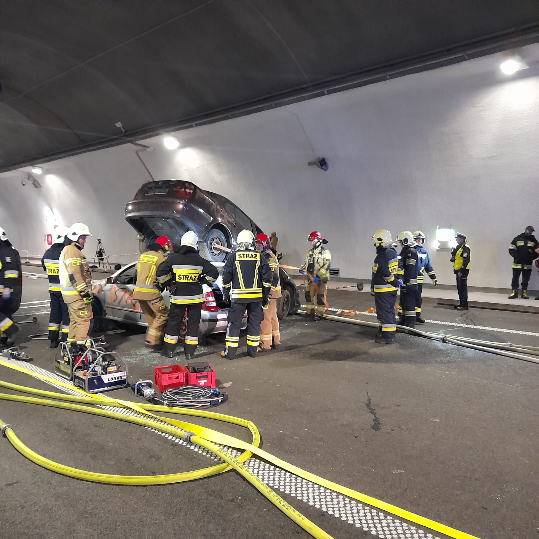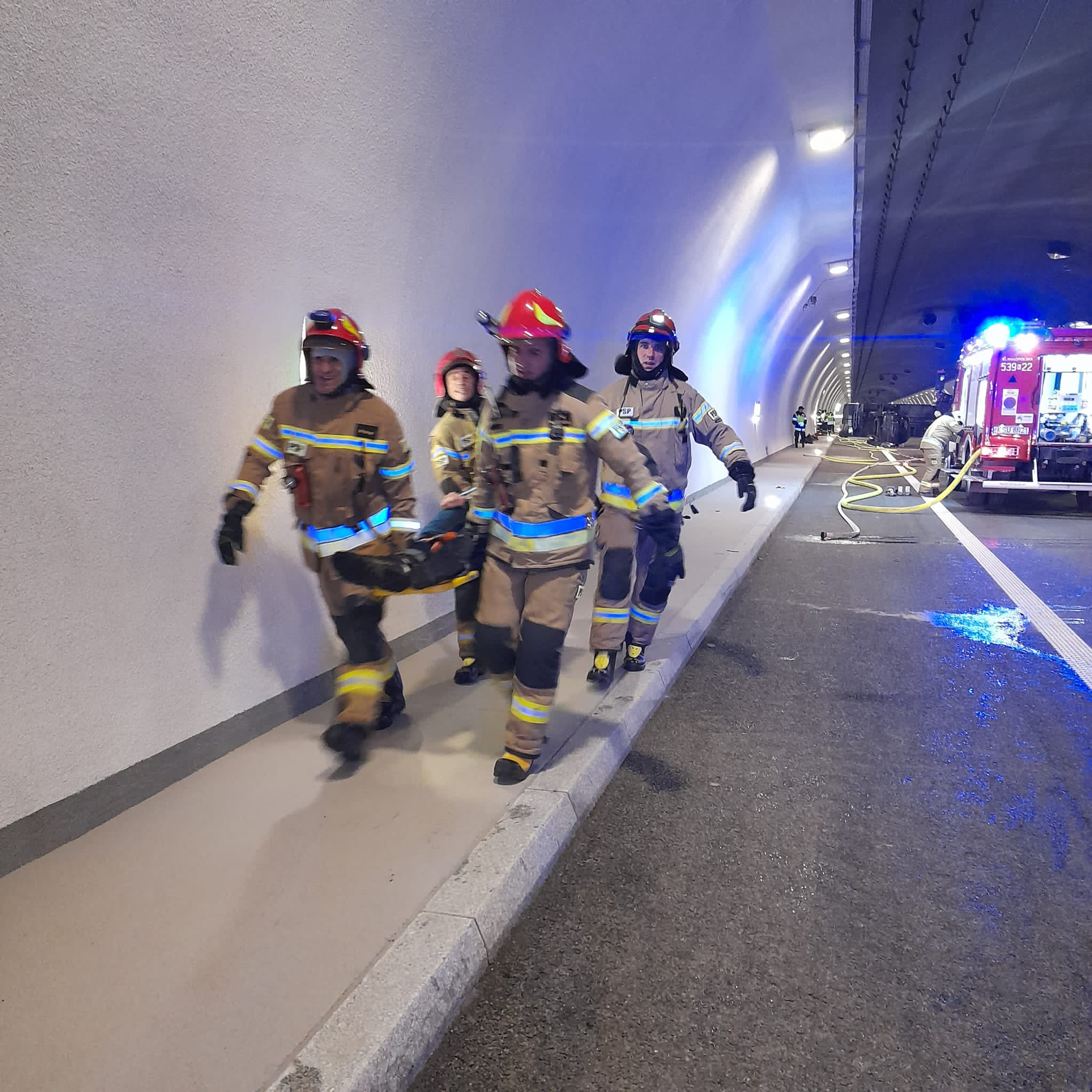 Wspólne ćwiczenia strażaków i służb ratowniczych w tunelu na nowym odcinku Zakopianki