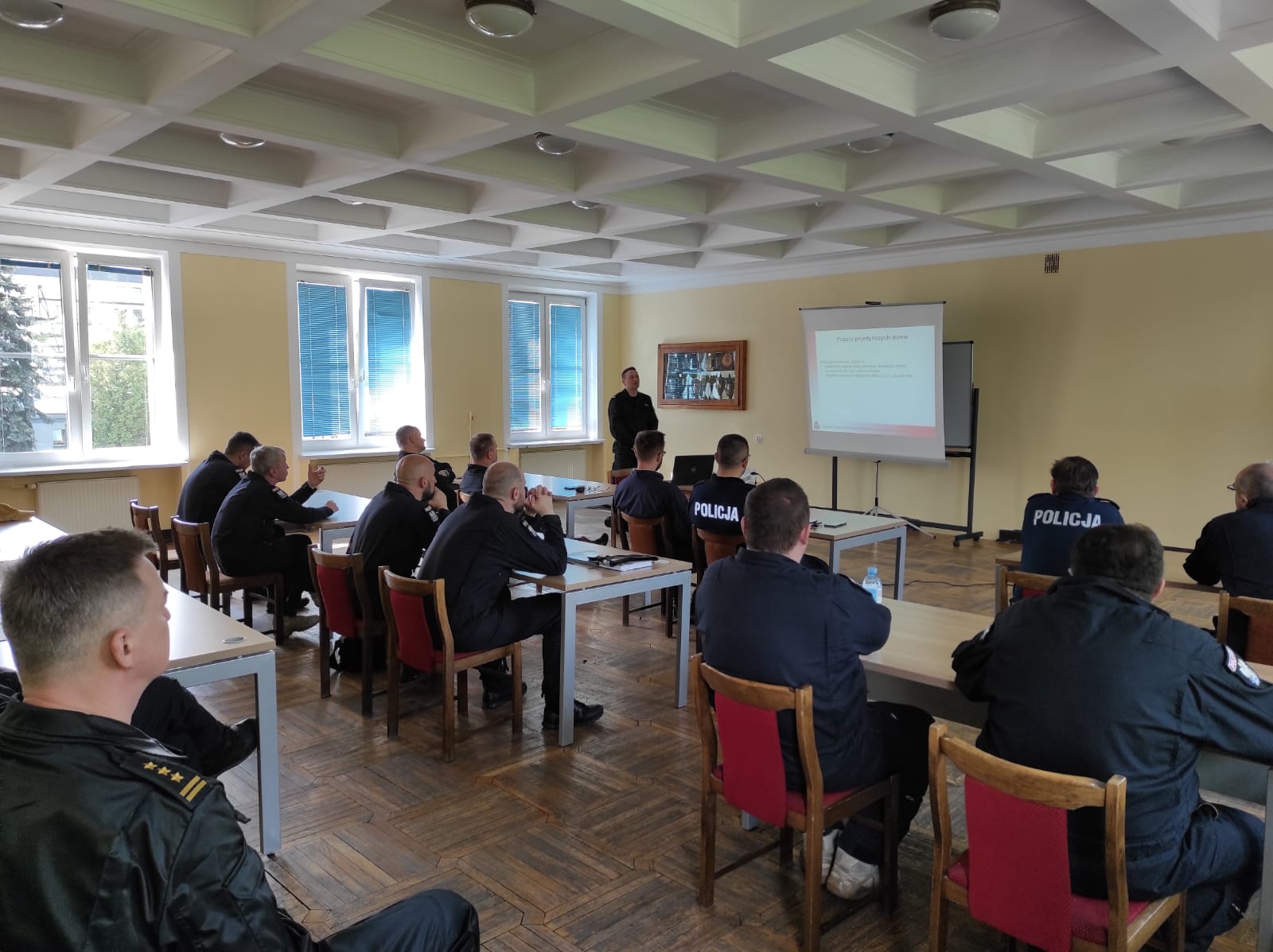 Wykład dotyczący taktyki działań ratowniczo-gaśniczych podczas pożarów wielkopowierzchniowych oraz lasów prowadził z-ca dyr. KCKRiOL KG PSP bryg. Michał Langner.