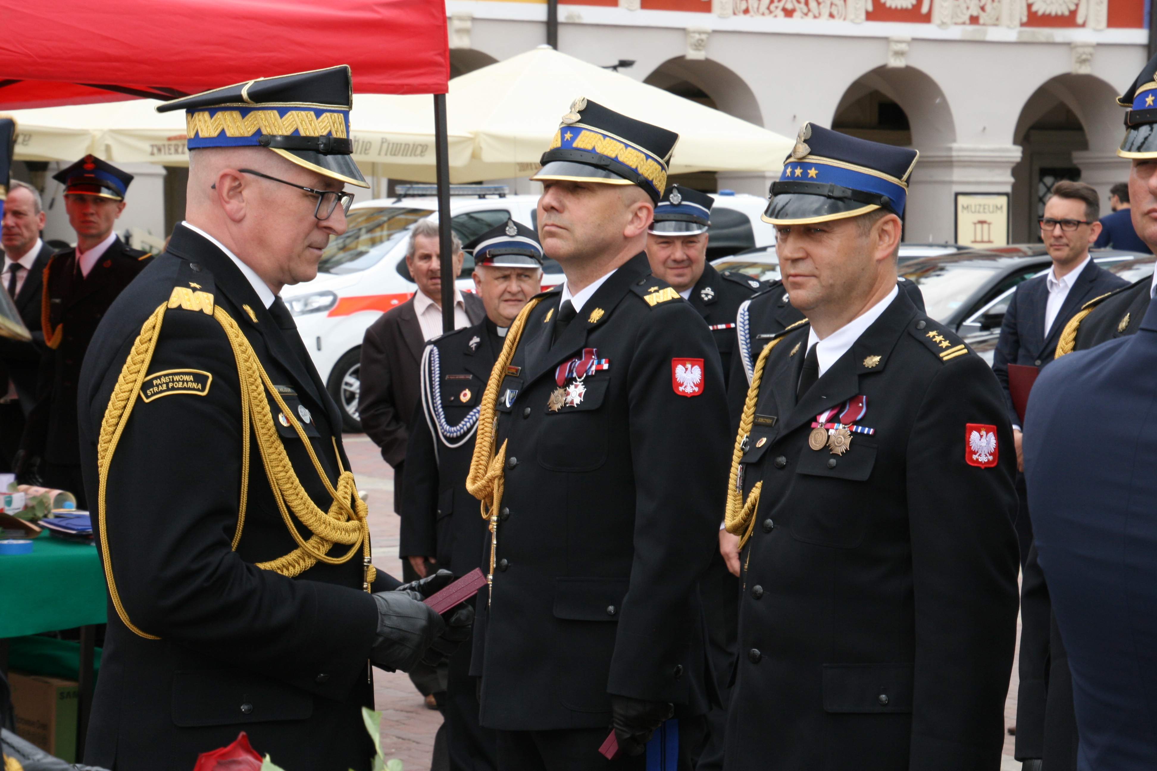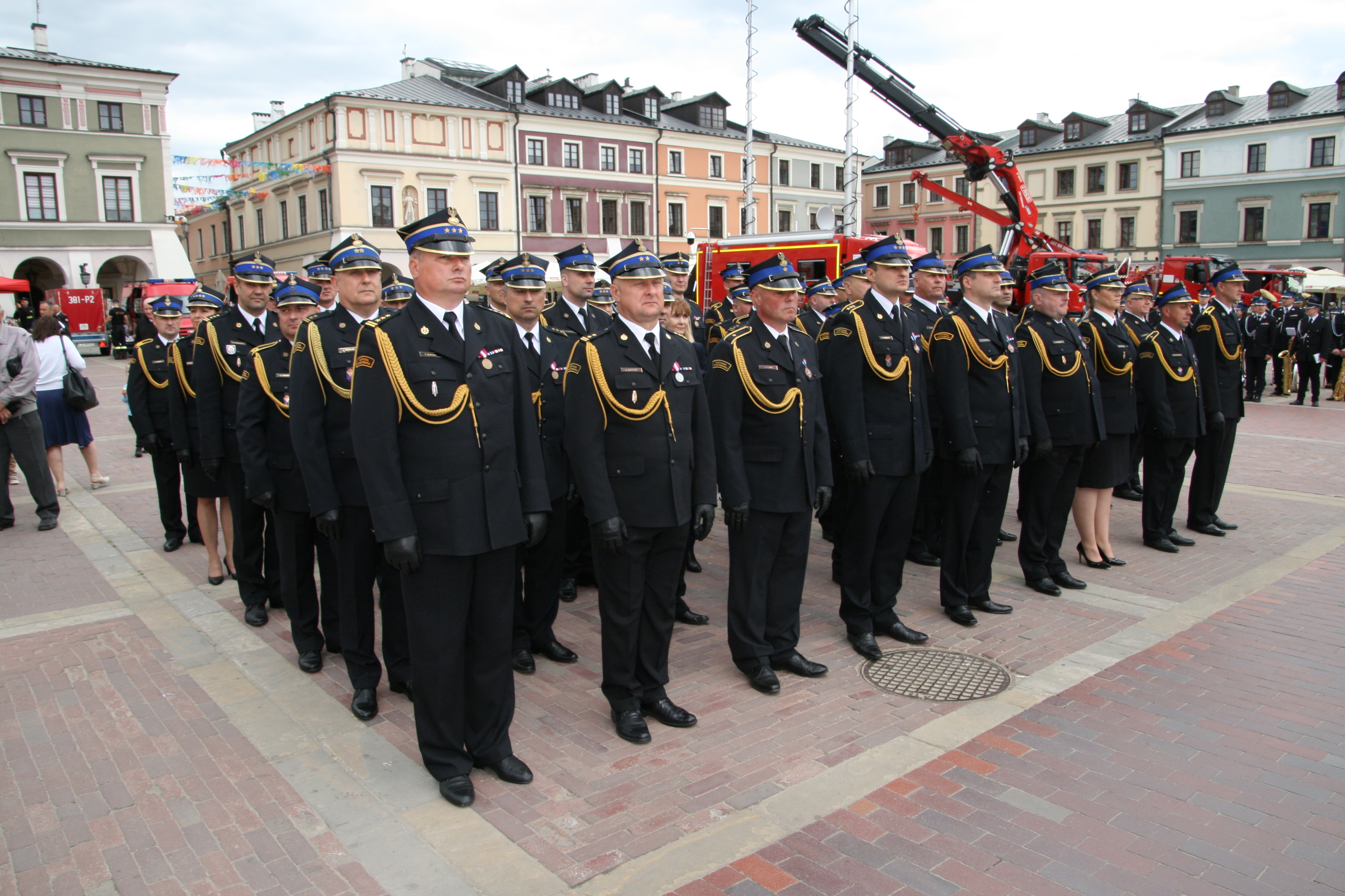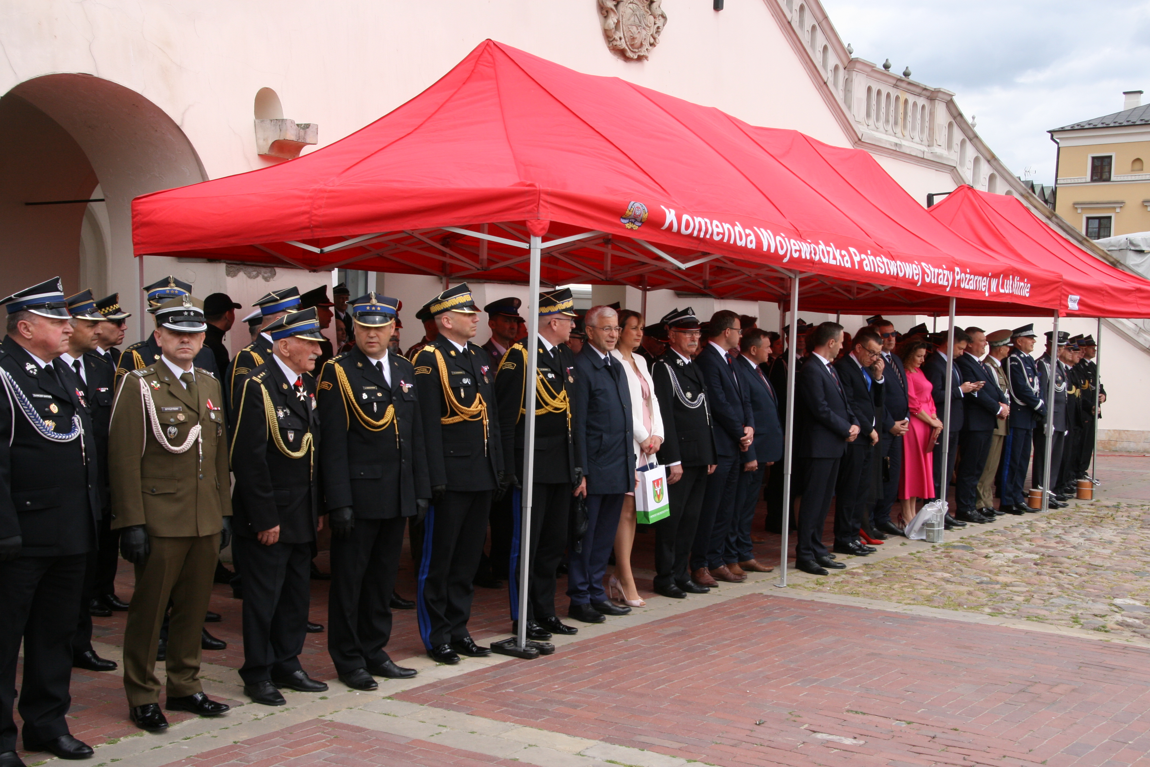 Główna część uroczystości rozpoczął meldunek złożony nadbryg. Krzysztofowi Hejdukowi zastępcy komendanta głównego PSP. Następnie nastąpiło uroczyste podniesienie flagi na maszt i odegranie hymnu państwowego. Zebranych gości przywitał nadbrygadier Grzegorz Alinowski Lubelski Komendant Wojewódzki Państwowej Straży Pożarnej. Rys historyczny zamojskiej straży pożarnej przedstawi starszy brygadier Jacek Sobczyński Komendant Miejski Państwowej Straży Pożarnej w Zamościu.
