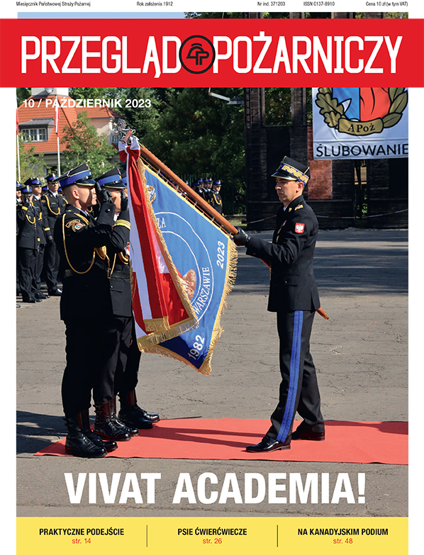 Przełom września i października to szczególny czas dla studentów. Rozpoczyna się kolejny rok akademicki i kolejny etap w ich naukowym i zawodowym życiu. Do tego grona zaliczają się także młodzi adepci pożarnictwa zdobywający wiedzę na uczelni kształcącej oficerów PSP i specjalistów cywilnych. A jednak początek jesieni roku akademickiego 2023/2024 był wyjątkowy dla wszystkich związanych z Akademią Pożarniczą. No właśnie – już akademią, nie szkołą główną. Akt zmiany nazwy, niosący zmianę statusu i otwarcie nowych możliwości został uroczyście domknięty przez nadanie uczelni sztandaru. Ten moment uwieczniło wiele aparatów fotograficznych, a zatrzymaną w kadrze wielką chwilę można podziwiać na naszej okładce.