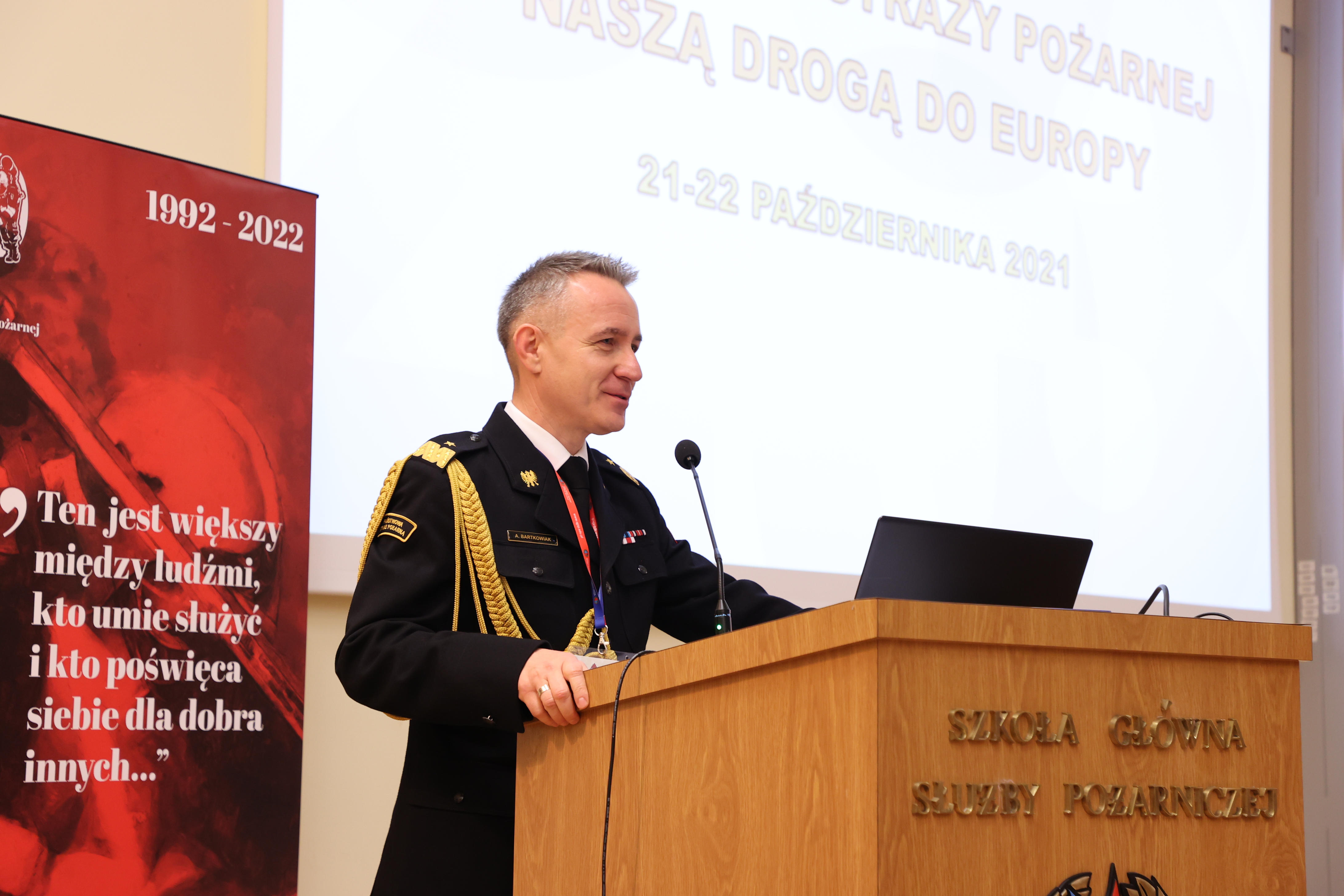 W dniach 21 – 22 października 2021 r. w siedzibie Szkoły Głównej Służby Pożarniczej w Warszawie, w ramach cyklu obchodów jubileuszu 30-lecia powstania Państwowej Straży Pożarnej, zorganizowano Konferencję Jubileuszową „30 LAT PAŃSTWOWEJ STRAŻY POŻARNEJ NASZĄ DROGĄ DO EUROPY”.