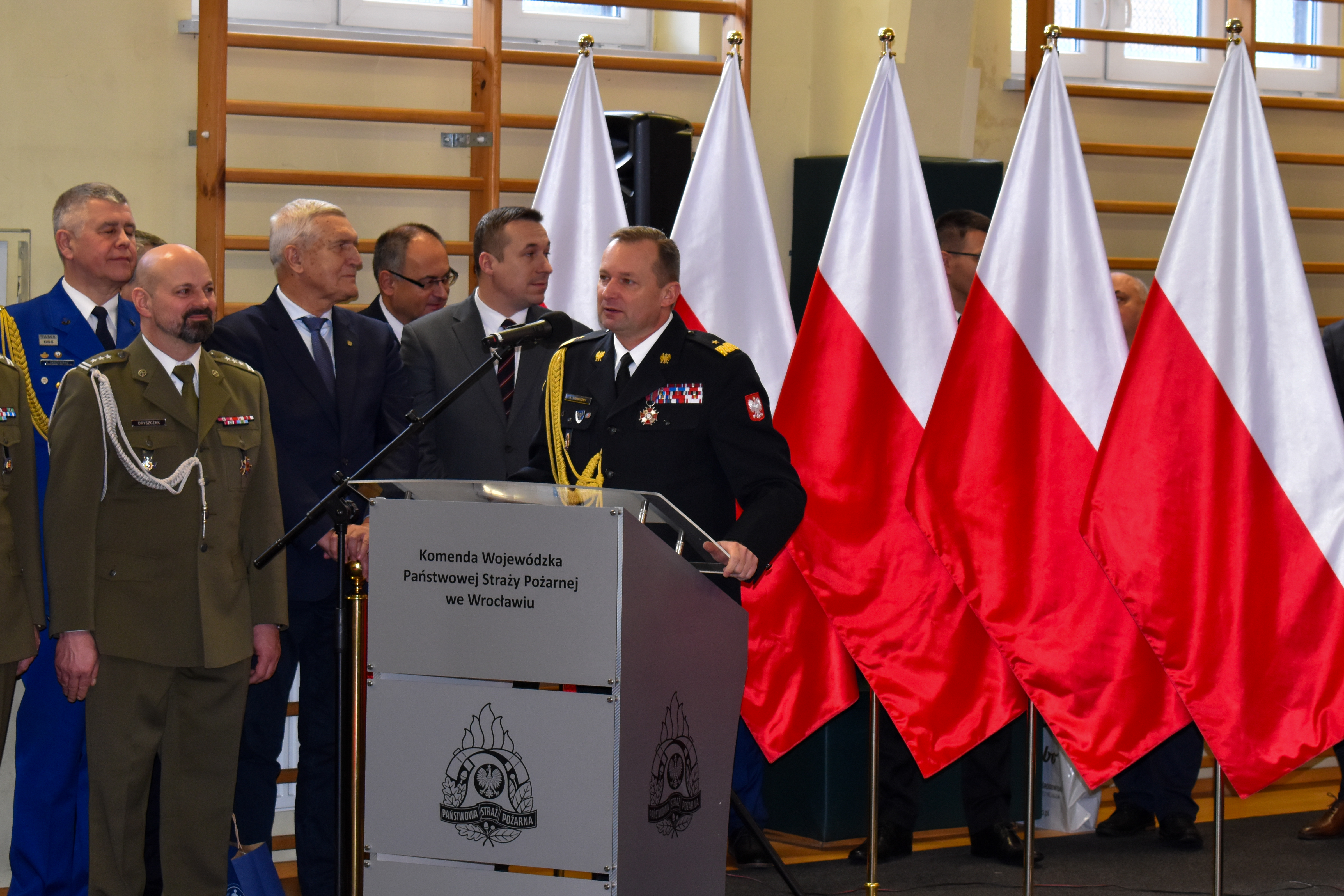 W trakcie tej ceremonii, nadbryg. dr inż. Adam Konieczny, zastępca komendanta głównego PSP, podziękował ustępującemu dolnośląskiemu komendantowi wojewódzkiemu za lata służby, związane z przekazaniem obowiązków na rzecz zaopatrzenia emerytalnego. W odpowiedzi nadbryg. Marek Kamiński, dolnośląski komendant wojewódzki PSP, podziękował zebranym za współpracę i szczegółowo podsumował zrealizowane działania. Następnie odczytano treść decyzji o odwołaniu ze stanowiska Komendanta Wojewódzkiego PSP, po czym odbyło się symboliczne pożegnanie ze sztandarem Komendy Wojewódzkiej Państwowej Straży Pożarnej we Wrocławiu.