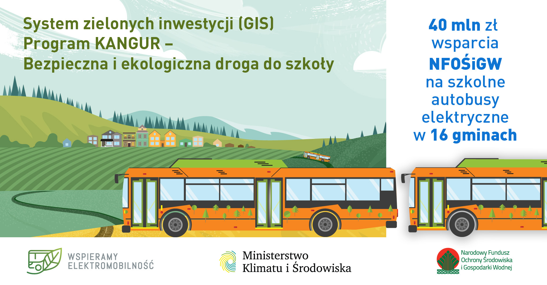 Środki na zakup zeroemisyjnych autobusów pochodzą z programu priorytetowego „System zielonych inwestycji (GIS – Green Investment Scheme) – KANGUR – Bezpieczna i ekologiczna droga do szkoły”, którego celem jest zmniejszenie zanieczyszczenia powietrza. Z programu „Kangur” NFOŚiGW dofinansuje przedsięwzięcia zmniejszające zużycie paliw w transporcie w gminach. Dzięki atrakcyjnemu dofinansowaniu samorządy z obszarów wiejskich mogą zakupić ekologiczne autobusy, znacząco poprawiając komfort podróży dzieci do szkoły.