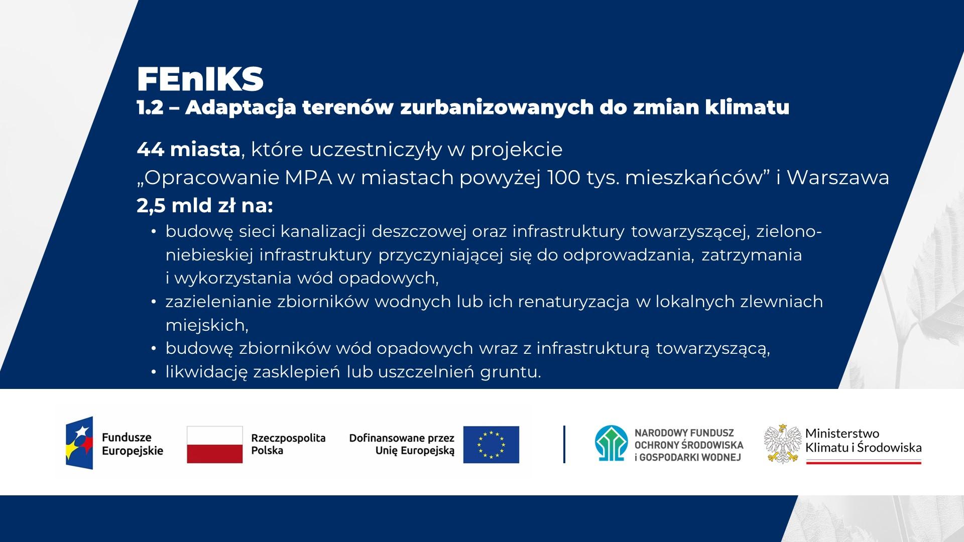 Dlatego ponad 7 mld zł z programu Funduszy Europejskich na Infrastrukturę, Klimat i Środowisko (FEnIKS) przeznaczymy dla: