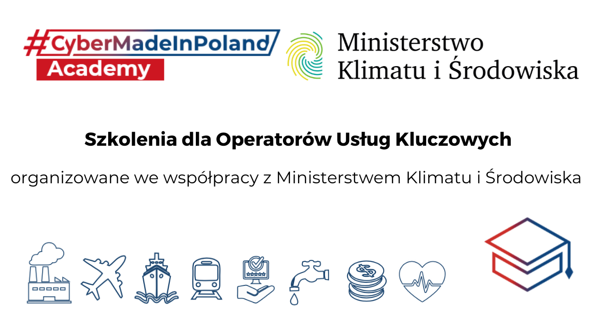 Wydział ds. Cyberbezpieczeństwa działający w ramach Departamentu Spraw Obronnych, Zarządzania Kryzysowego i Bezpieczeństwa Ministerstwa Klimatu i Środowiska we współpracy z klastrem cyberbezpieczeństwa #CyberMadeInPoland organizują kolejny cykl darmowych szkoleń online dedykowany operatorom usług kluczowych.