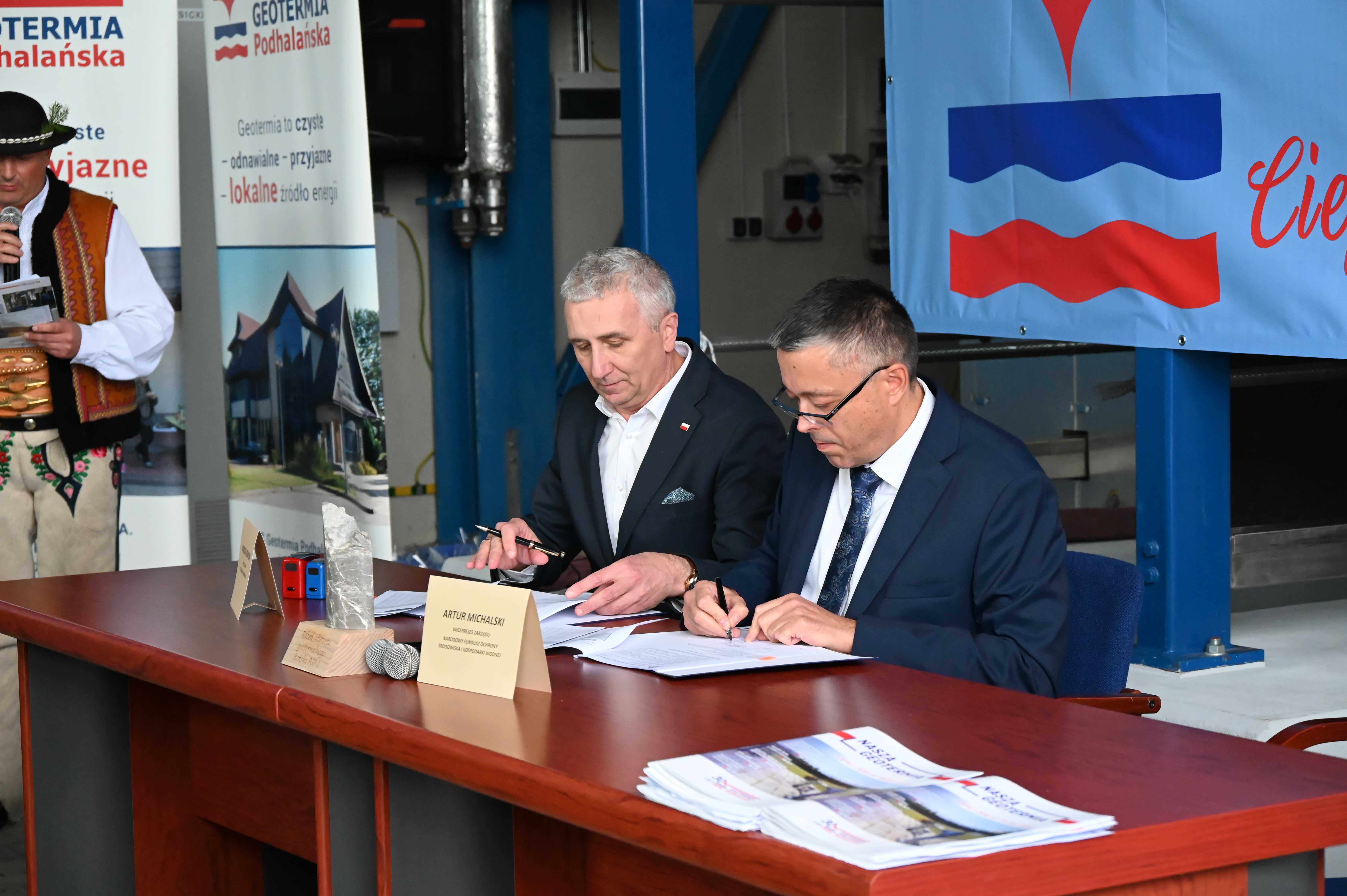Uroczystego podpisania umowy dokonali: Artur Michalski, Prezes NFOŚiGW oraz Wojciech Ignacok, Prezes Zarządu PEC Geotermia Podhalańska S.A.