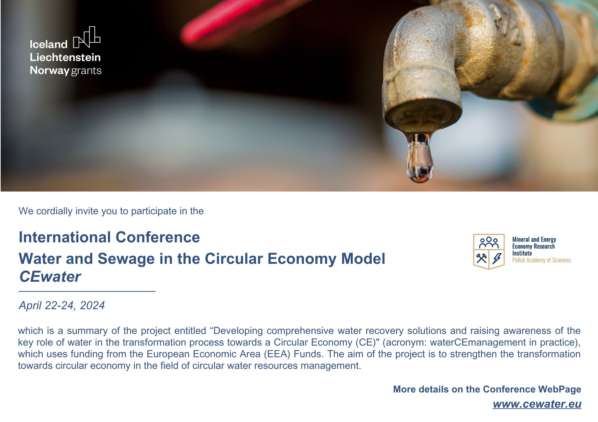 22 kwietnia br. rozpocznie się międzynarodowa konferencja Woda i Ścieki w Modelu Gospodarki o Obiegu Zamkniętym (CEwater) podsumowująca projekt wodoGOZowanie w praktyce – opracowanie kompleksowych rozwiązań odzysku wody i podnoszenie świadomości o kluczowej roli wody w procesie transformacji w kierunku gospodarki o obiegu zamkniętym (link do strony projektu).