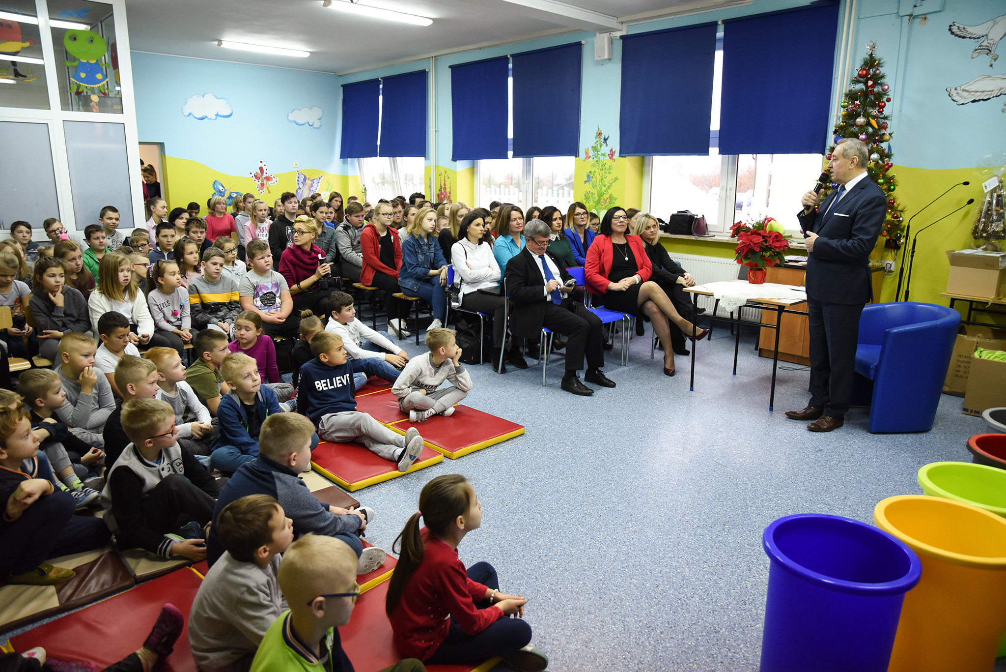 - Kiedy idziemy do sklepu, co zabieramy ze sobą? Torbę, ale nie taka plastikową, tylko wielorazową, wykonaną z materiału. Plastikowe za chwilę wyrzucamy, zanieczyszczają nasze środowisko, a materiałowa jest mocna i można ją wyprać, kiedy się pobrudzi – tłumaczył maluchom i młodzieży minister Kowalczyk. Słuchało go ponad 120 uczniów szkoły w Leszczydole Starym. Dzieci dowiedziały się też czym nie wolno palić w piecach i w jaki sposób szkodzi nam spalanie w przydomowych kotłach śmieci czy opon. Minister powiedział im też, co zrobić ze śmieciami, i że nie wolno ich wyrzucać np. do lasu. Dzieci zobowiązały się podzielić tą wiedzą z rodzicami.