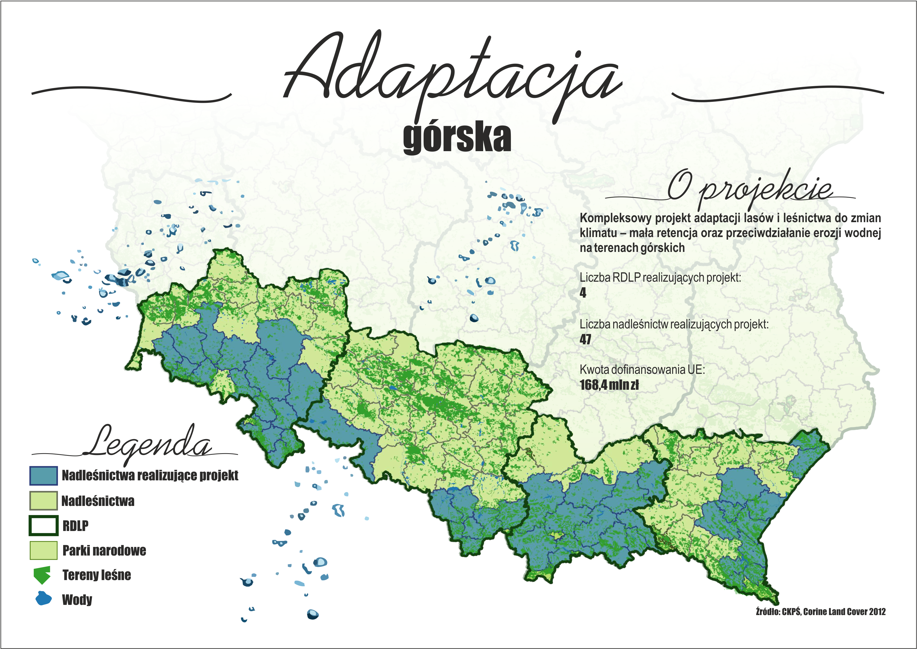 W ramach POIiŚ realizowane są projekty tzw. adaptacji górskiej, obejmujące rozwój systemów małej retencji oraz przeciwdziałanie nadmiernej erozji wodnej na terenach górskich. Bezpośrednim efektem realizacji tego projektu będzie zretencjonowanie 400 tys. m³ wody.