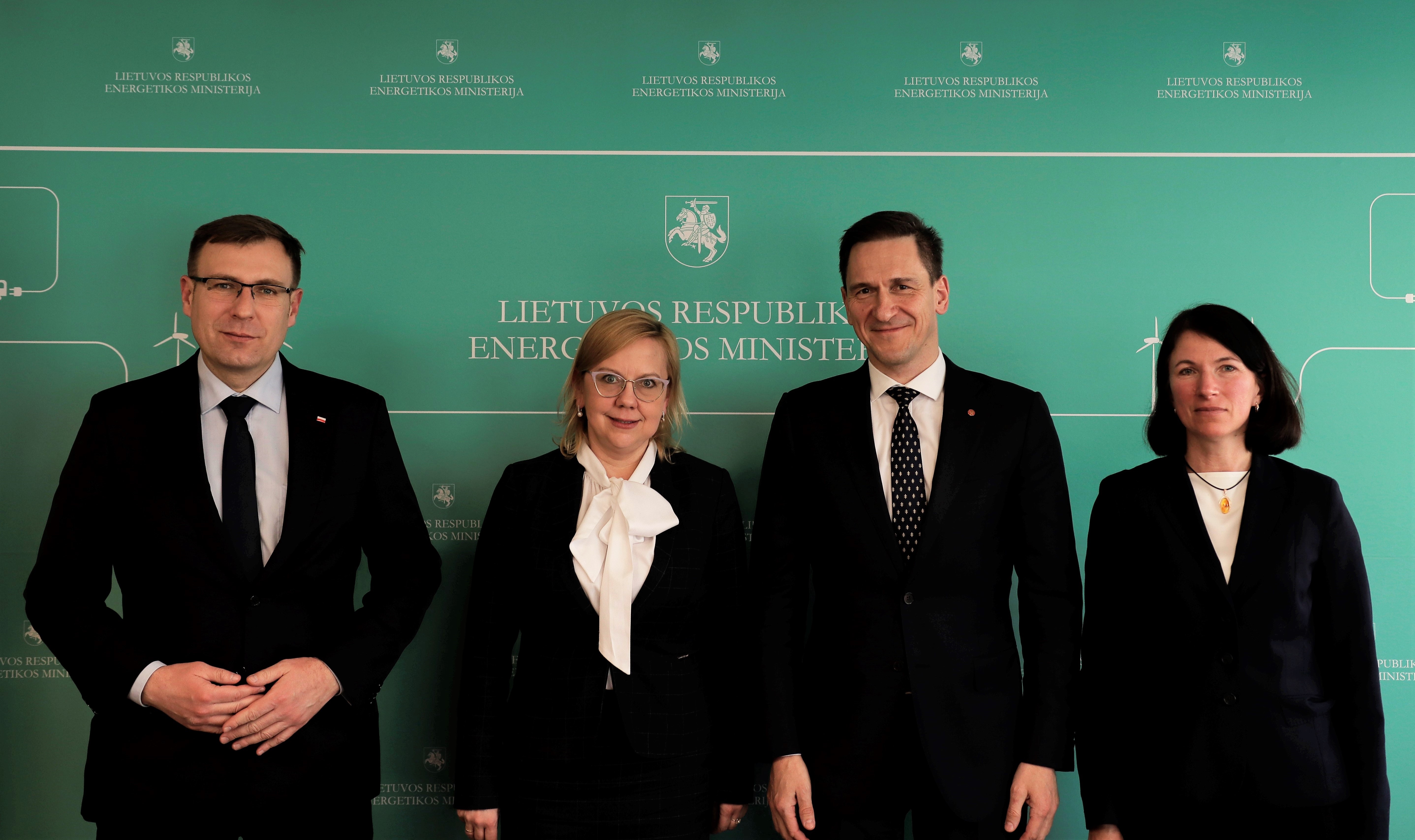 Minister klimatu i środowiska Anna Moskwa wraz z wiceministrem aktywów państwowych Maciejem Małeckim, 5 kwietnia 2022 r. w Wilnie, uczestniczyli w spotkaniu z ministrem energetyki Republiki Litewskiej Dainiusem Kreivysem.
