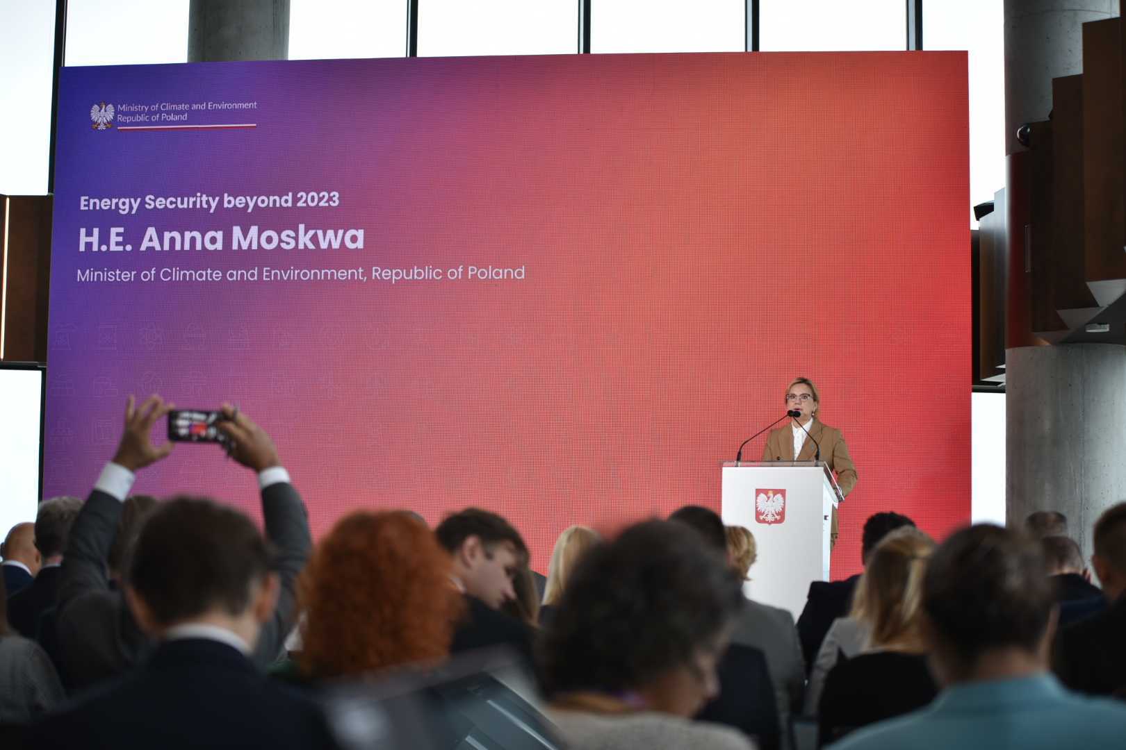 Bezpieczeństwo energetyczne po 2023 r. – osiągnięcie gotowości na zimę w niespokojnych czasach to główny temat konferencji, w której 14 września 2023 r. uczestniczyła minister klimatu i środowiska Anna Moskwa. W spotkaniu, które odbyło się w Warszawie, udział wzięli także m.in. komisarz ds. energii Kadri Simson, minister energii Ukrainy German Galushchenko, minister energii Bułgarii Rumen Radev, minister gospodarki Słowacji Petr Dovhun, minister energii Litwy Dainius Kreivys, wiceminister środowiska i energii Grecji Alexandra Sdoukou oraz zastępca dyrektora wykonawczego Międzynarodowej Agencji Energetycznej Mary Burce Warlick. Wydarzenie, w którym wzięło udział w sumie ponad 20 ministrów i wiceministrów ds. energii z całej Europy, zorganizowane zostało przez Ministerstwo Klimatu i Środowiska.