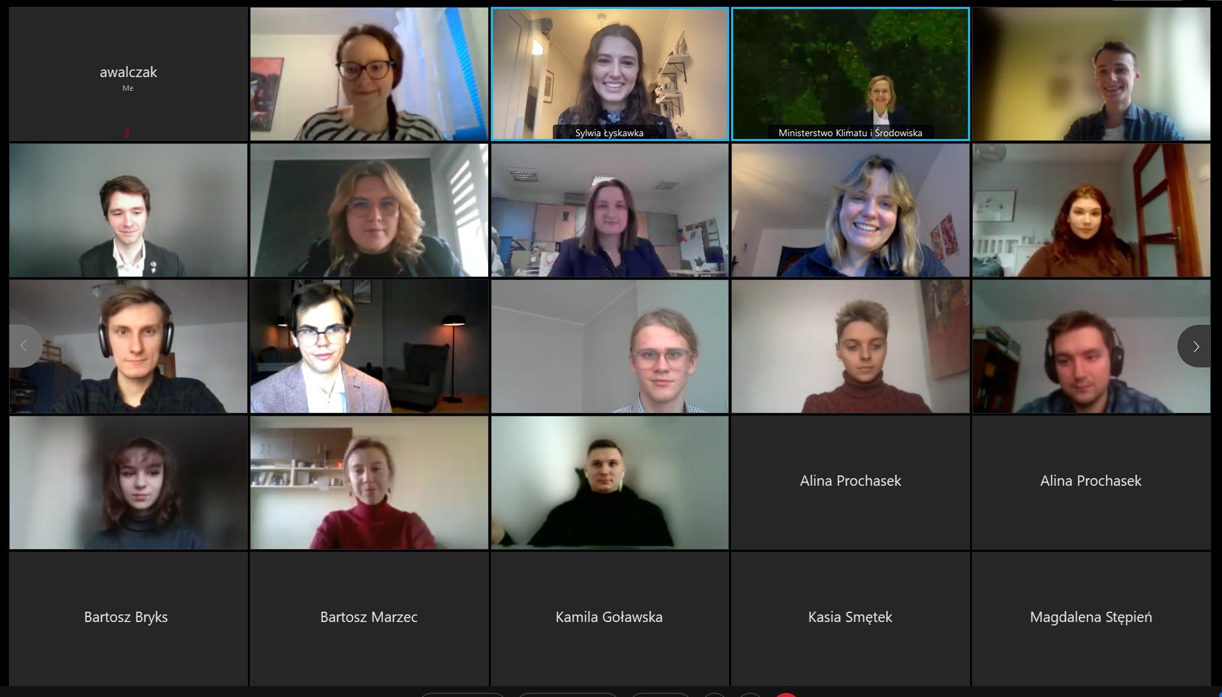 Minister Anna Moskwa wzięła udział w posiedzeniu Młodzieżowej Rady Klimatycznej, w którym uczestniczyli również przedstawiciele: Młodzieżowej Rady Ekologicznej, Młodzieżowego Strajku Klimatycznego oraz Polskiej Rady Organizacji Młodzieżowych PROM. Spotkanie odbyło się 22 grudnia 2021 r. i było okazją do podsumowywania działalności organizacji oraz omówienia ważnych kwestii dotyczących, edukacji ekologicznej, deklaracji Polski podczas Szczytu Klimatycznego, gospodarki o obiegu zamkniętym, energii jądrowej, ciepłownictwa i OZE.