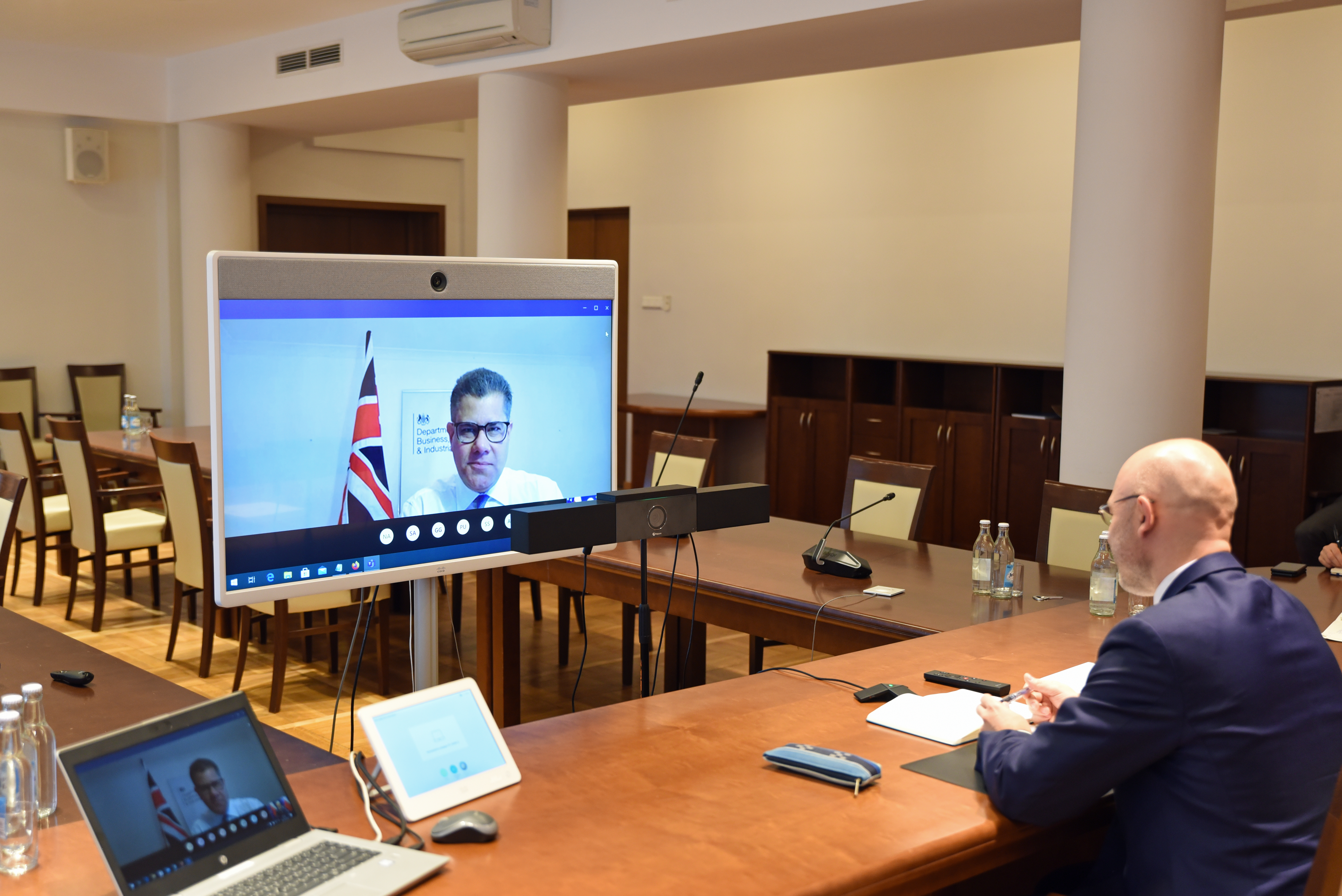 Konferencja klimatyczna COP26, kształtowanie miksu i bezpieczeństwo energetyczne to główne tematy rozmów ministra klimatu i środowiska Michała Kurtyki z ministrem ds. biznesu, energii i strategii przemysłowej Wielkiej Brytanii - Alokiem Sharmą. Spotkanie odbyło się 30 października 2020r.