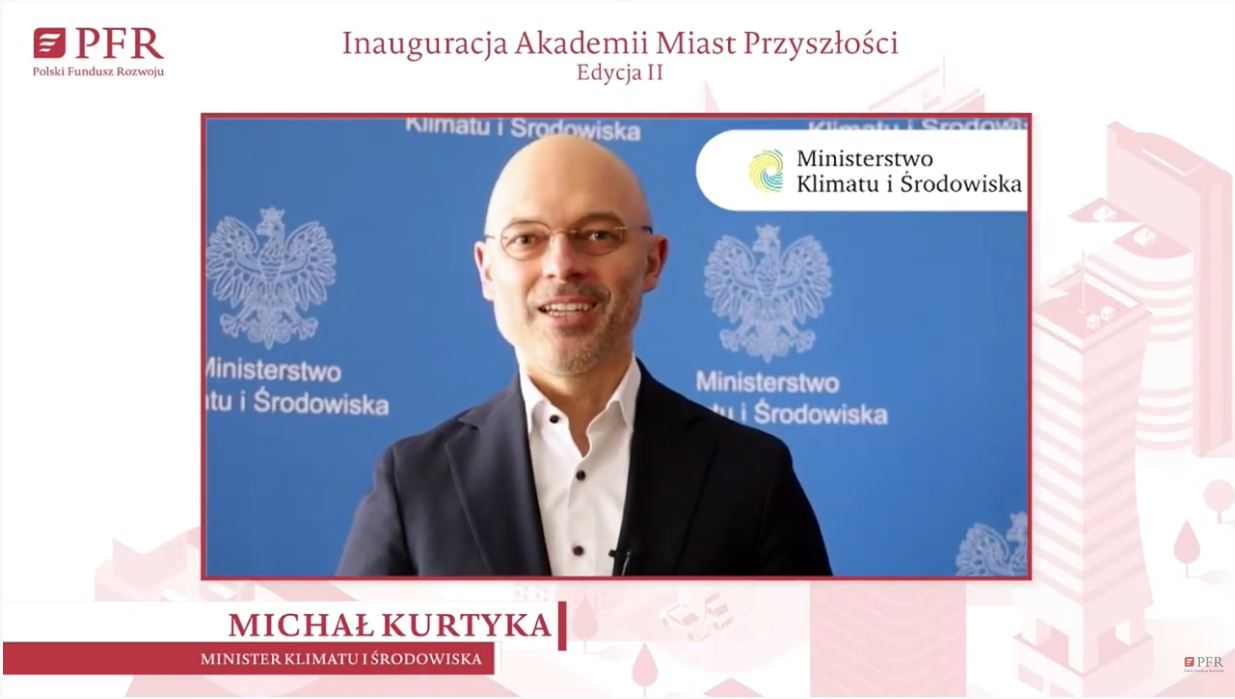 „W miastach koncentrują się najpilniejsze współcześnie wyzwania. Jednocześnie to właśnie miasta znacząco przyczyniają się do dynamicznego rozwoju naszego kraju. To istotne, by ten rozwój przebiegał w sposób zrównoważony pod względem ekonomicznym, społecznym i ekologicznym” – mówił minister klimatu i środowiska Michał Kurtyka podczas inauguracji drugiej edycji Akademii Miast Przyszłości Polskiego Funduszu Rozwoju. Wydarzenie odbyło się 22 marca 2021 r.