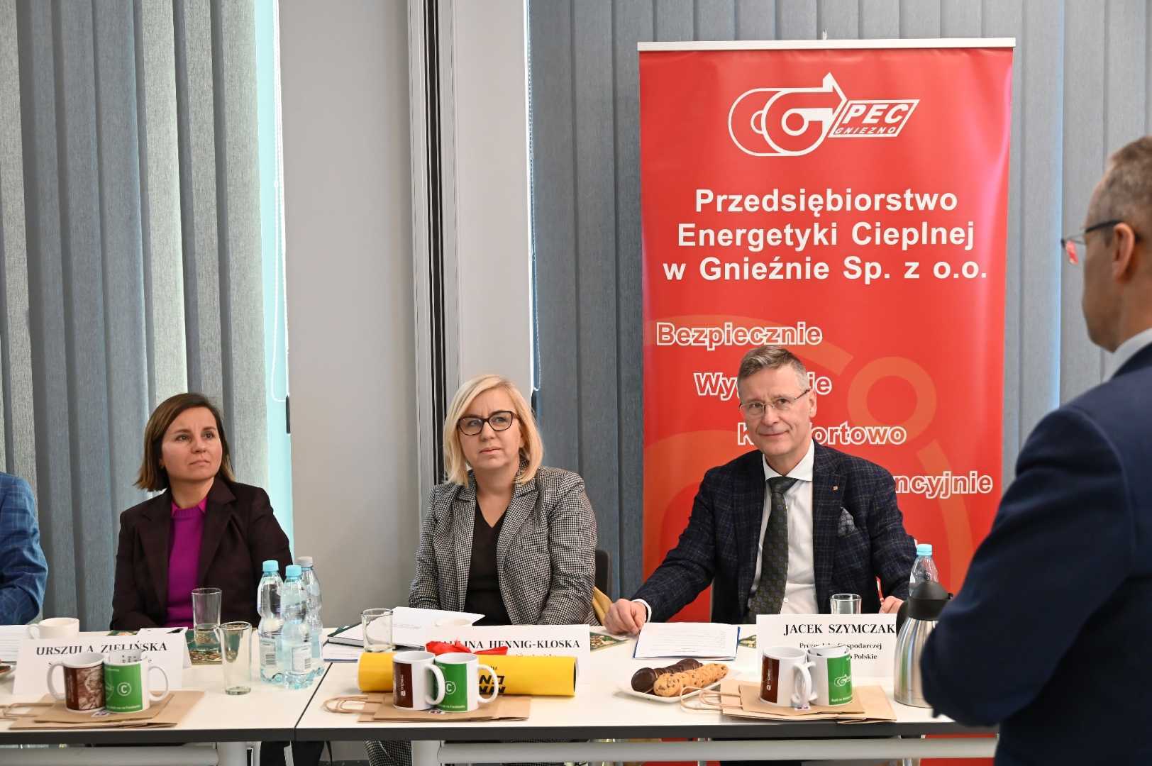 Kondycja sektora ciepłownictwa systemowego oraz transformacja energetyczna to główne tematy rozmów minister klimatu i środowiska Pauliny Hennig-Kloski z przedstawicielami Izby Gospodarczej Ciepłownictwo Polskie w Gnieźnie. Spotkanie, w którym uczestniczyła również wiceministra Urszula Zielińska, odbyło się 29 grudnia 2023 r.