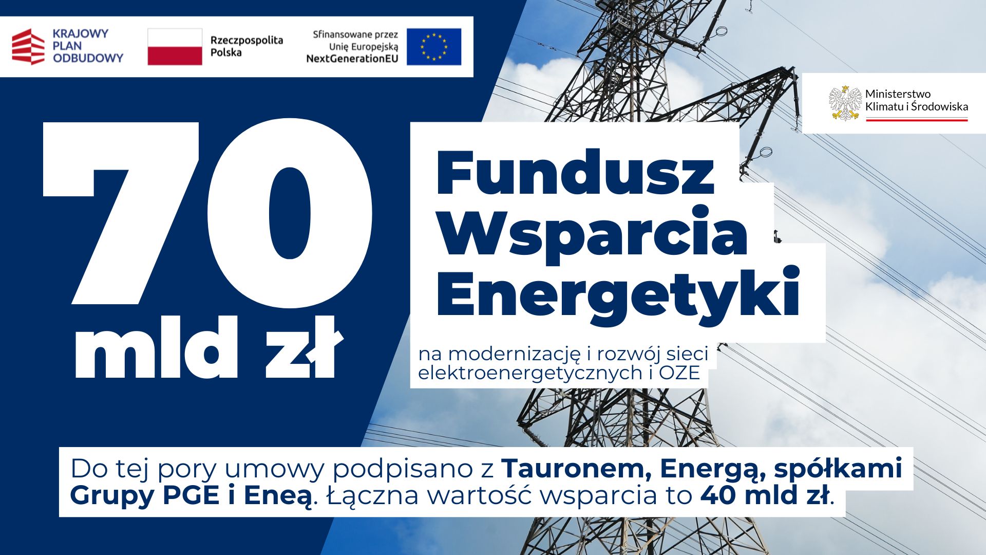 Dotąd w ramach FWE przeznaczono łącznie ok. 40 mld zł na rozwój sieci elektroenergetycznych. Łączny budżet Funduszu to 70 mld zł.