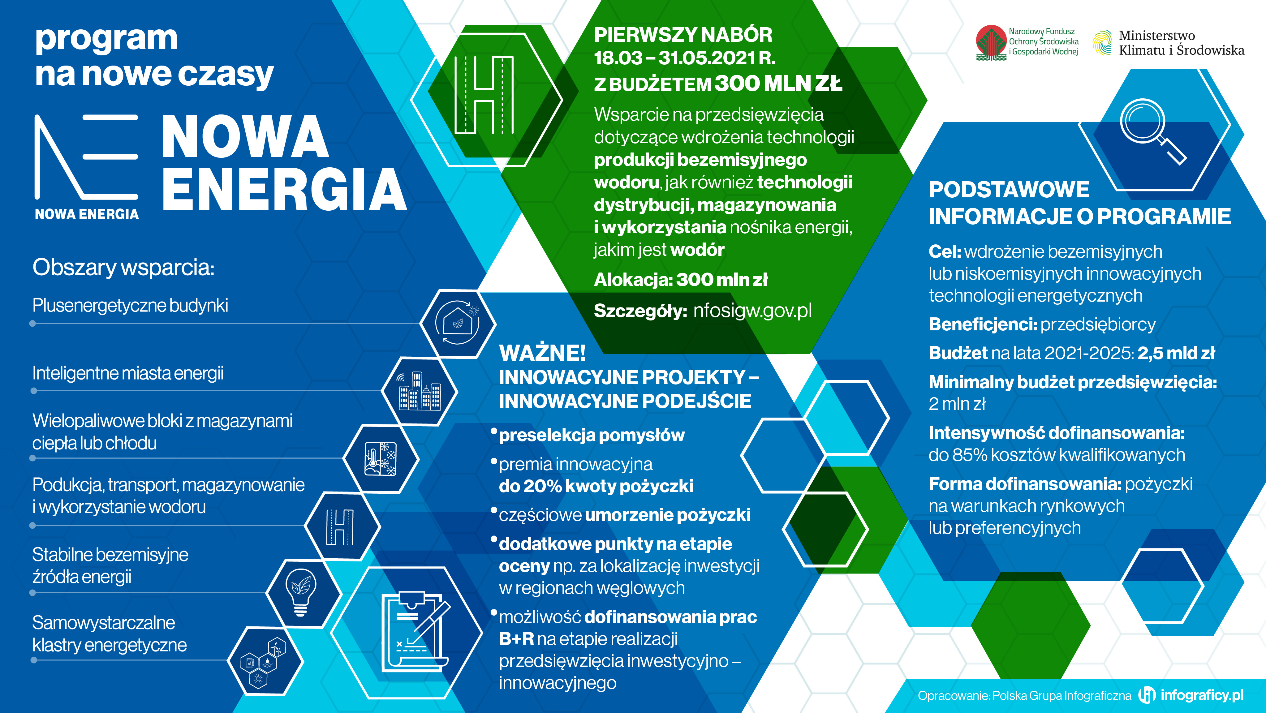 Innowacje w obszarze produkcji, transportu, magazynowania i wykorzystania wodoru jako pierwsze uzyskają wsparcie w ramach programu „Nowa Energia”, który uruchamia Narodowy Fundusz Ochrony Środowiska i Gospodarki Wodnej. W tym naborze zostanie udostępnione wsparcie w wysokości 300 mln zł.