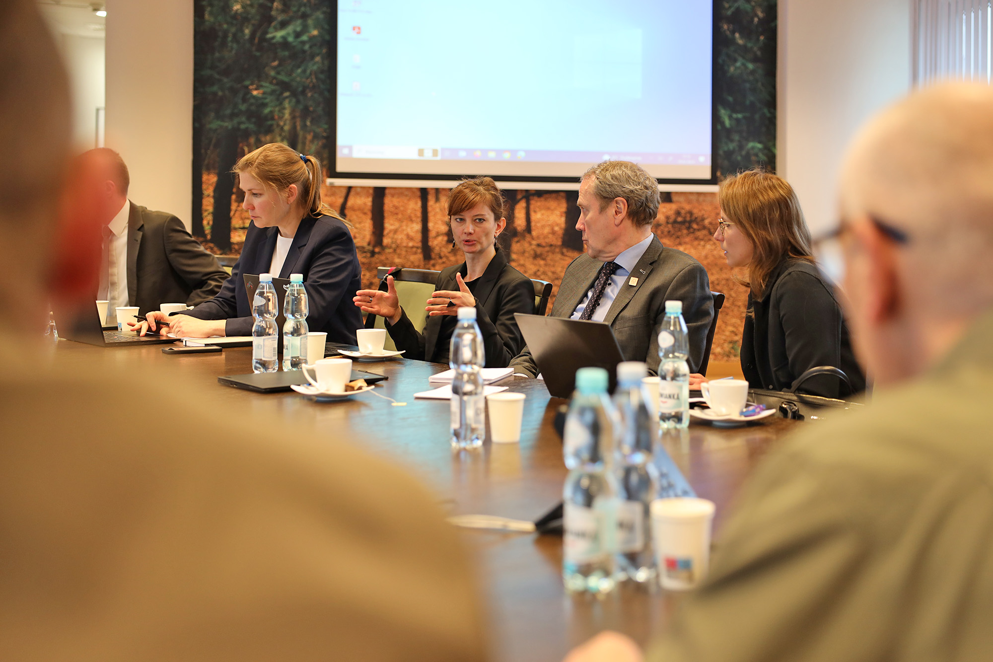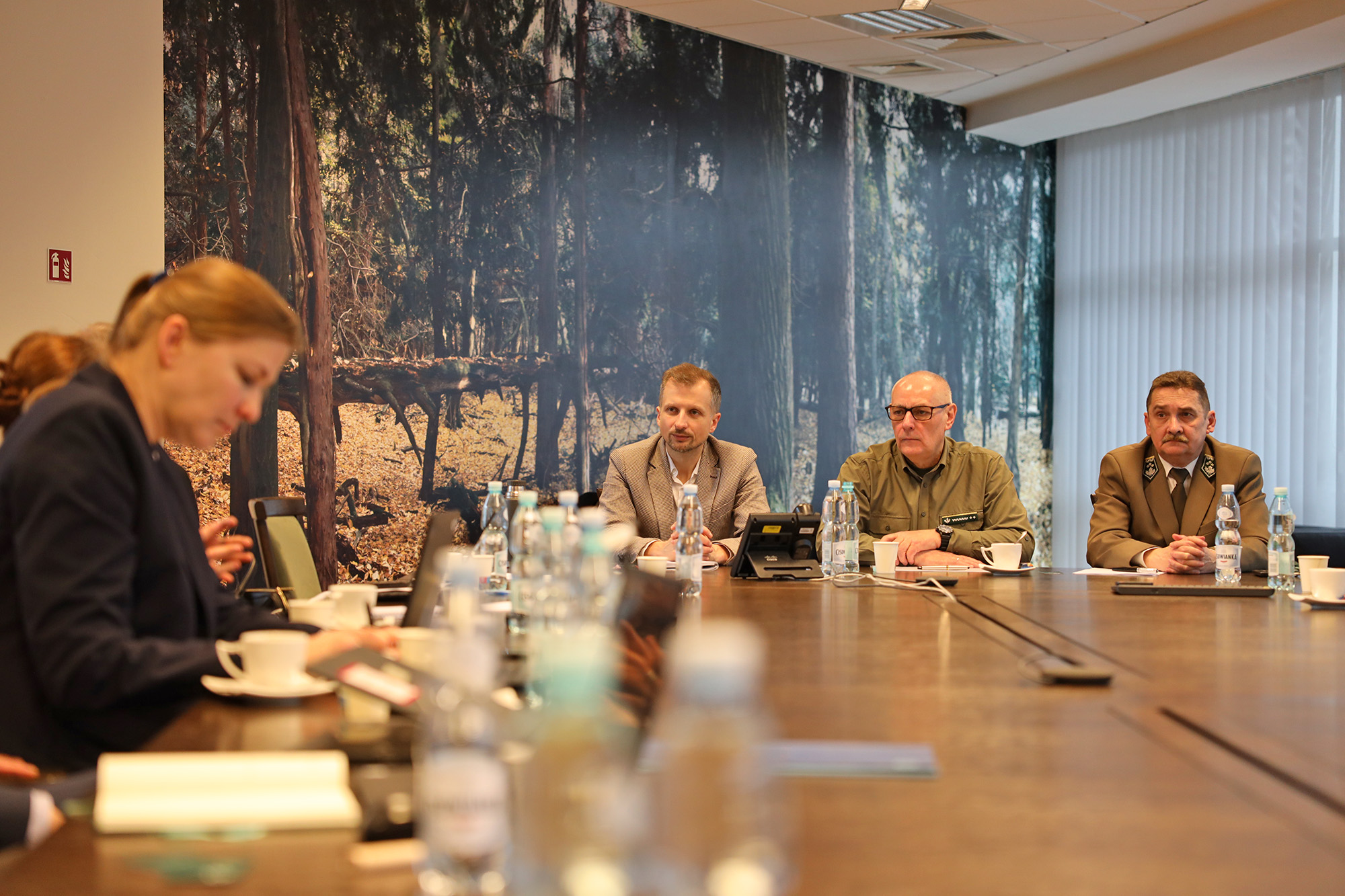 W spotkaniu, które odbyło się 29 lutego 2024 r. wzięli udział Mikołaj Dorożała, wiceminister klimatu i środowiska, Jerzy Fijas, zastępca dyrektora generalnego Lasów Państwowych ds. gospodarki leśnej oraz Kim Carstensen, dyrektor generalny FSC International.