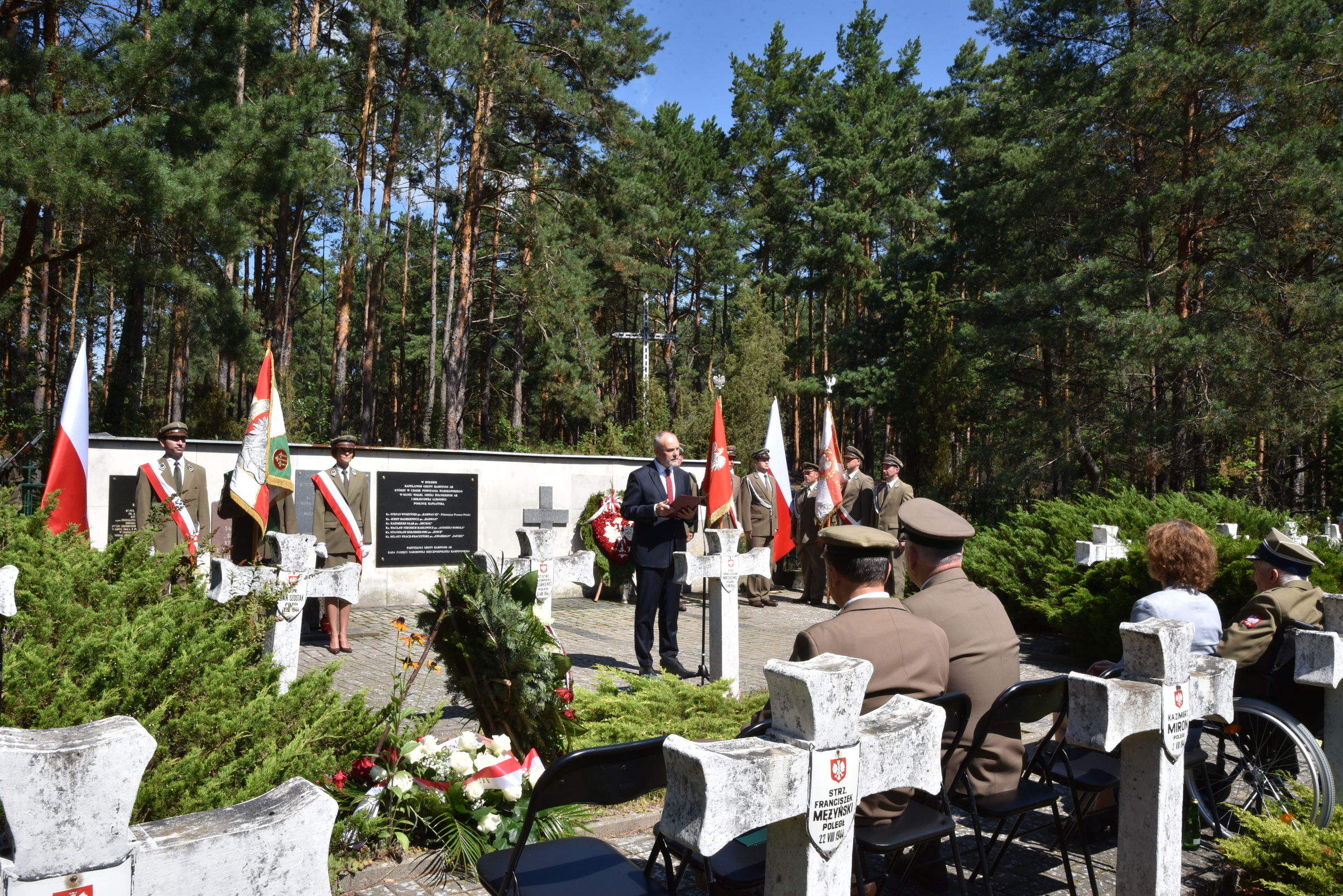 Czcząc z należytą godnością pamięć o bohaterskich powstańcach obecni na uroczystości przedstawiciele resortu klimatu i środowiska wraz z kombatantem złożyli wieńce pod tablicą pamiątkową na cmentarzu powstańczym w Wierszach.