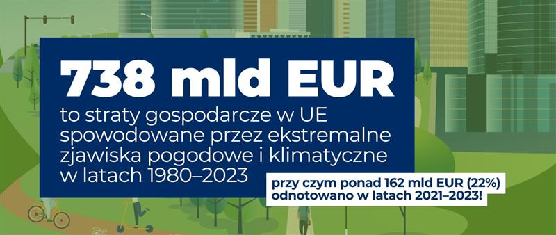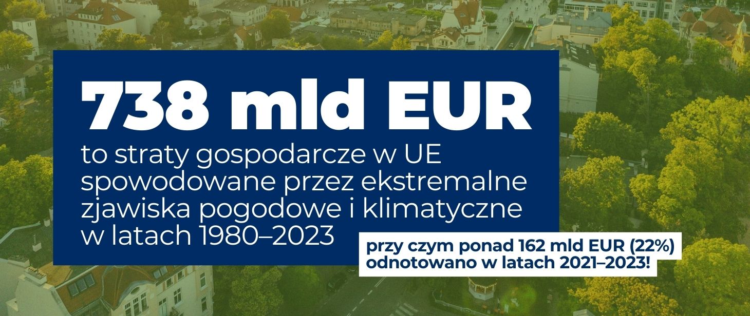 - W latach 1980–2023 ekstremalne zjawiska pogodowe i klimatyczne spowodowały straty gospodarcze w UE na poziomie 738 mld EUR, przy czym ponad 162 mld EUR (22%) odnotowano w latach 2021–2023 - dowiedz się więcej.