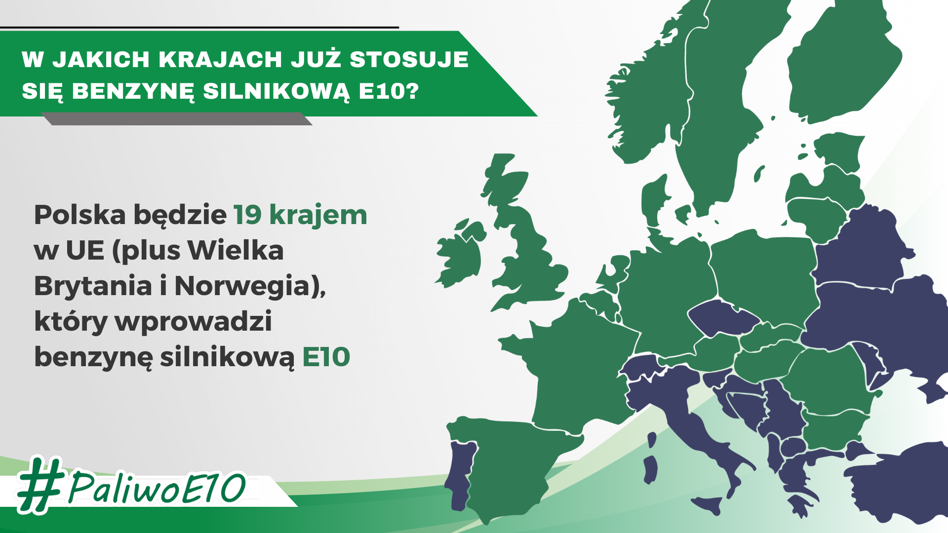 Polska będzie 19 krajem w UE, który wprowadzi paliwo E10. Paliwo to jest już dostępne w Austrii, Belgii, Bułgarii, Danii, Estonii, Finlandii, Francji, Niderlandach, Hiszpanii, Irlandii, Litwie, Łotwie, Luksemburgu, Niemczech, Rumunii, Słowacji, Szwecji i Węgrzech. Dodatkowo w Europie E10 jest dostępna także m.in. w Wielkiej Brytanii i Norwegii.