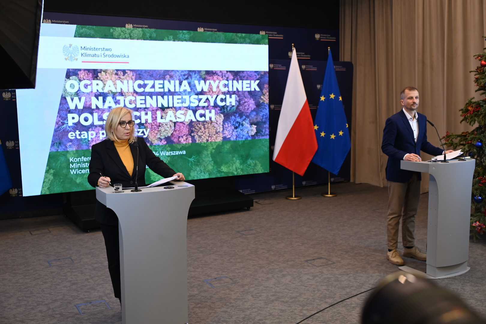 Ministerstwo Klimatu i Środowiska ogranicza wyręby przewidziane na 2024 r. w najważniejszych polskich lasach. Ochrona cennych puszcz, zachowanie lasów wykorzystywanych przez wielotysięczne aglomeracje, lasów uzdrowiskowych oraz deficytowość nadleśnictw - to główne powody ograniczenia wyrębów. O szczegółach decyzji poinformowała minister Paulina Hennig-Kloska w trakcie konferencji prasowej, która odbyła się 8 stycznia 2024 r. w Warszawie.
