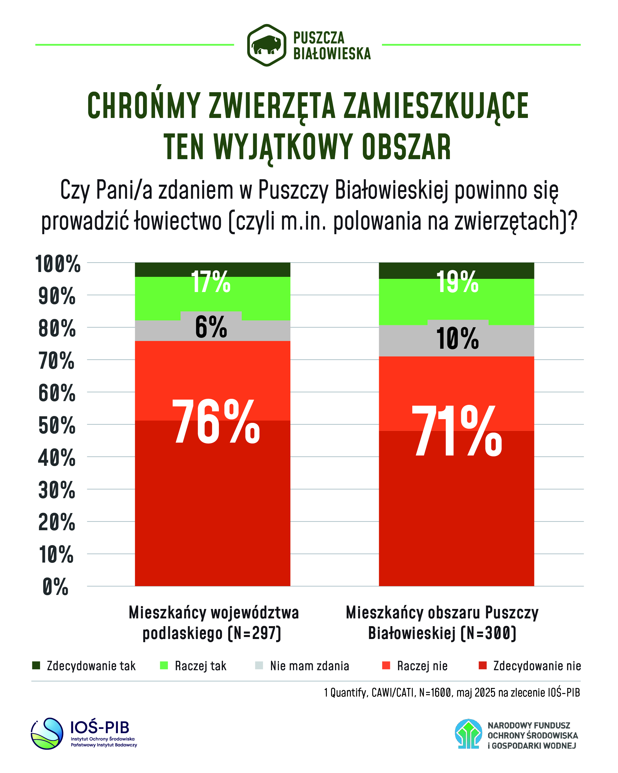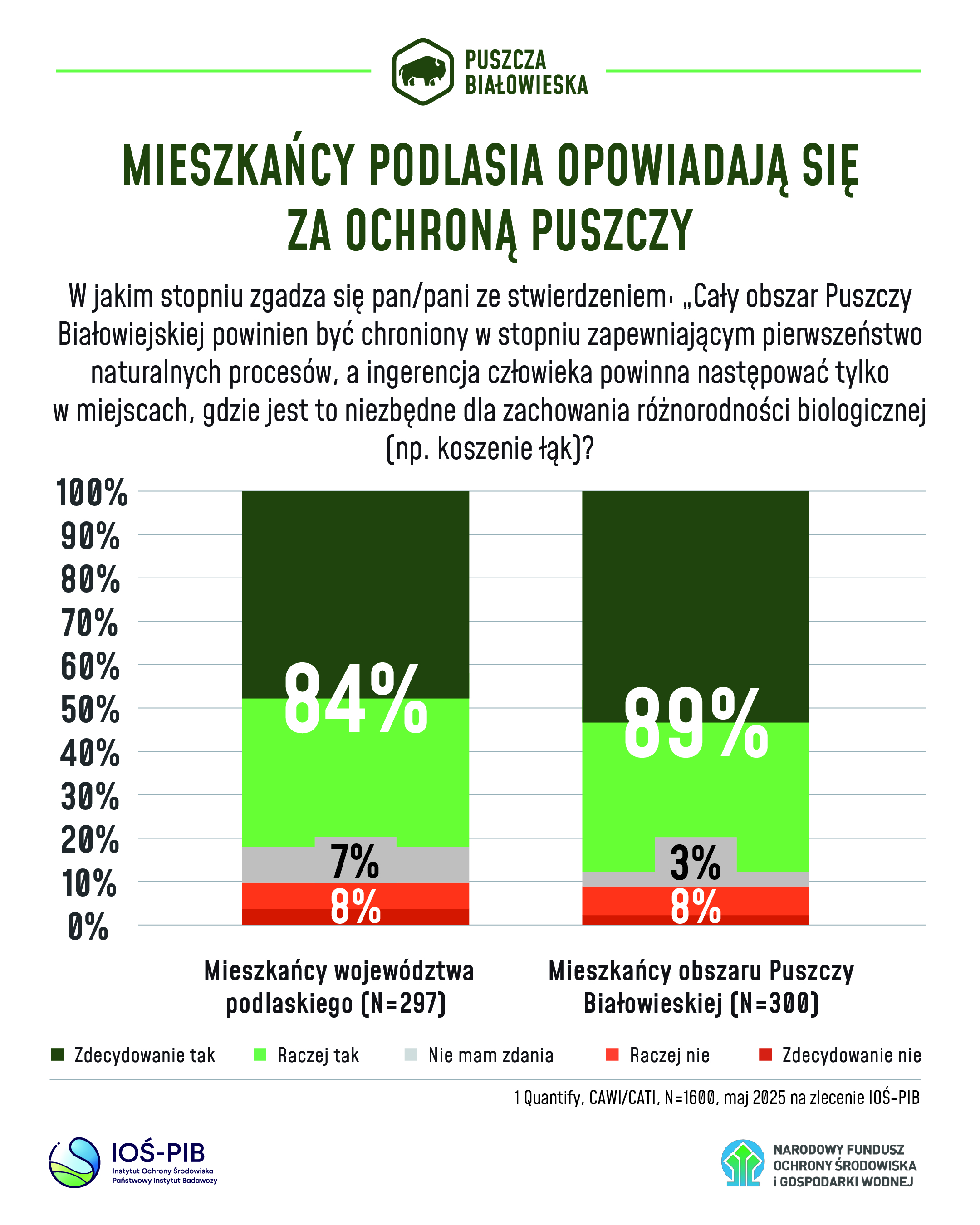 Wyniki badania pokazują bardzo wysokie poparcie dla ograniczenia ingerencji człowieka w ten unikalny ekosystem (ponad 90 proc. badanych) oraz sprzeciw wobec pozyskiwania drewna i polowań (ponad 70 proc. badanych).