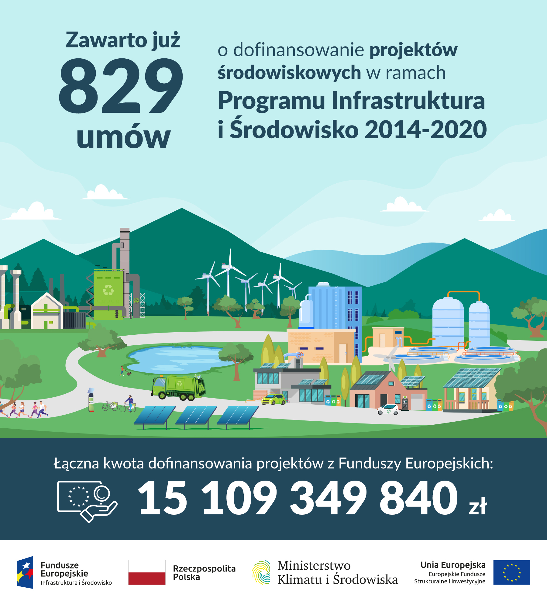 Podpisano już 829 umów o dofinansowanie projektów w II osi POIiŚ Ochrona środowiska, w tym adaptacja do zmian klimatu na łączną kwotę ponad 15 mld złotych.