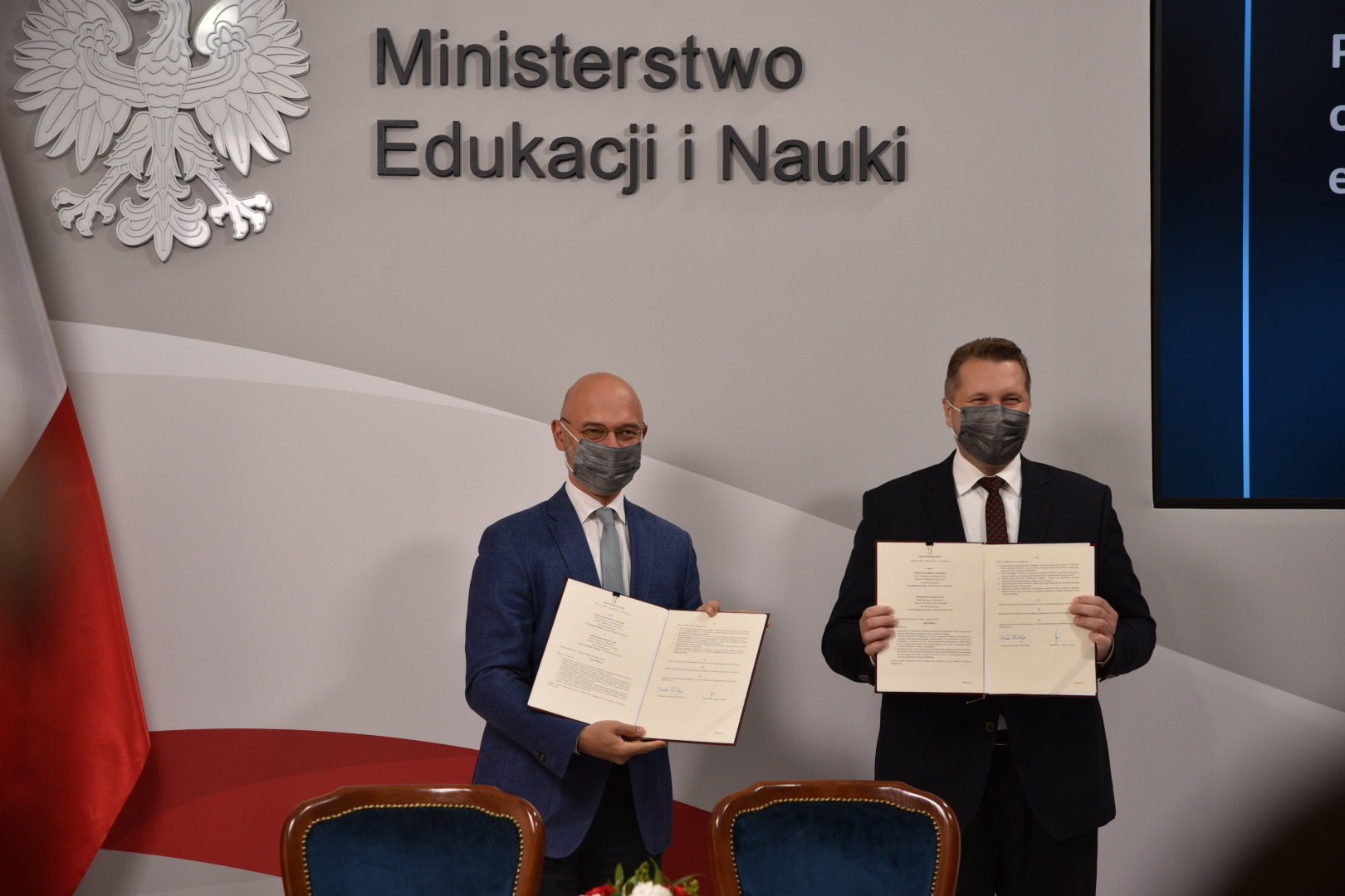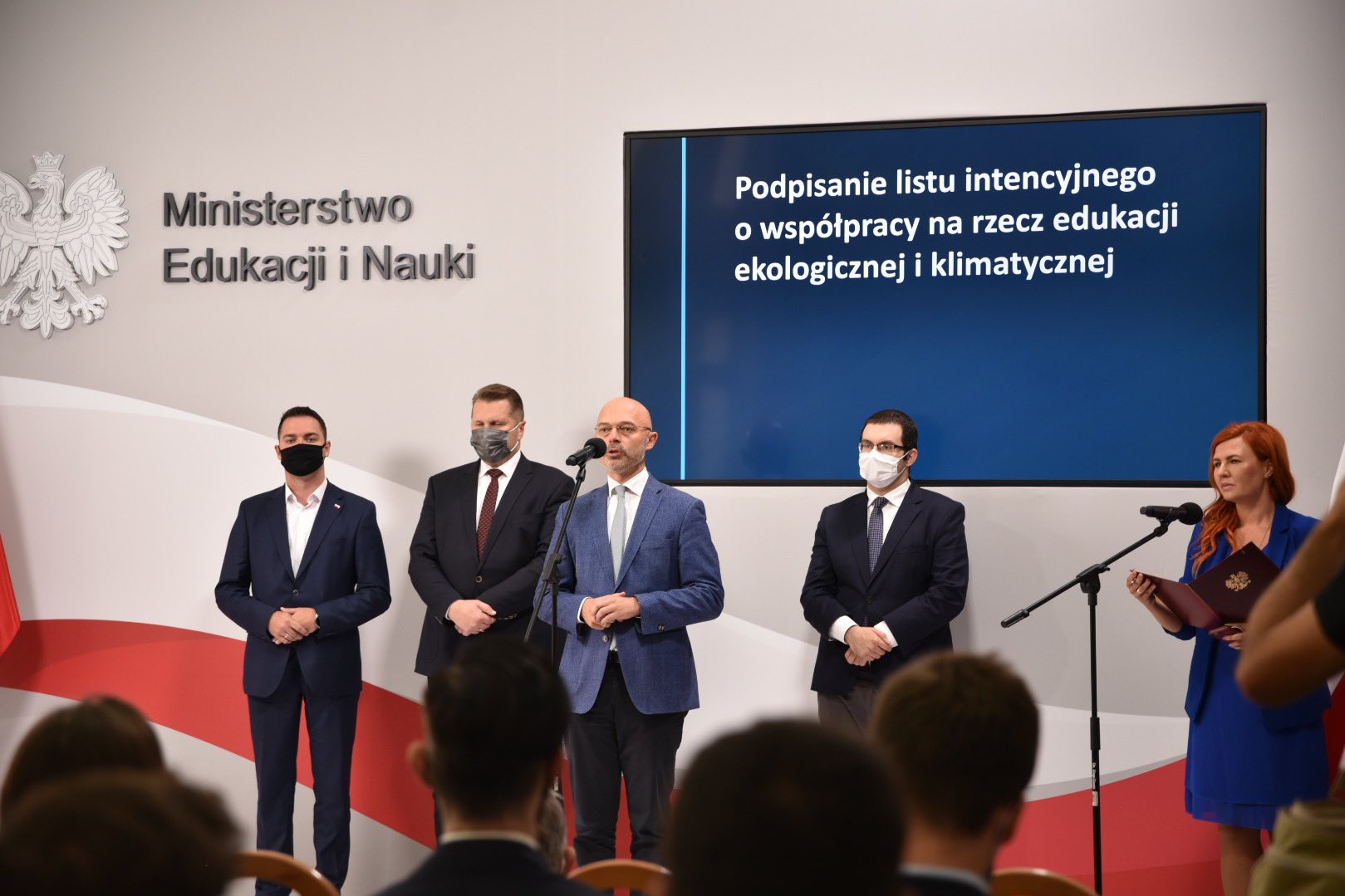 Minister Klimatu i Środowiska Michał Kurtyka oraz Minister Edukacji i Nauki Przemysław Czarnek podpisali dziś, 17 sierpnia list intencyjny wyrażający wolę współpracy na rzecz edukacji ekologicznej i klimatycznej. W uroczystości udział wziął także Pełnomocnik Rządu ds. polityki młodzieżowej Piotr Mazurek. Głównym celem tej inicjatywy jest zwiększanie świadomości ekologicznej i klimatycznej młodego pokolenia, a także zainicjowanie kolejnego etapu w dotychczasowej współpracy obu resortów.