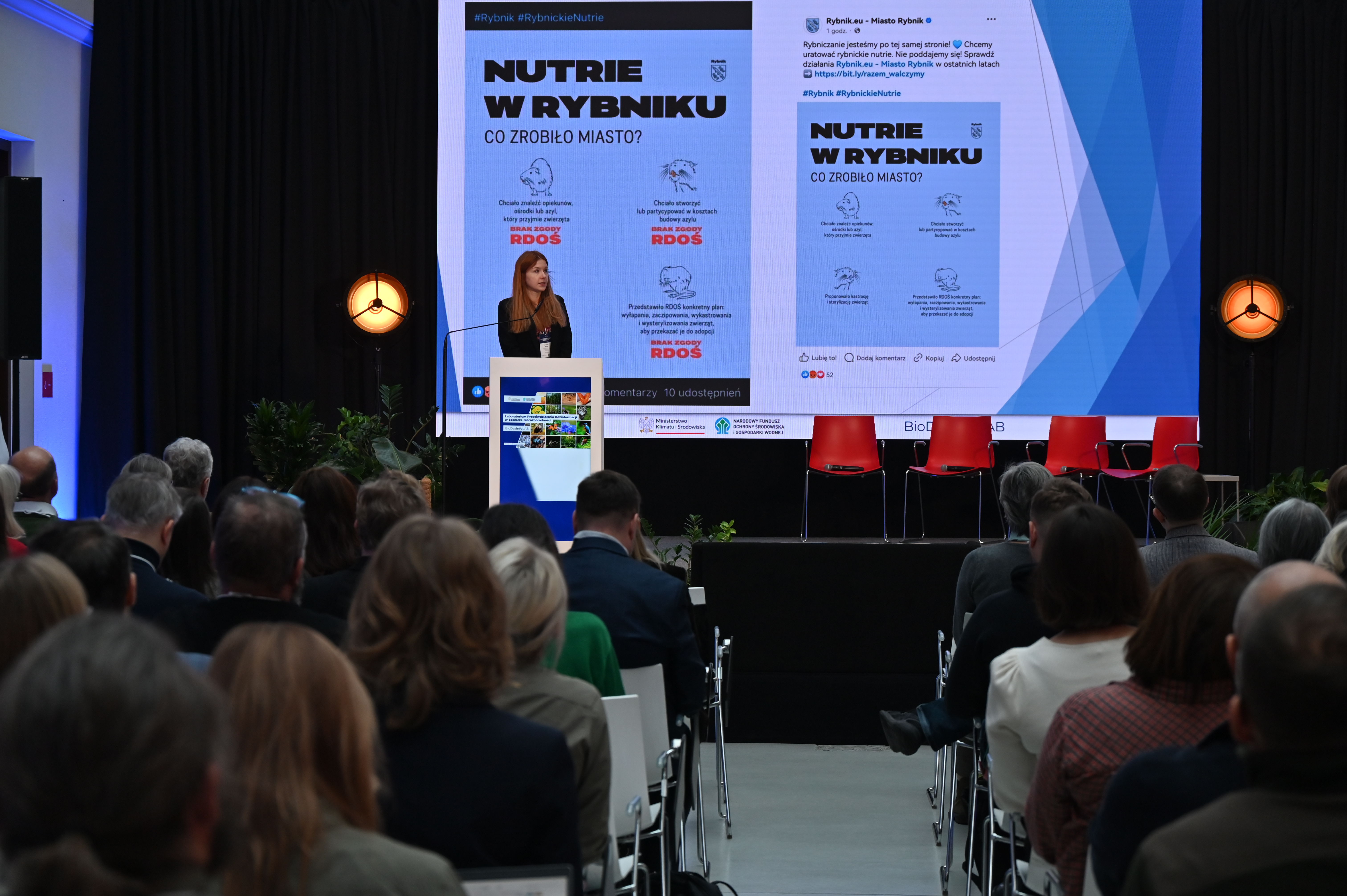 Kolejna prelegentka, Zuzanna Buck, Naczelniczka Wydziału Ochrony Przyrody i Obszarów Chronionych Natura 2000 w Regionalnej Dyrekcji Ochrony Środowiska w Katowicach, przedstawiła studium przypadku dotyczące nutrii amerykańskiej – gatunku inwazyjnego, którego eliminacja była obowiązkiem wynikającym z przepisów UE i ustawy o IGO. W Rybniku doszło do znacznego rozrostu populacji nutrii, a po wejściu w życie rozporządzenia RDOŚ w Katowicach został w 2023 r. zobowiązany do jej eliminacji. Decyzja wywołała spiralę hejtu, podsycaną przez nieprawdziwe narracje w mediach społecznościowych oraz tradycyjnych.