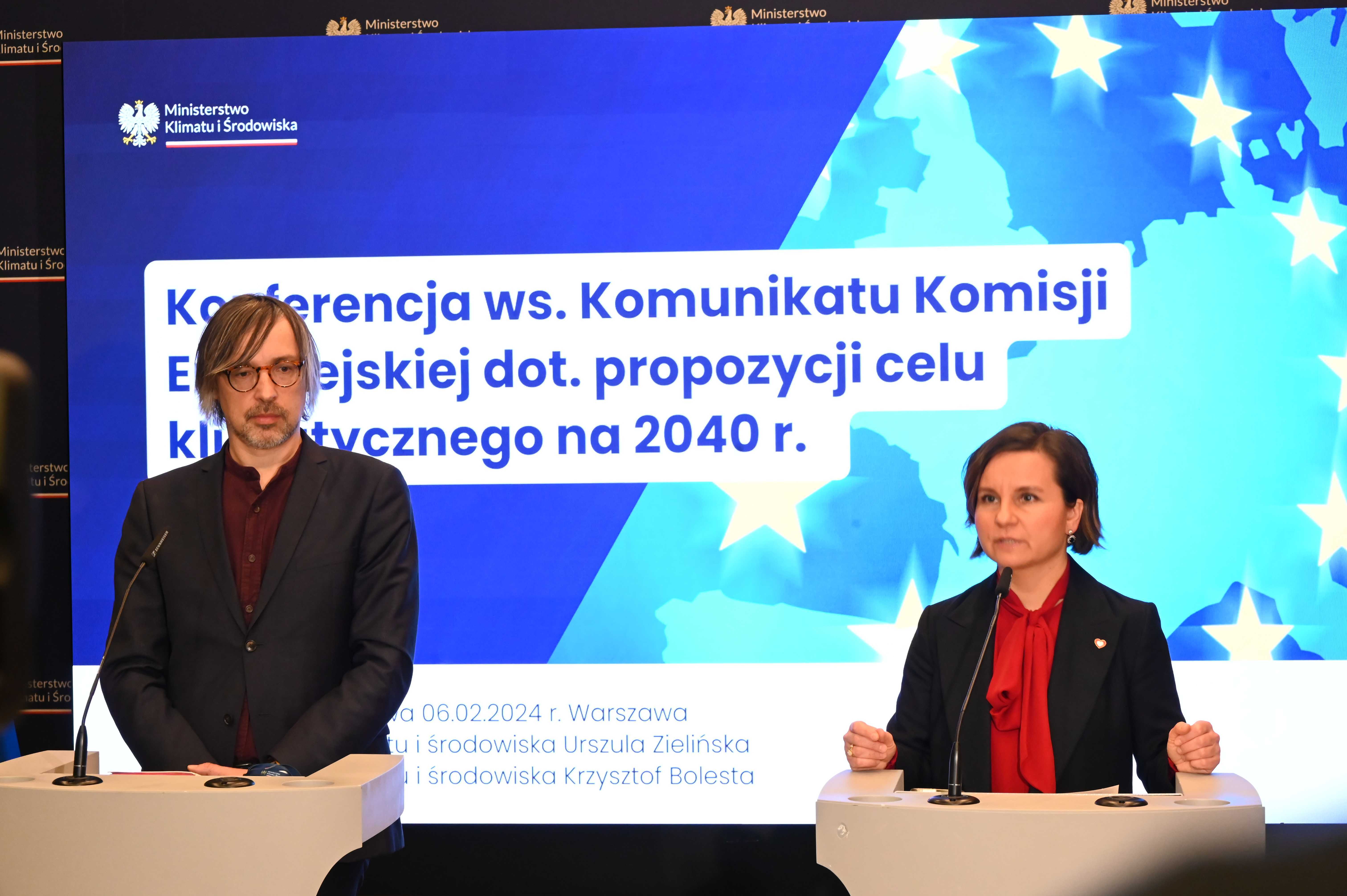 6 lutego 2024 r. w Ministerstwie Klimatu i Środowiska odbyła się konferencja prasowa z udziałem wiceministry klimatu i środowiska Urszuli Zielińskiej oraz wiceministra klimatu i środowiska Krzysztofa Bolesty na temat komunikatu Komisji Europejskiej.